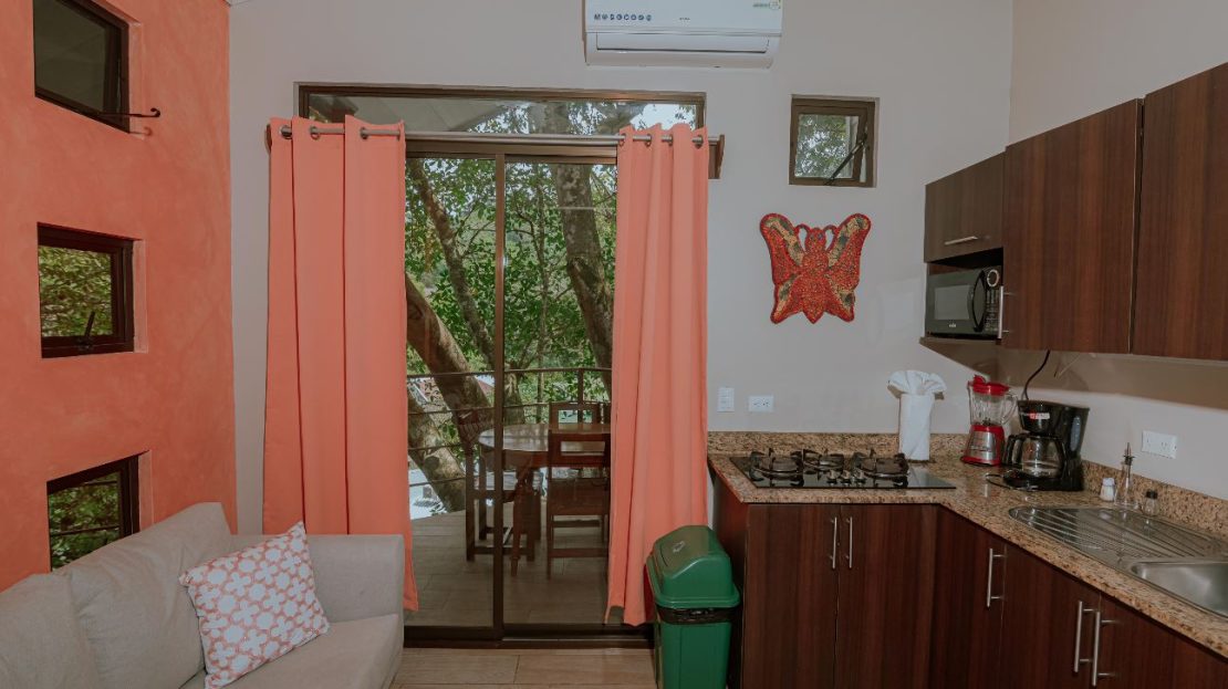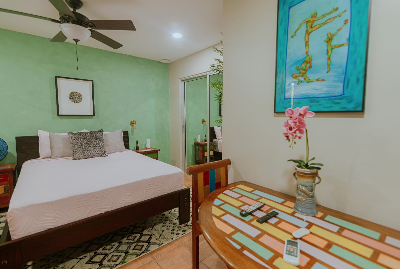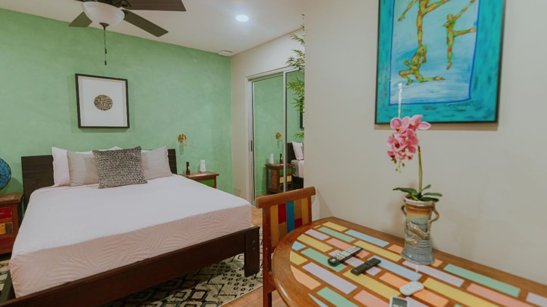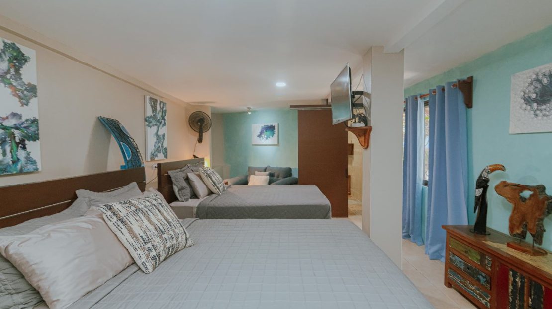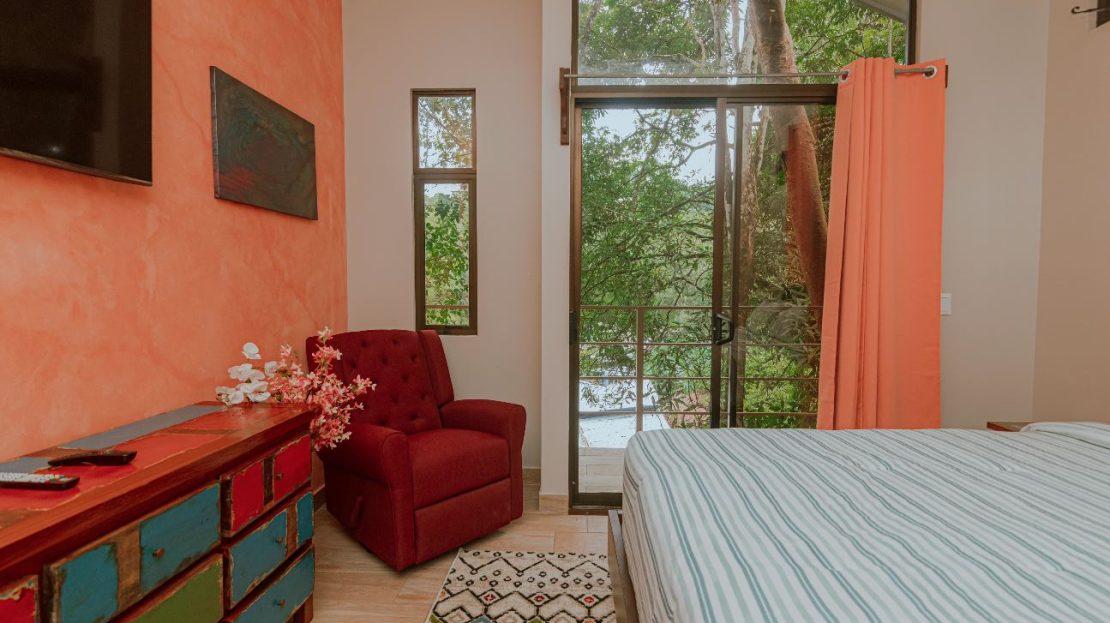 Two “Treehouse” rooms sit at the highest point of the property, featuring king beds, connecting doors, and breathtaking balconies, ideal for families or groups.