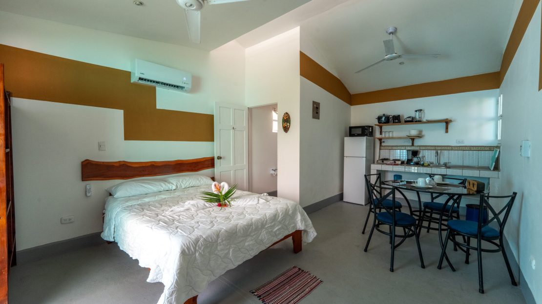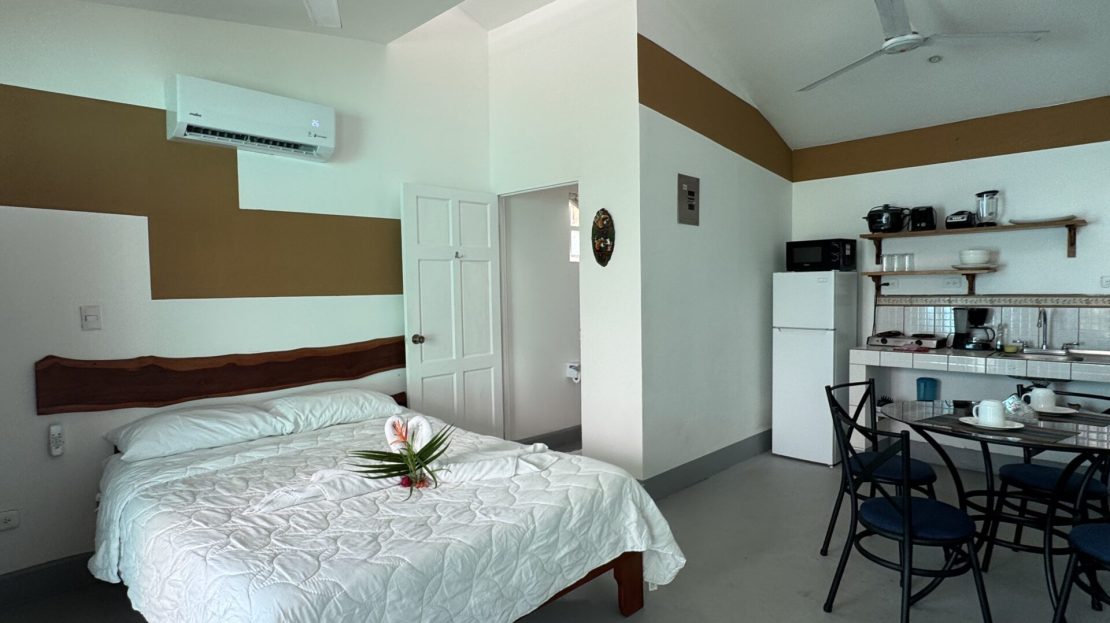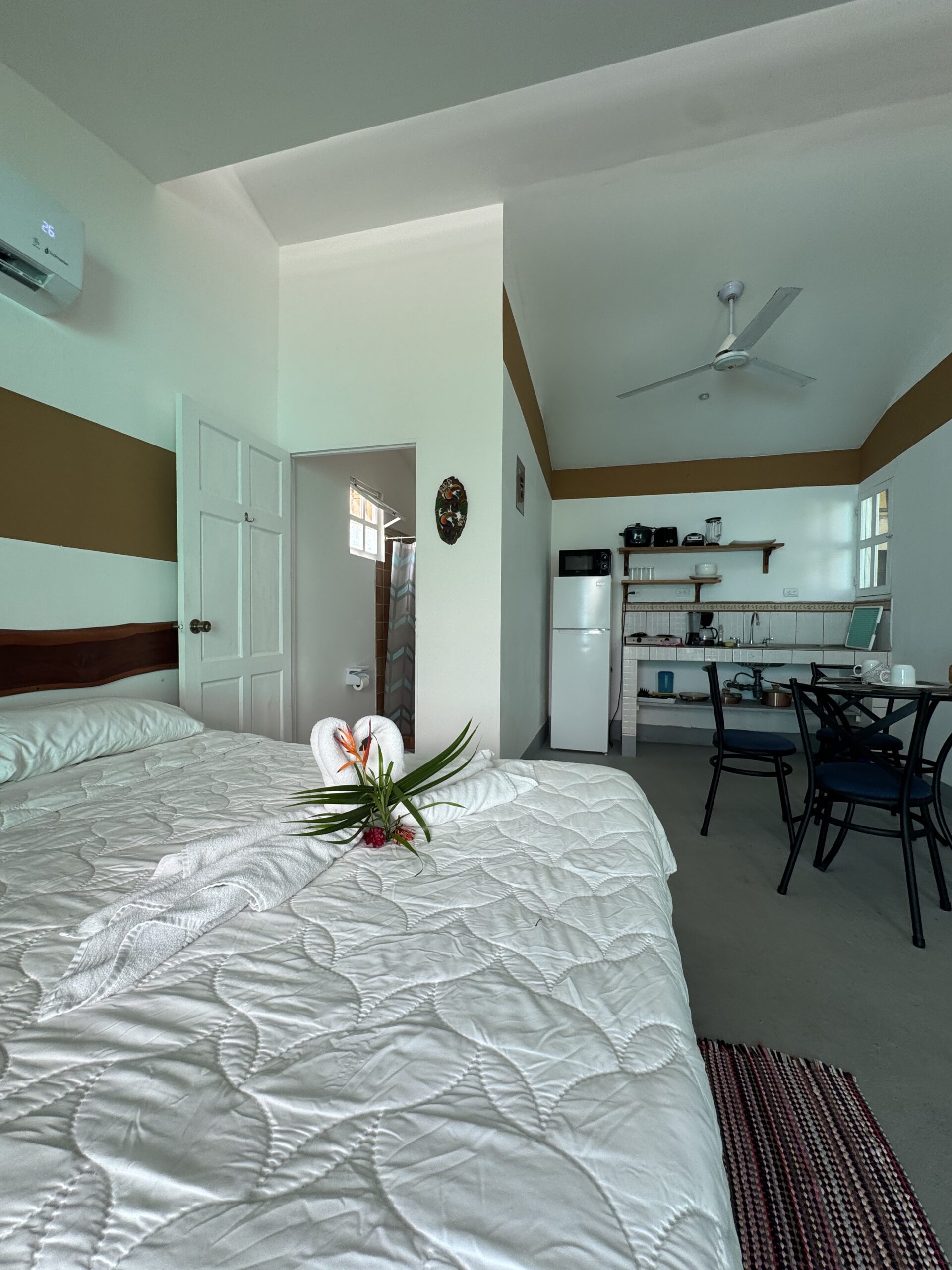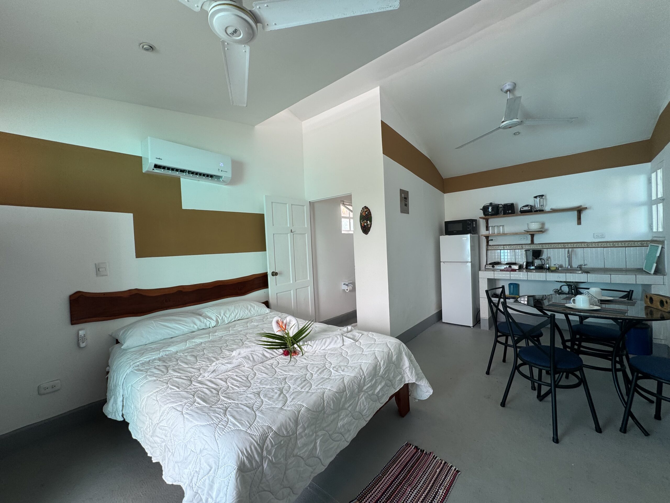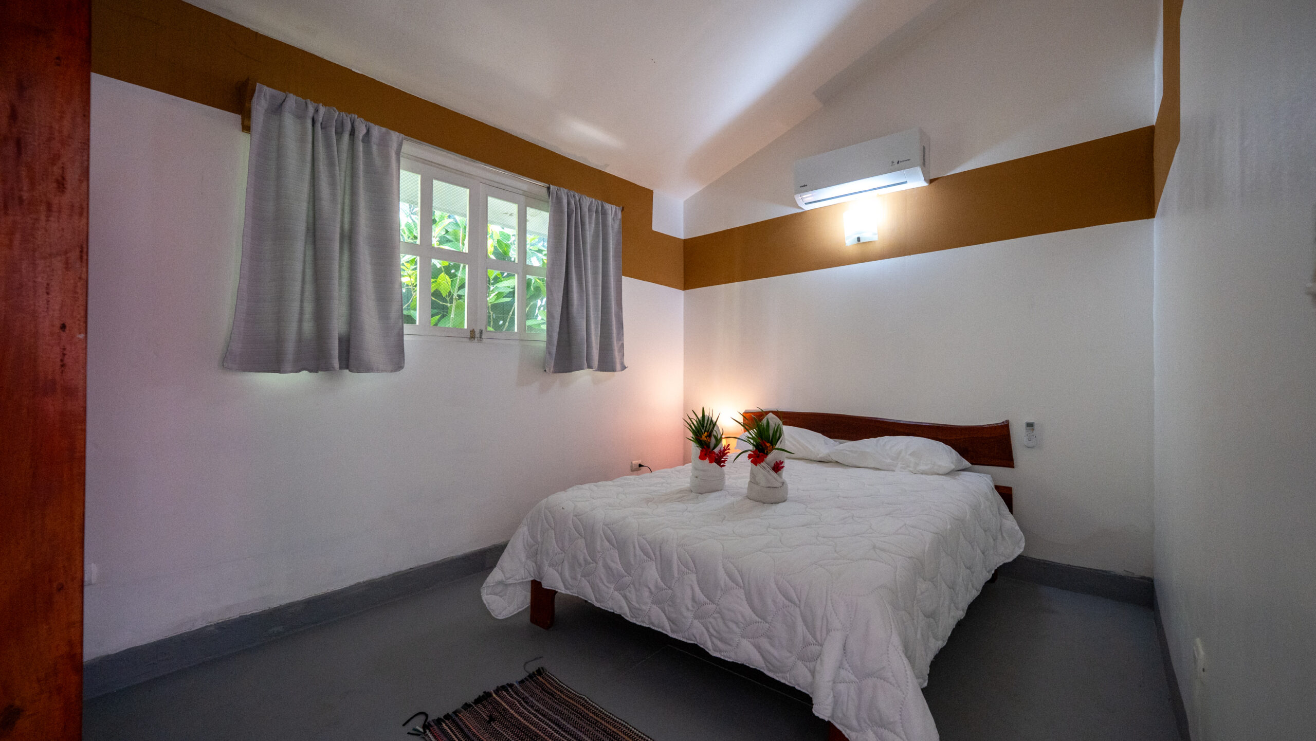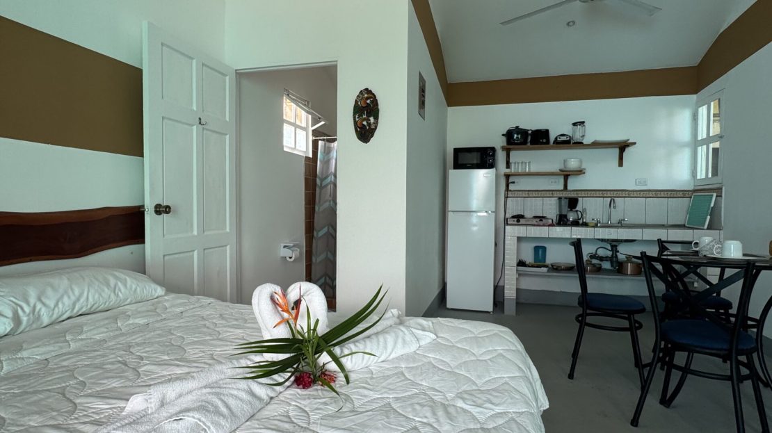The six units include two two-bedroom bungalows, two one-bedroom bungalows, and two studio units. Each unit is fully equipped with a kitchen, private bathroom with shower, Queen-size bed with mosquito net, fans, and a living area. All bungalows have individual water and electricity meters, allowing for clear and efficient utility management.