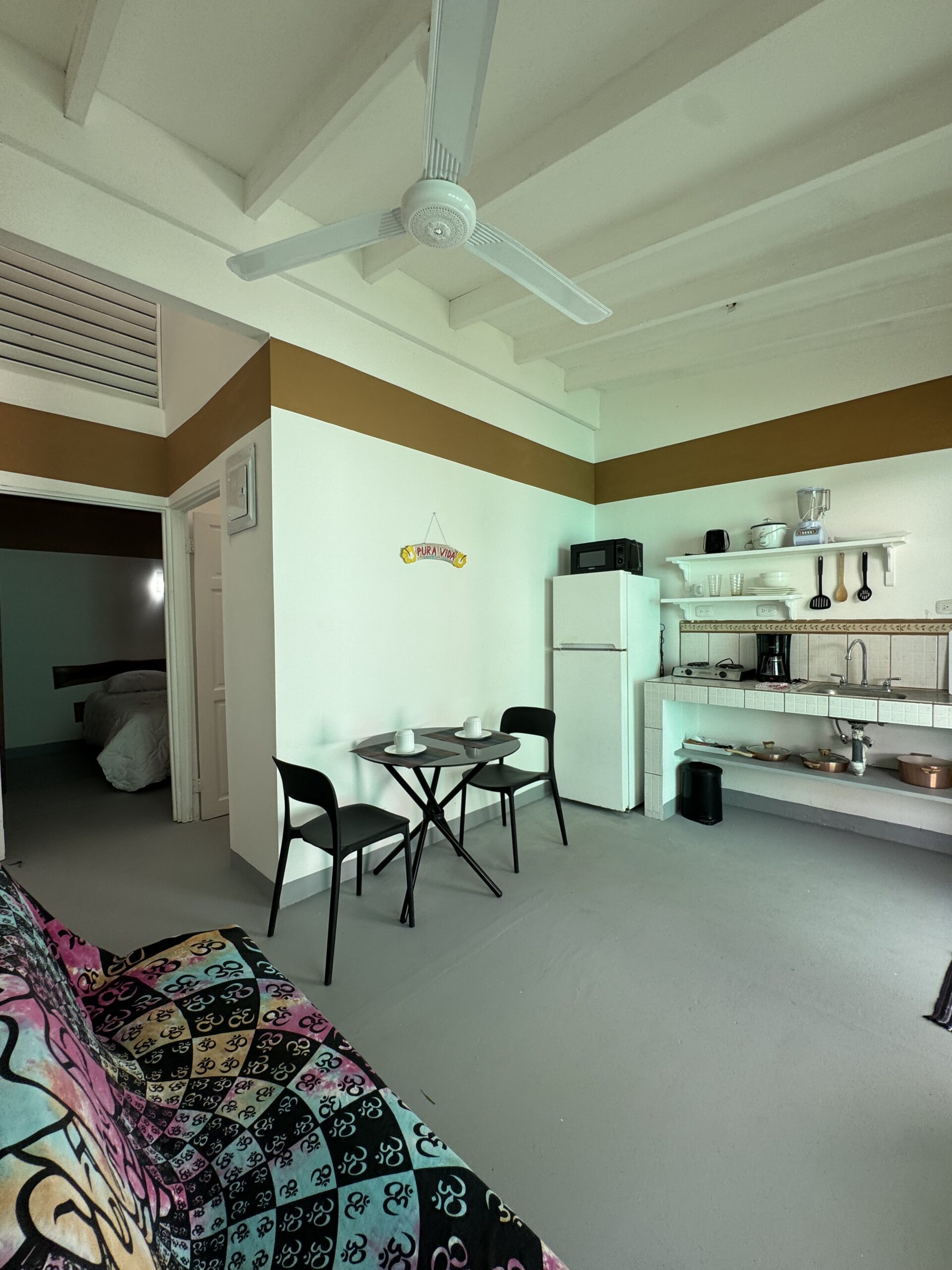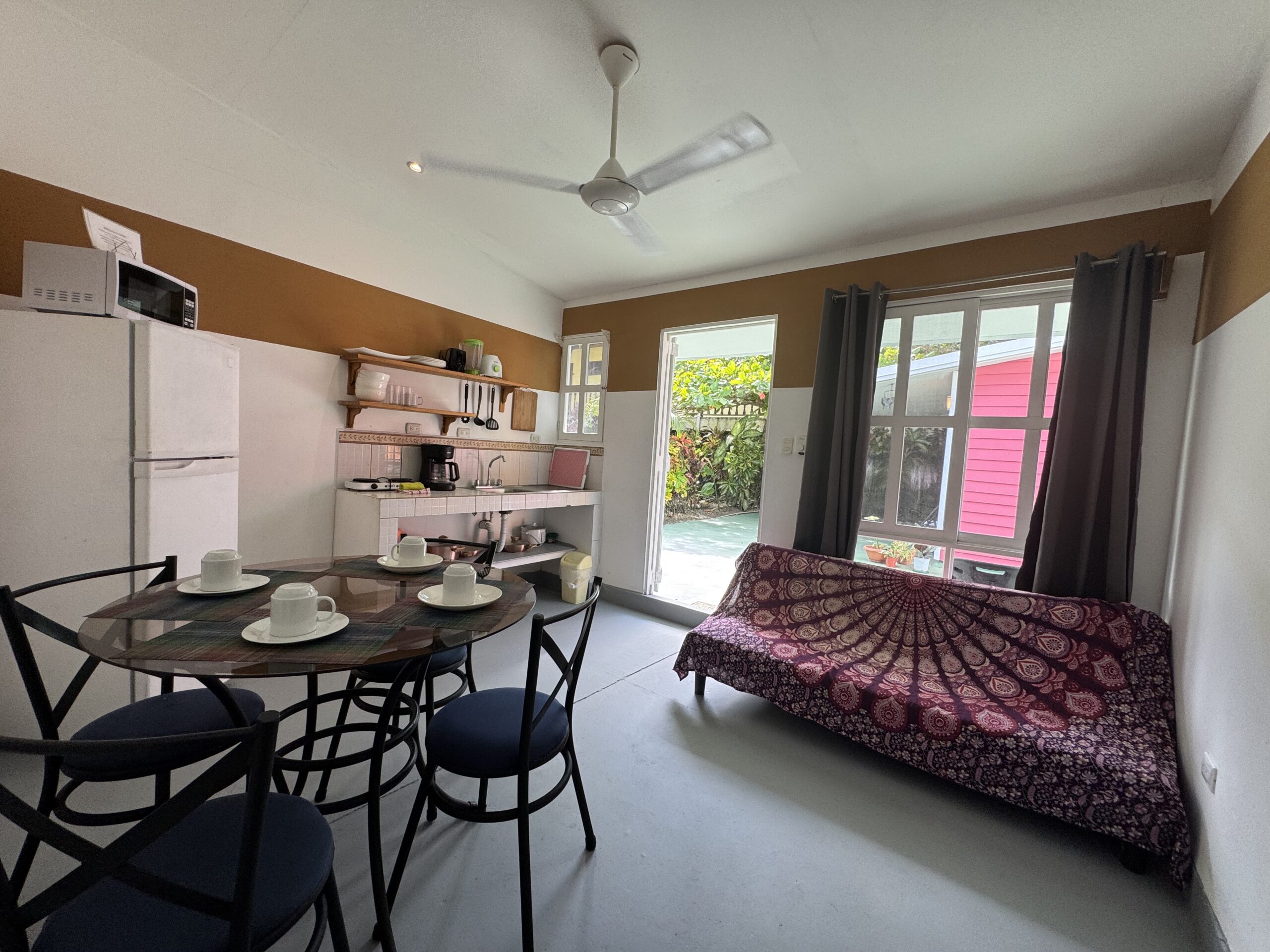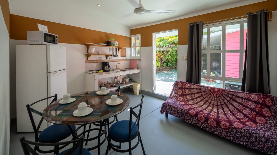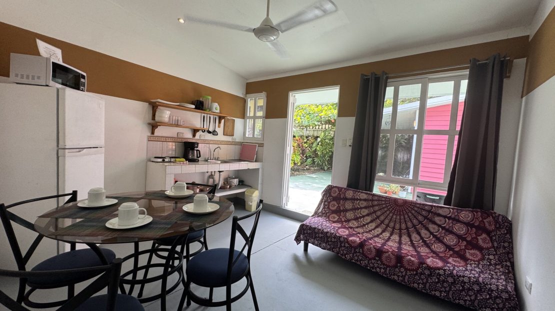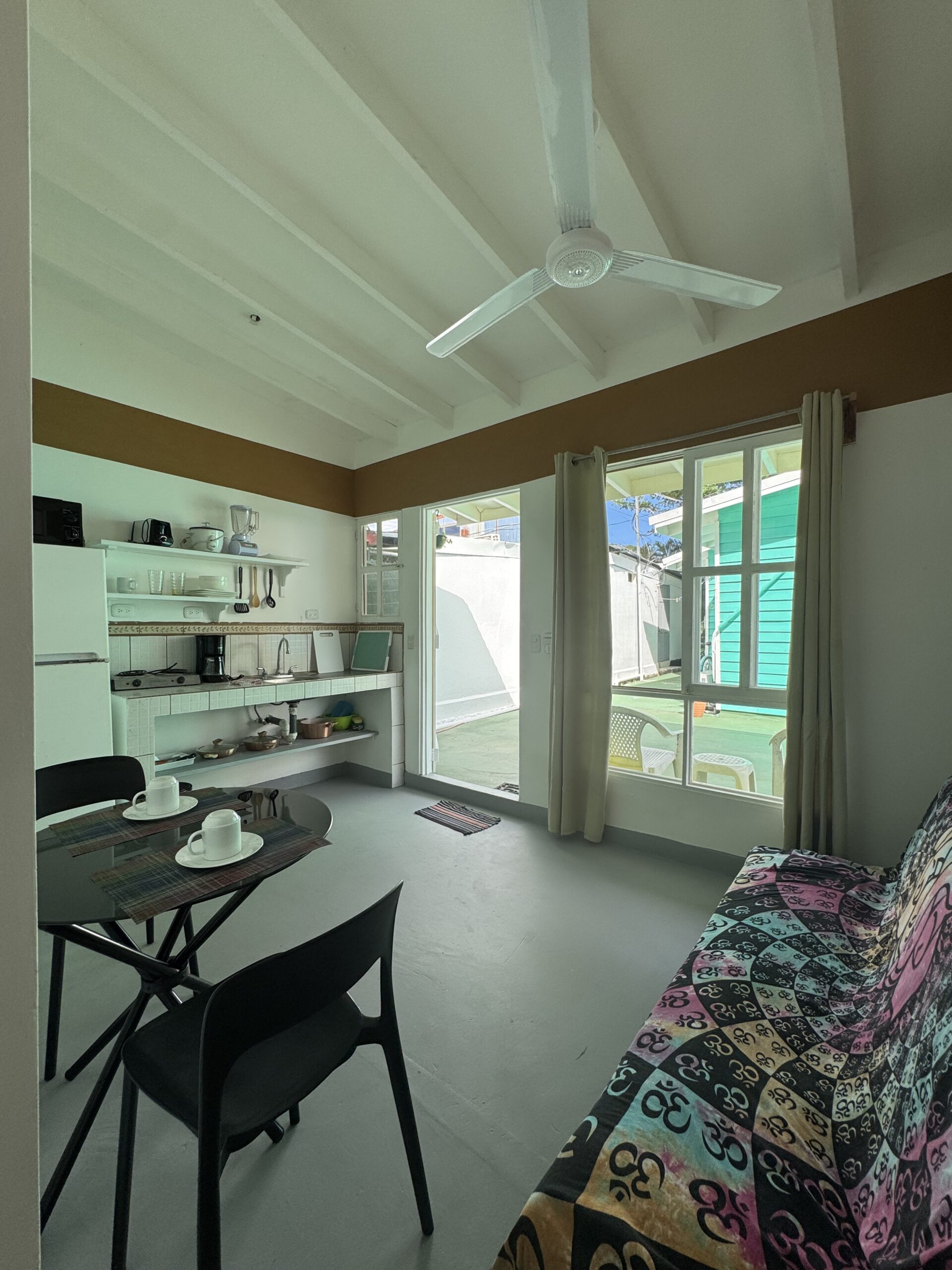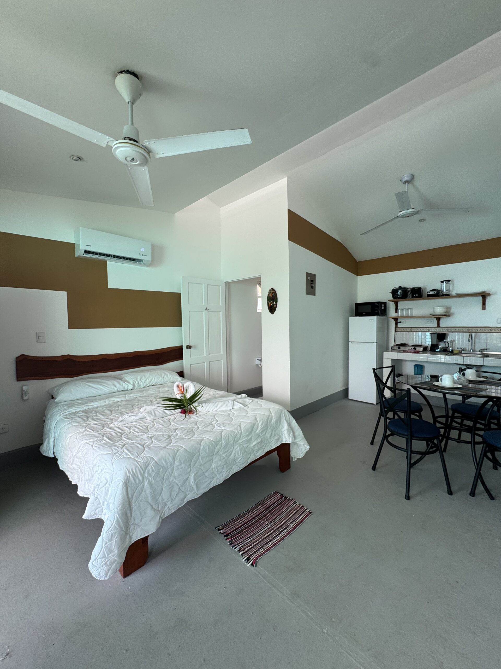 The six units include two two-bedroom bungalows, two one-bedroom bungalows, and two studio units. Each unit is fully equipped with a kitchen, private bathroom with shower, Queen-size bed with mosquito net, fans, and a living area. All bungalows have individual water and electricity meters, allowing for clear and efficient utility management.