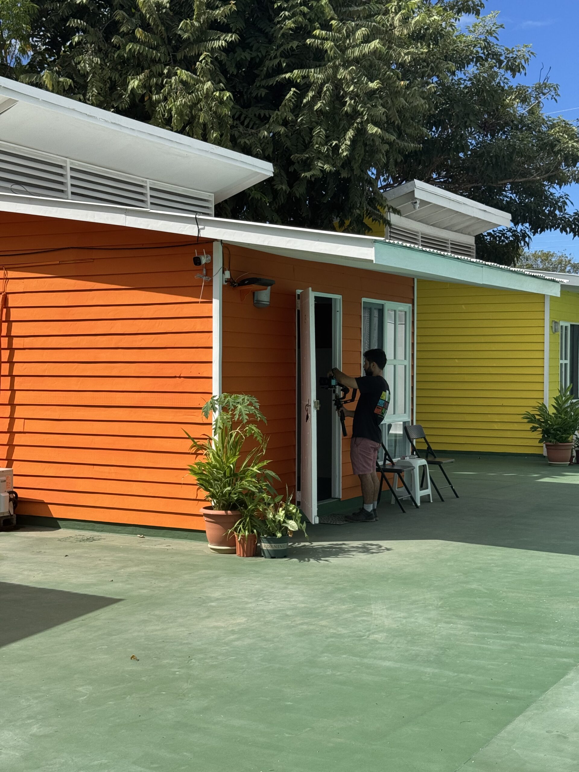 The property is fully fenced and equipped with security cameras, shared laundry facilities, concrete walkways for easy maintenance, and an outdoor shower for beach use. The restaurant space is currently subleased and may be included in the sale or managed separately, providing additional income potential.