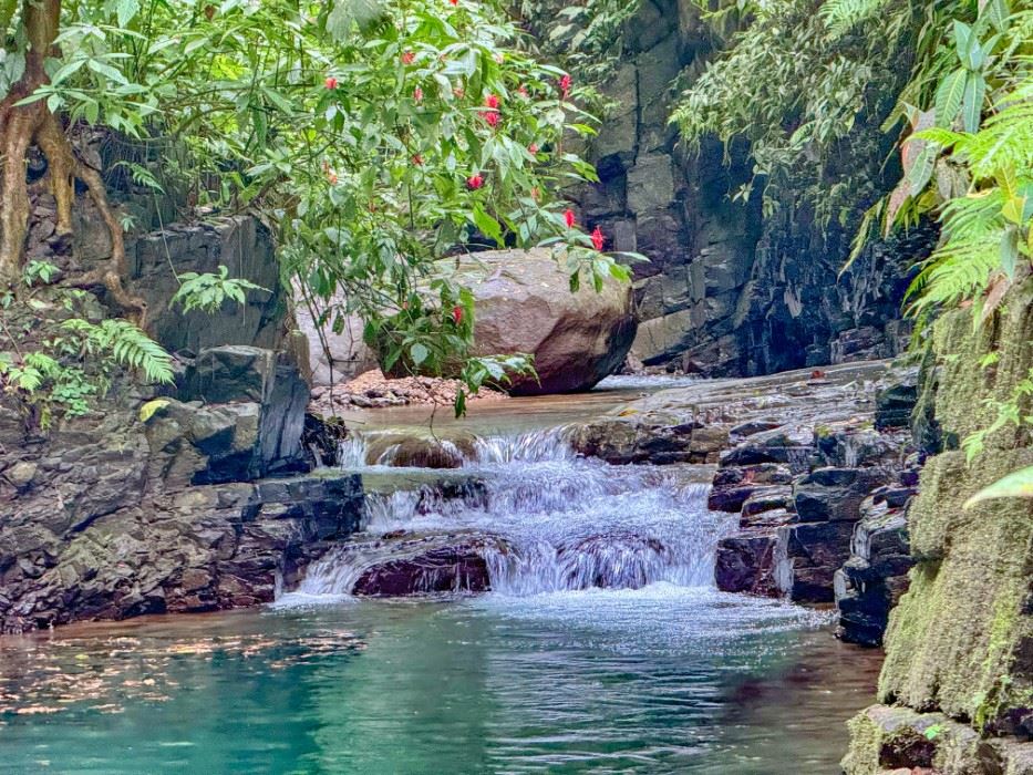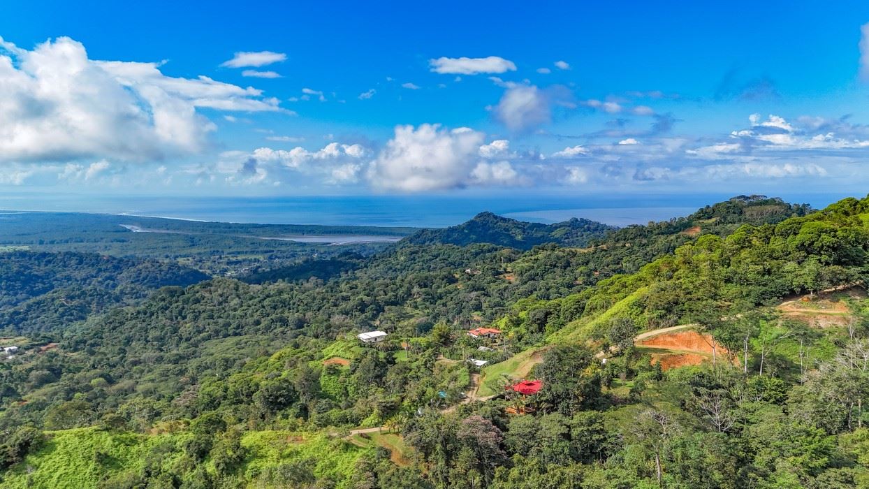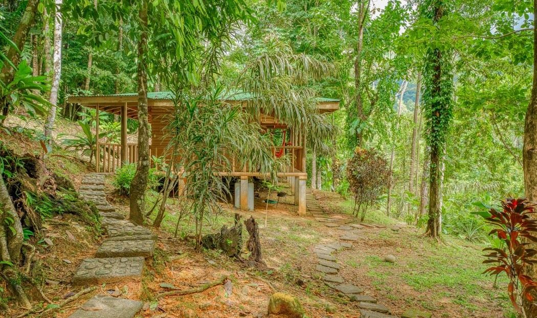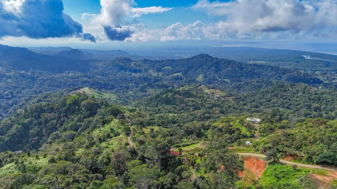 Ocean, jungle, mountain & mangrove views from a 2-home jungle property (and a separate lot!) complete with lush rainforests, a mountain river, swim holes and a waterfall!