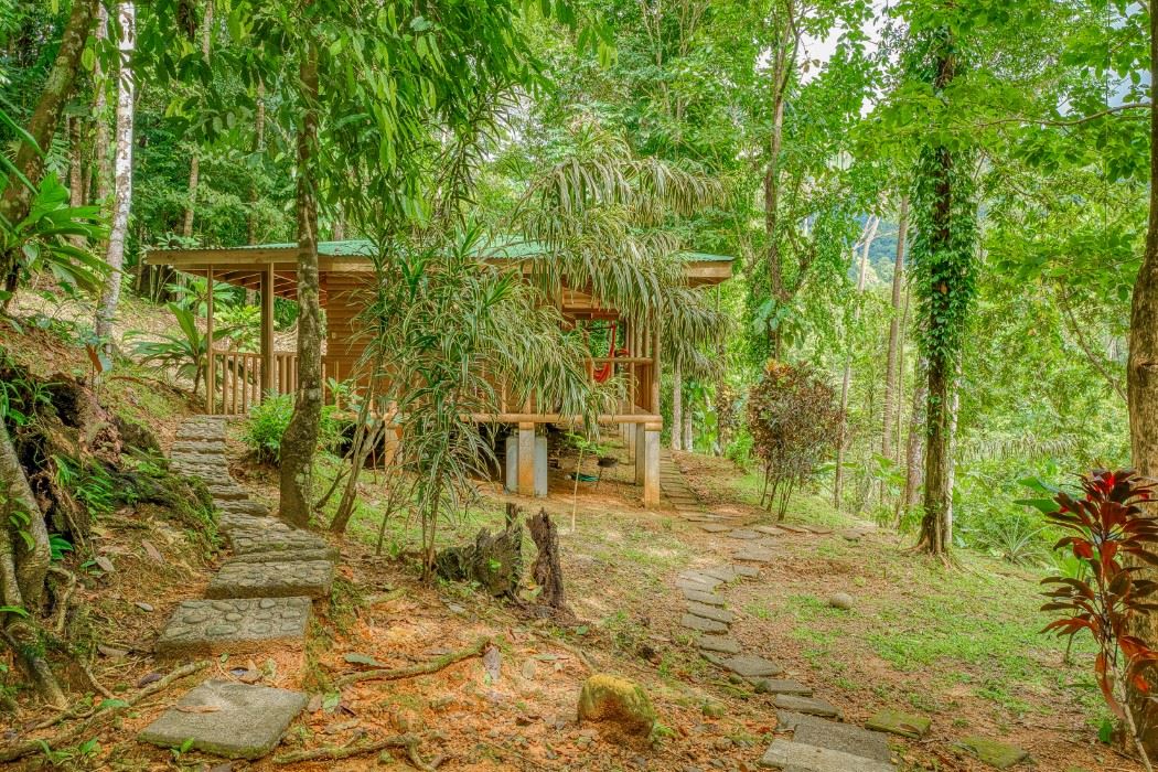 ACCESS & PROPERTY The property is accessed via a prepared and well-maintained public road. A large car-park, adjacent to the house, can hold several vehicles. High hedging provides the lower house floor with full privacy while a sprawling flat lawn, opposite the car-park, can be used for playing, entertaining, BBQing, tending a bonfire, or relaxation. A prepared step-stone path leads towards the jungle-clad interior of the property – first stop is the large timber cabin with the final destination finding you at the magical rainforest river.