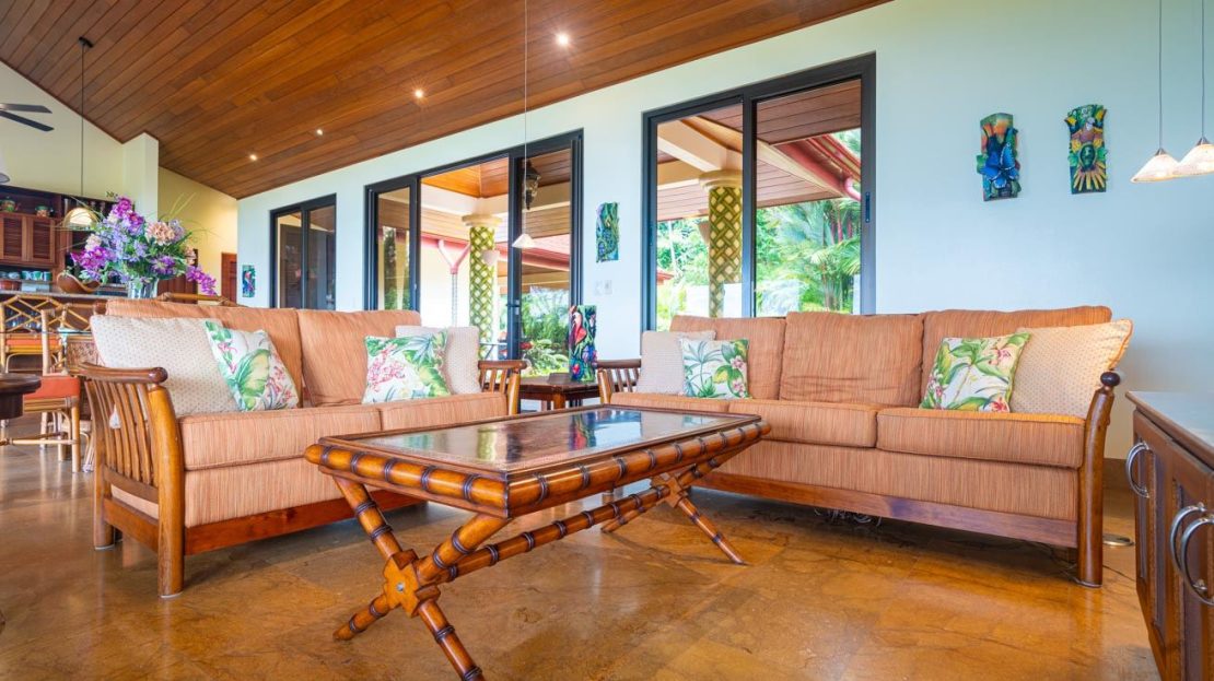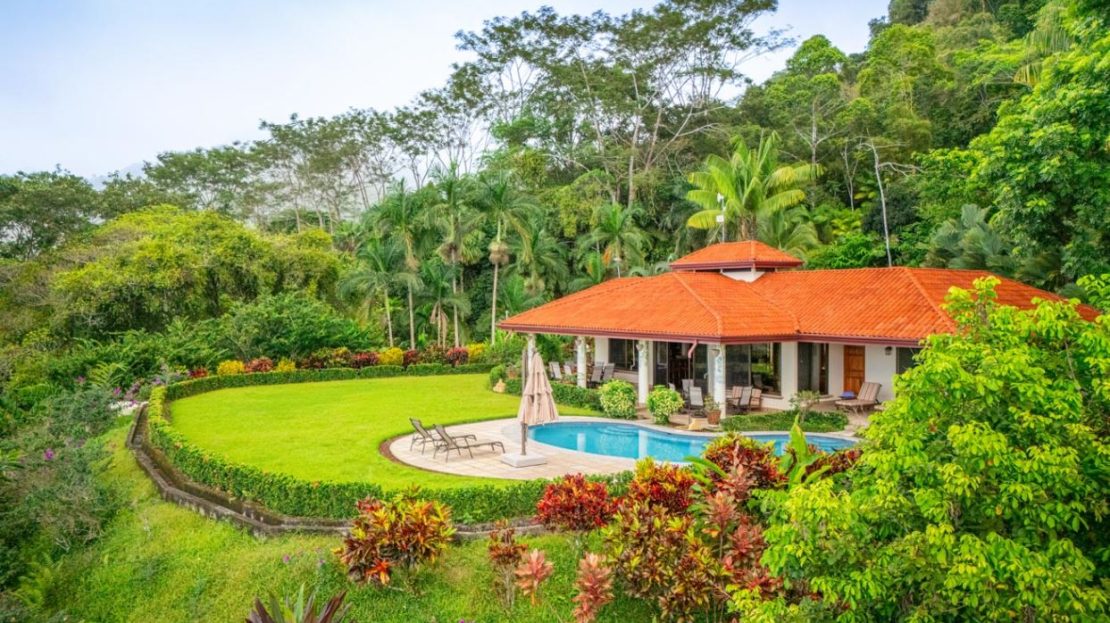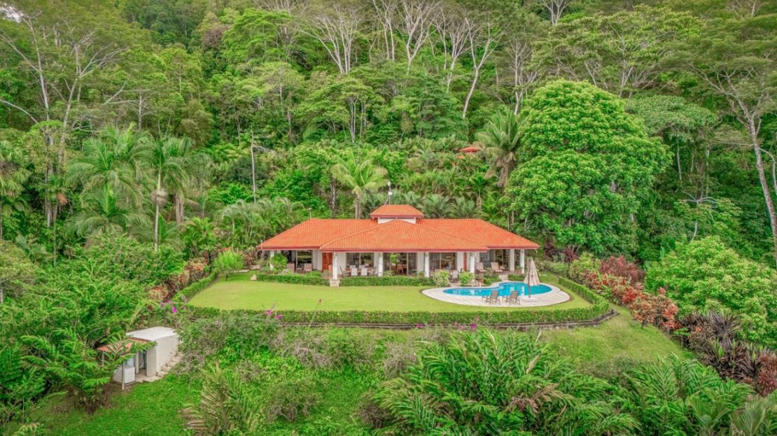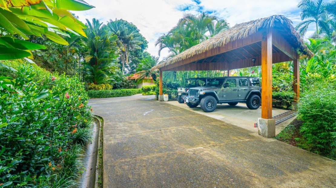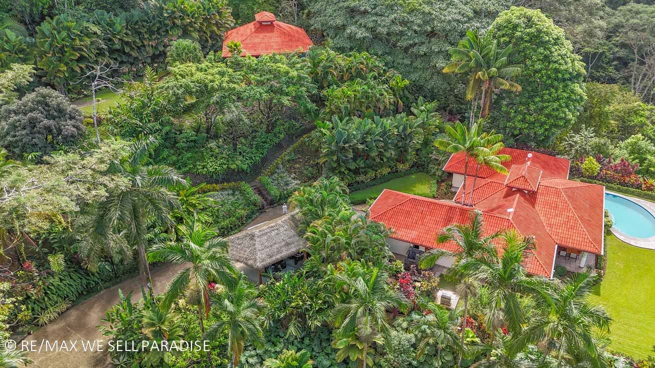 This elevated estate blends lush rainforests, vibrant flowerbeds, and stone pathways into a seamless experience of tropical living. Wildlife abounds—monkeys, sloths, toucans, macaws, butterflies, and frogs—while the sound of a nearby river adds a tranquil soundtrack.