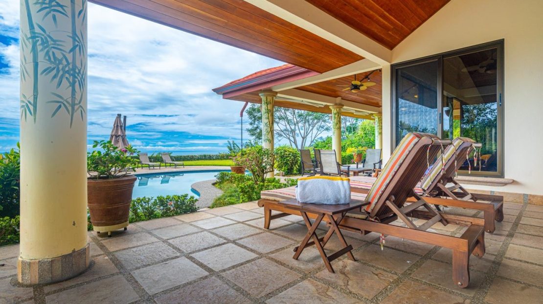 Sweeping views of jungle, mountains, and ocean from the poolside lawn
