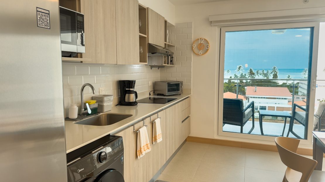 El apartamento está meticulosamente amueblado, con detalles en madera fina, muebles modernos, decoración costera de lujo y electrodomésticos de primera—todo listo para vivir o rentar de inmediato.