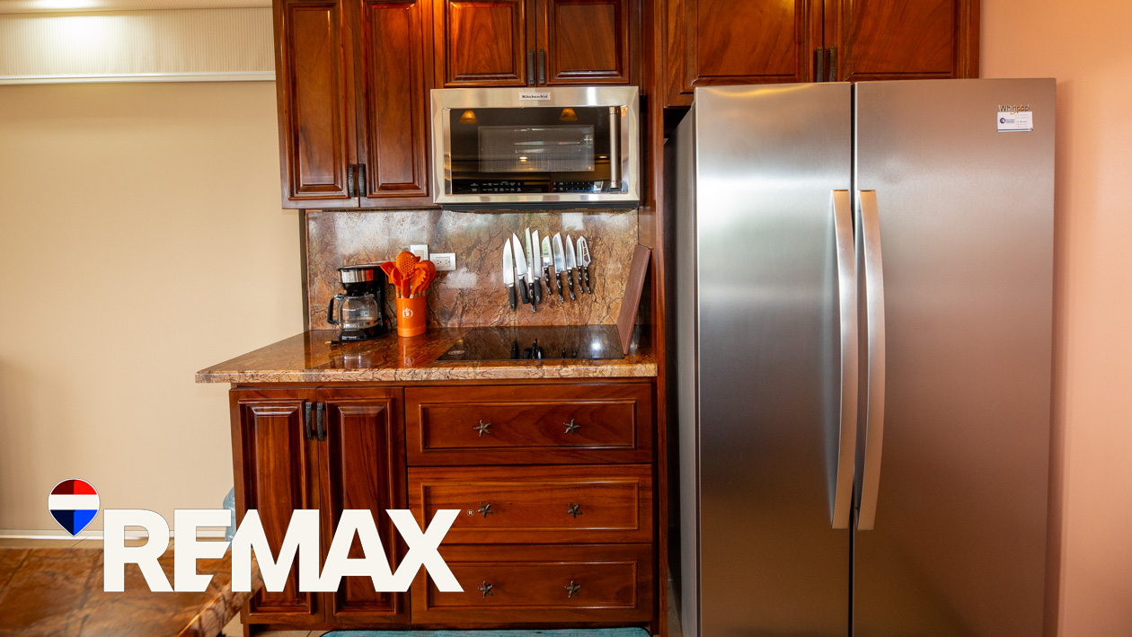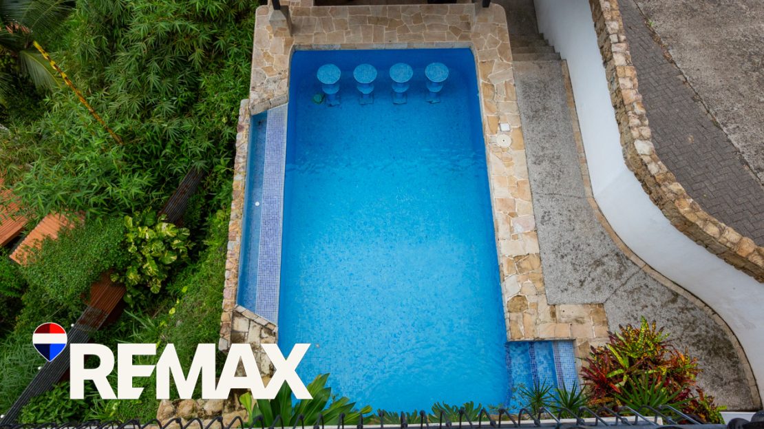 Cool off in the infinity edge pool with a swim up bar or walk two blocks to the Pacific ocean for a snorkel or surf. This building known as “Surf watchers” has just three levels, each owned by separate shares of the corporation that holds this property. Each level is separately metered for electricity and each owner maintains their own unit inside, air conditioners and railings, while expenses like pool cleaning, the exterior and corporation maintenance are shared three ways, making this unit exceptionally affordable to own.