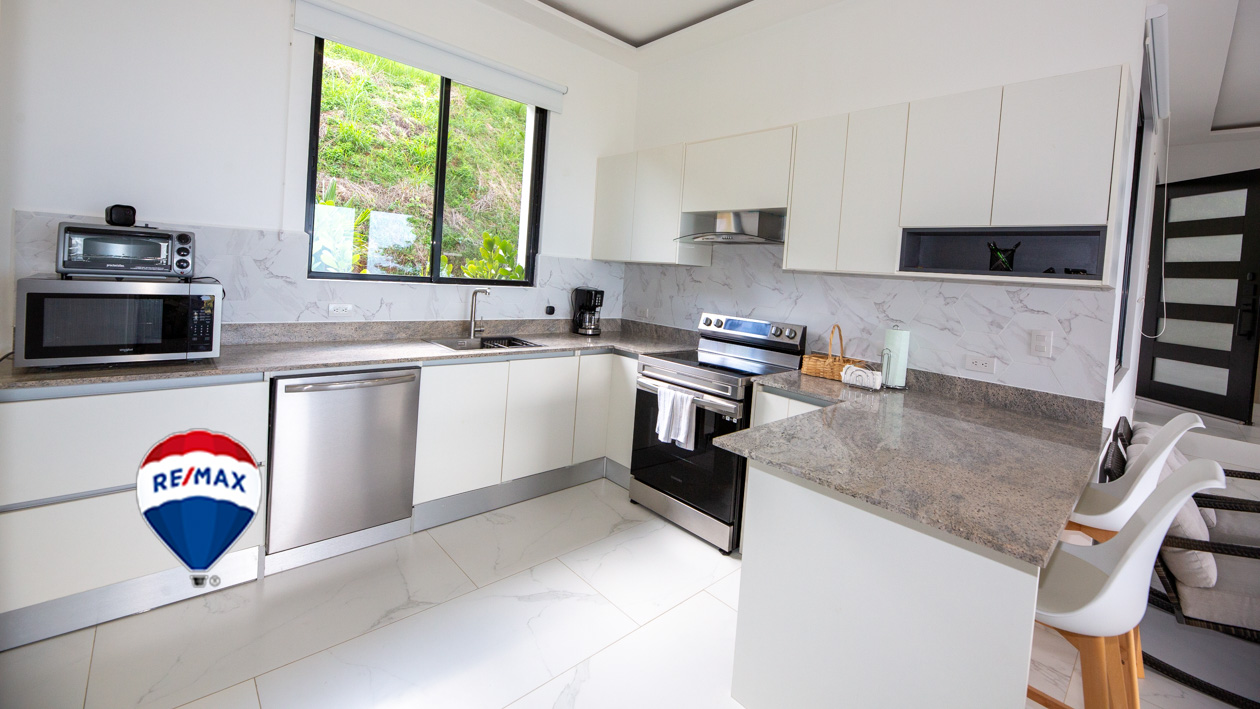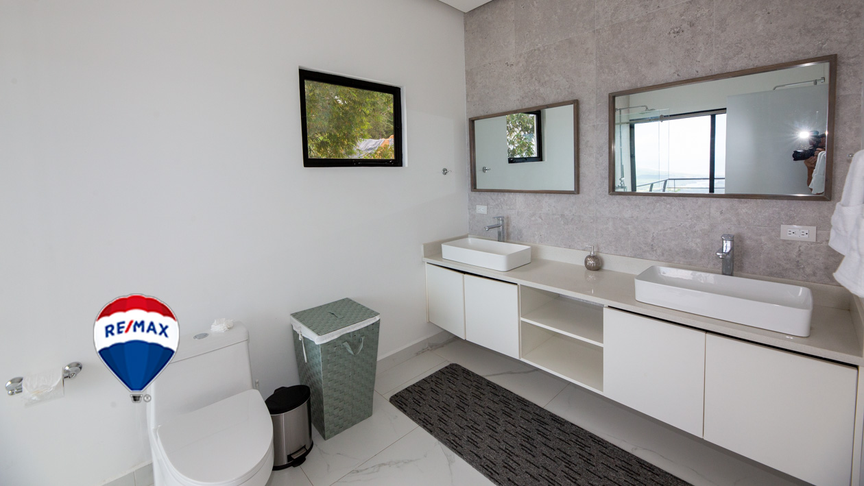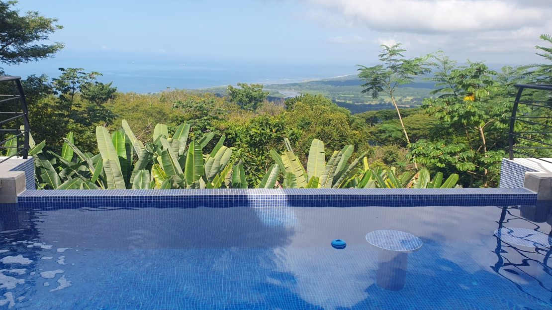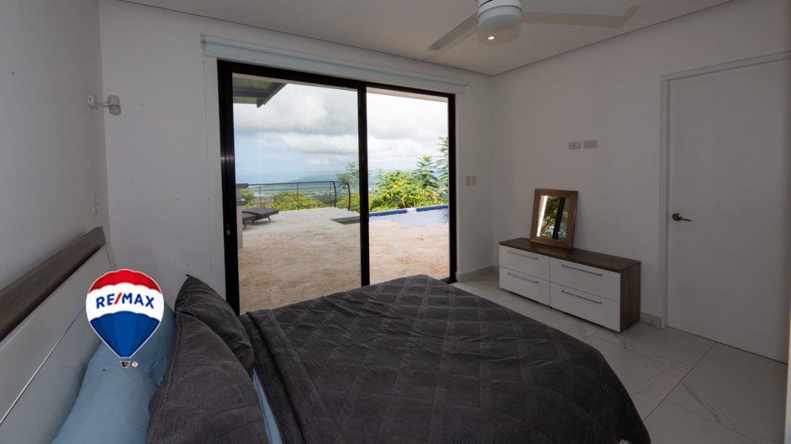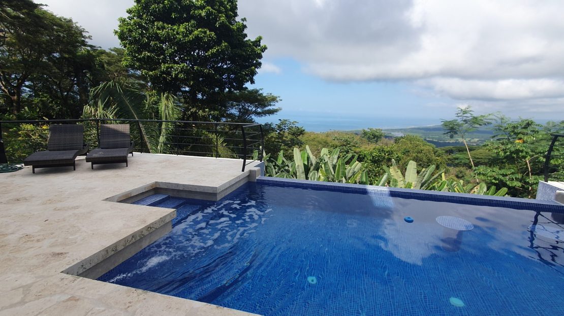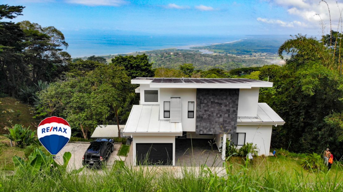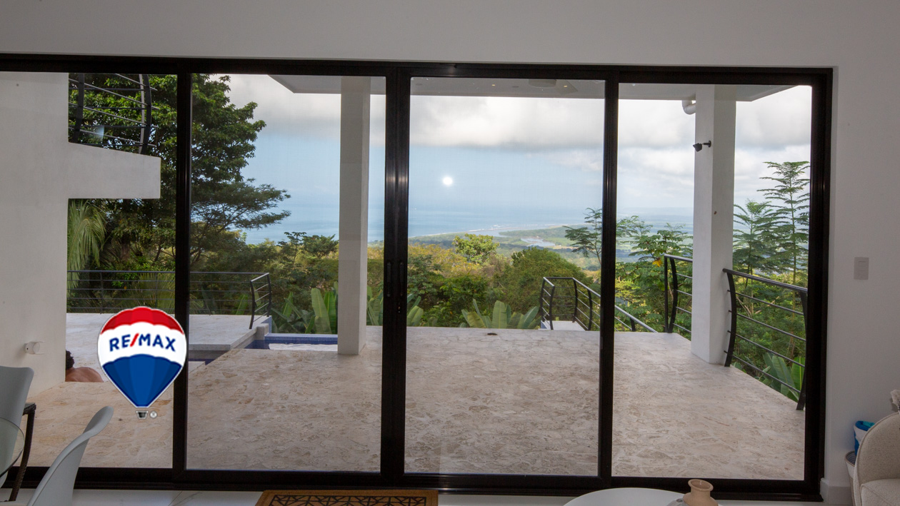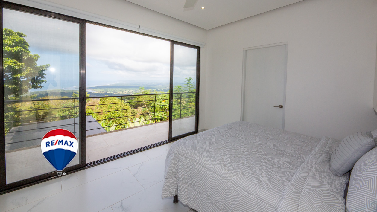 This home has it all! There’s a jaw-dropping view of the coastline, Nicoya Peninsula, Tarcoles river and Pacific ocean from all bedrooms, the living room, kitchen and even from some of the showers! There are multiple decks on all levels with an infinity edge swimming pool. The property comes with a double lot with an overflow parking platform, carport and a garage with electric door opener and a laundry area. There’s a huge master suite on the top level with a master bathroom with a double vanity and a shower for two with God’s view! The master has a large private terrace as well. Each of the other two bedrooms in the main home also have ocean views, a private balcony and ensuite bathroom. Apart from the main home there is also a guest suite complete with an open concept living/ dining/ kitchen, bedroom and bathroom and has its own private terrace. There’s even an efficiency style caretakers house with its own bathroom and kitchenette. The home is move-in ready with all the furniture, appliances, linens, towels and even the art on the walls included! Book your private tour today!