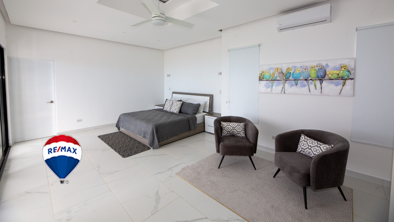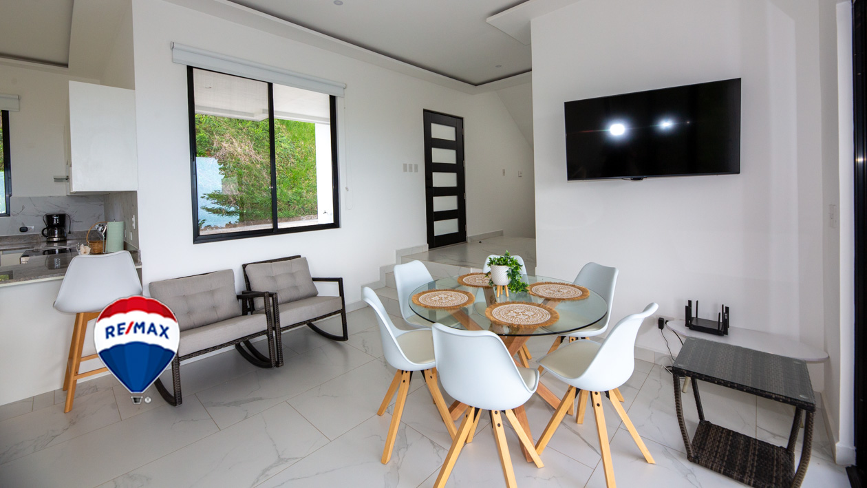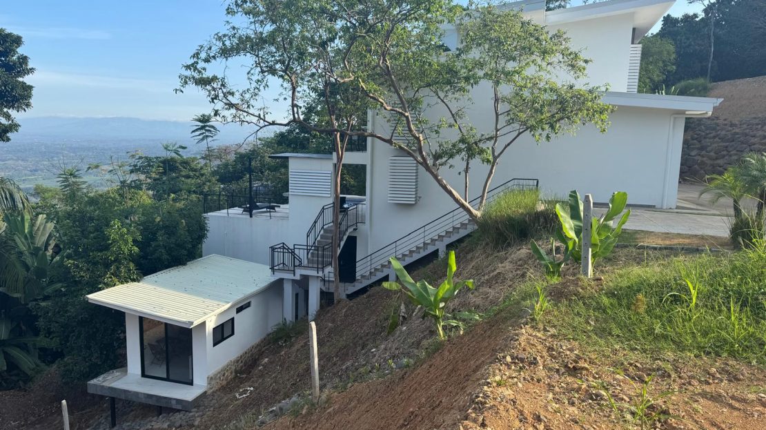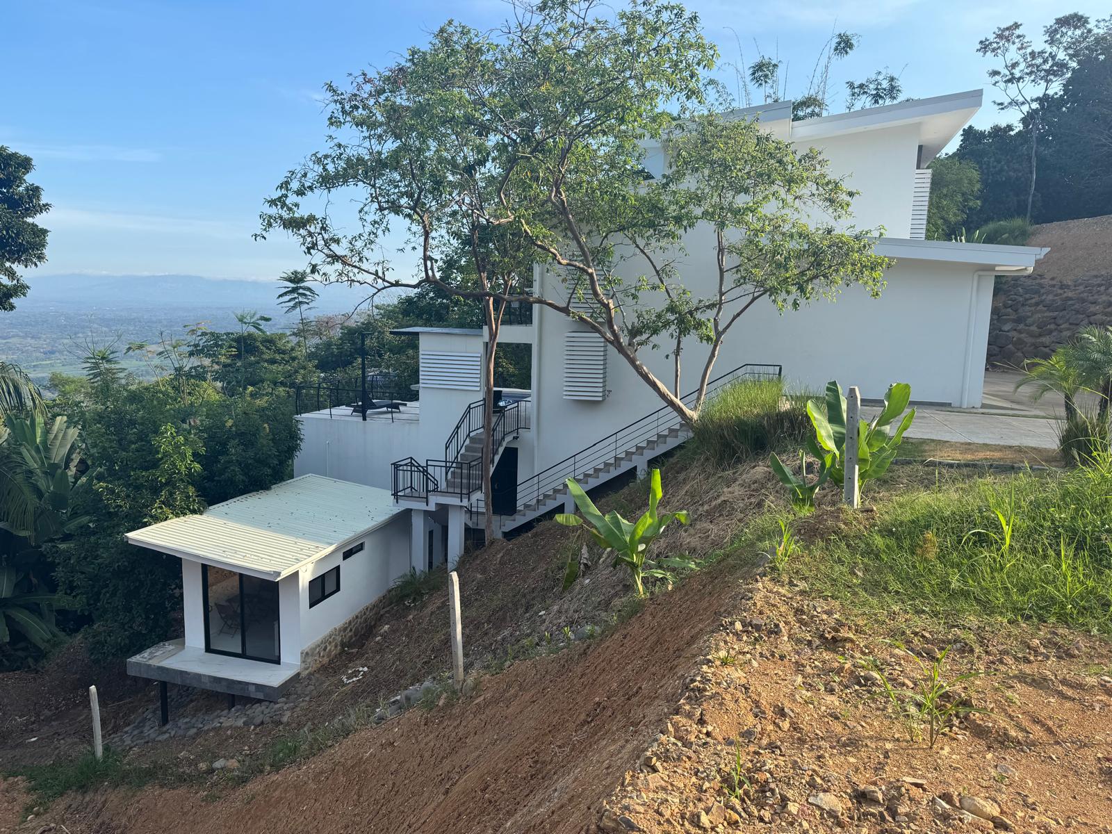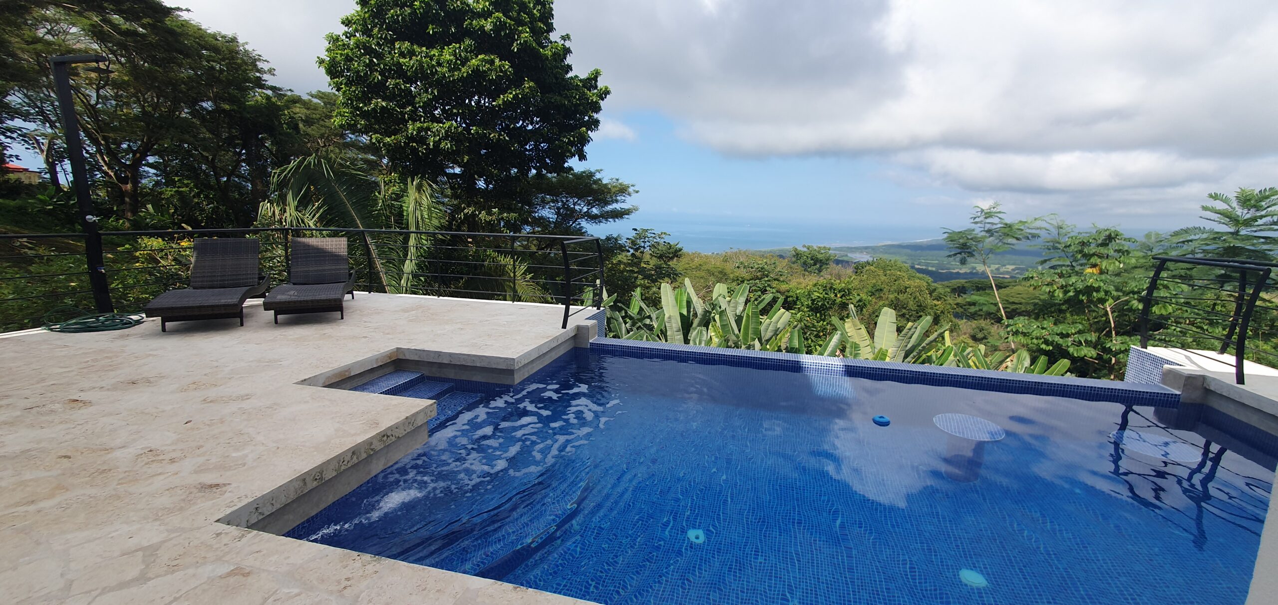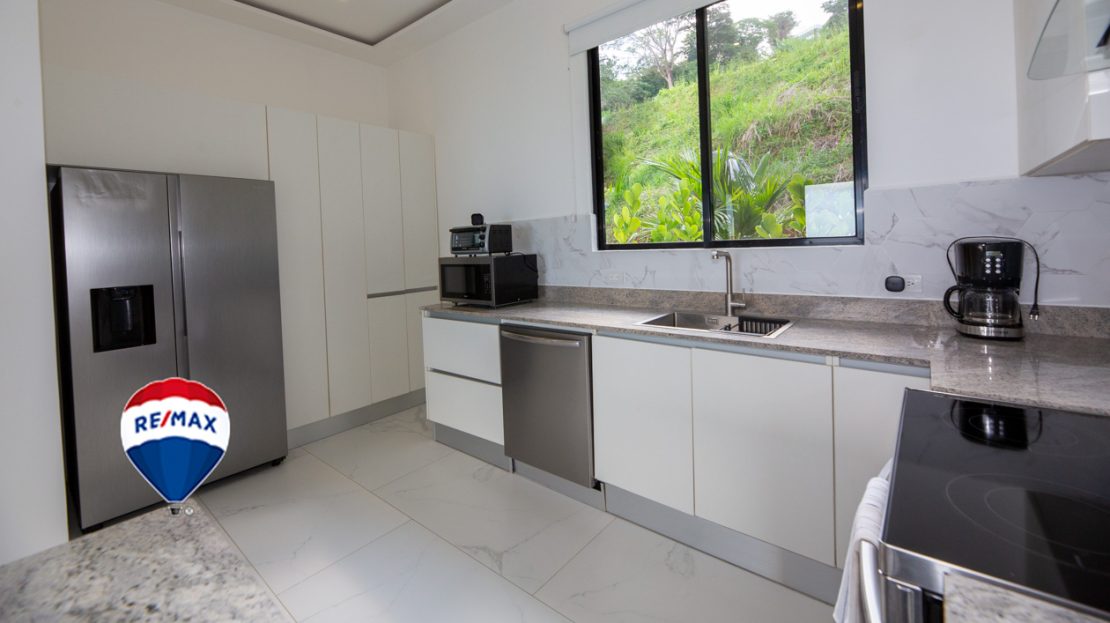 This home has it all! There’s a jaw-dropping view of the coastline, Nicoya Peninsula, Tarcoles river and Pacific ocean from all bedrooms, the living room, kitchen and even from some of the showers! There are multiple decks on all levels with an infinity edge swimming pool. The property comes with a double lot with an overflow parking platform, carport and a garage with electric door opener and a laundry area. There’s a huge master suite on the top level with a master bathroom with a double vanity and a shower for two with God’s view! The master has a large private terrace as well. Each of the other two bedrooms in the main home also have ocean views, a private balcony and ensuite bathroom. Apart from the main home there is also a guest suite complete with an open concept living/ dining/ kitchen, bedroom and bathroom and has its own private terrace. There’s even an efficiency style caretakers house with its own bathroom and kitchenette. The home is move-in ready with all the furniture, appliances, linens, towels and even the art on the walls included! Book your private tour today!