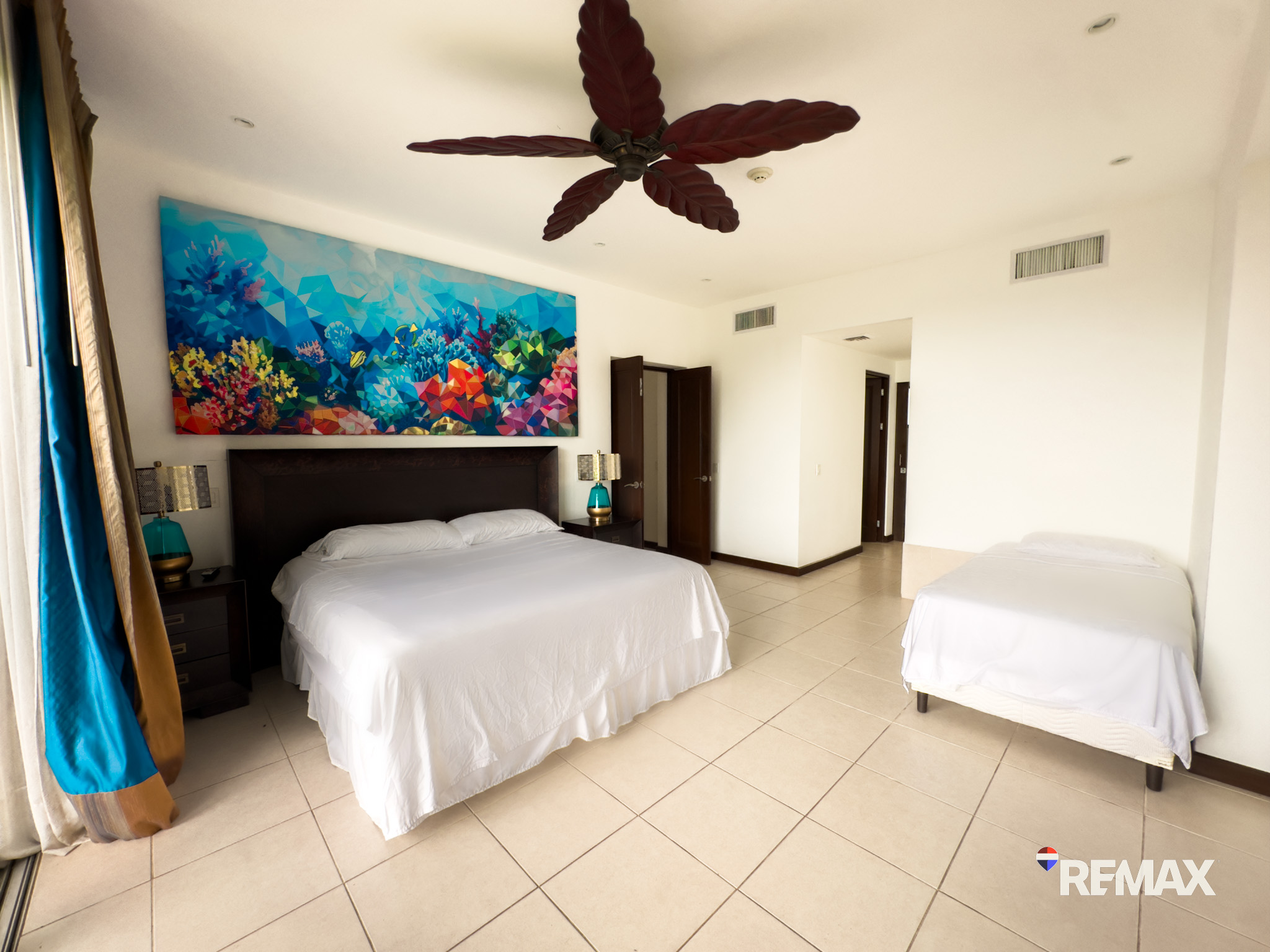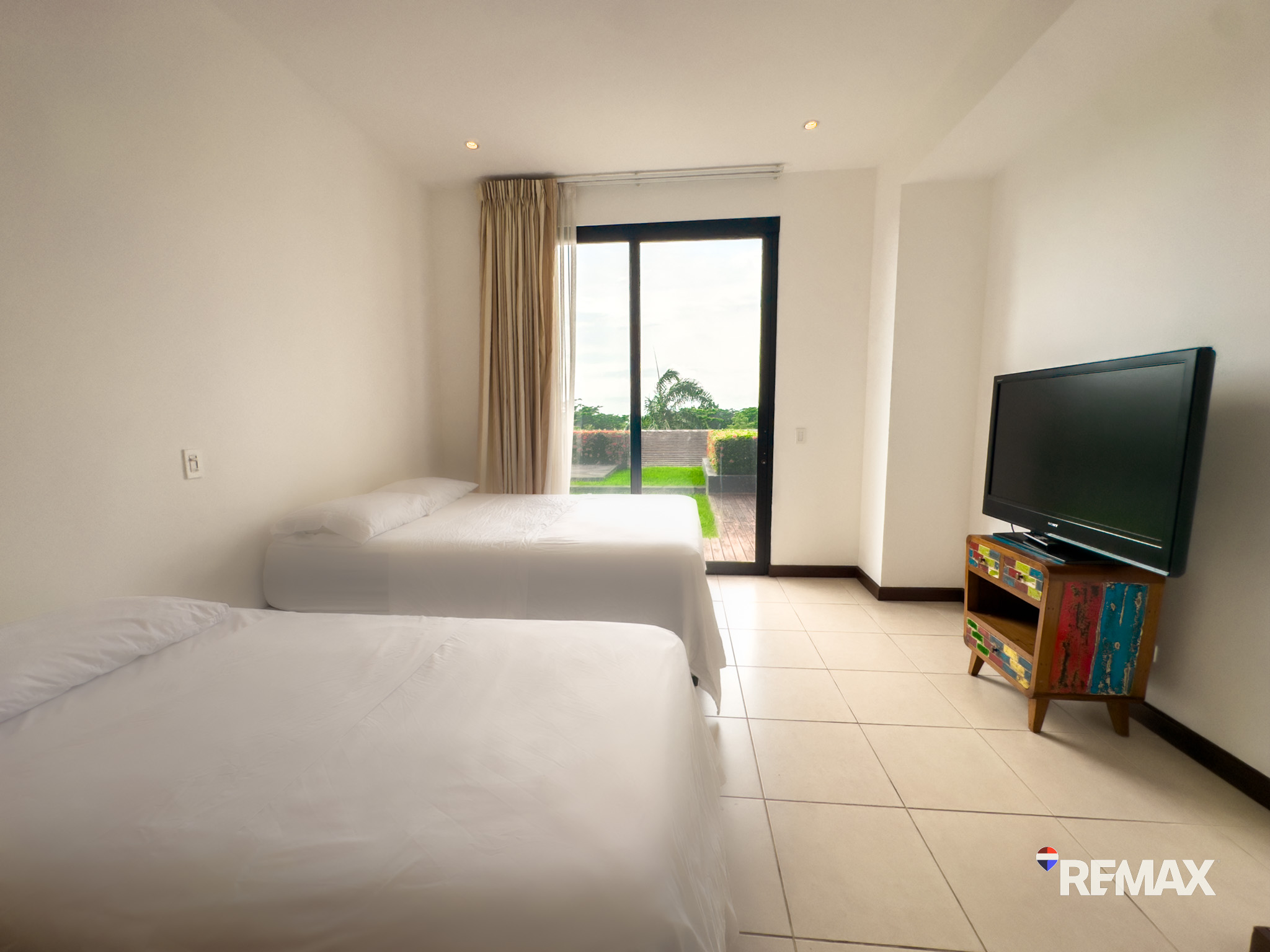 This elegantly furnished 2-bedroom, 2-bathroom Garden Suite provides ample space, comfort, and style, accommodating 6+ individuals. One of the bathrooms boasts a generous walk-in closet, making it perfect for long-term stays or permanent residence. The condo comes fully equipped with Ashley furniture, Frigidaire Professional Series appliances, high-speed internet, WIFI, air conditioning units, and smart LED televisions—everything necessary for a seamless lifestyle.