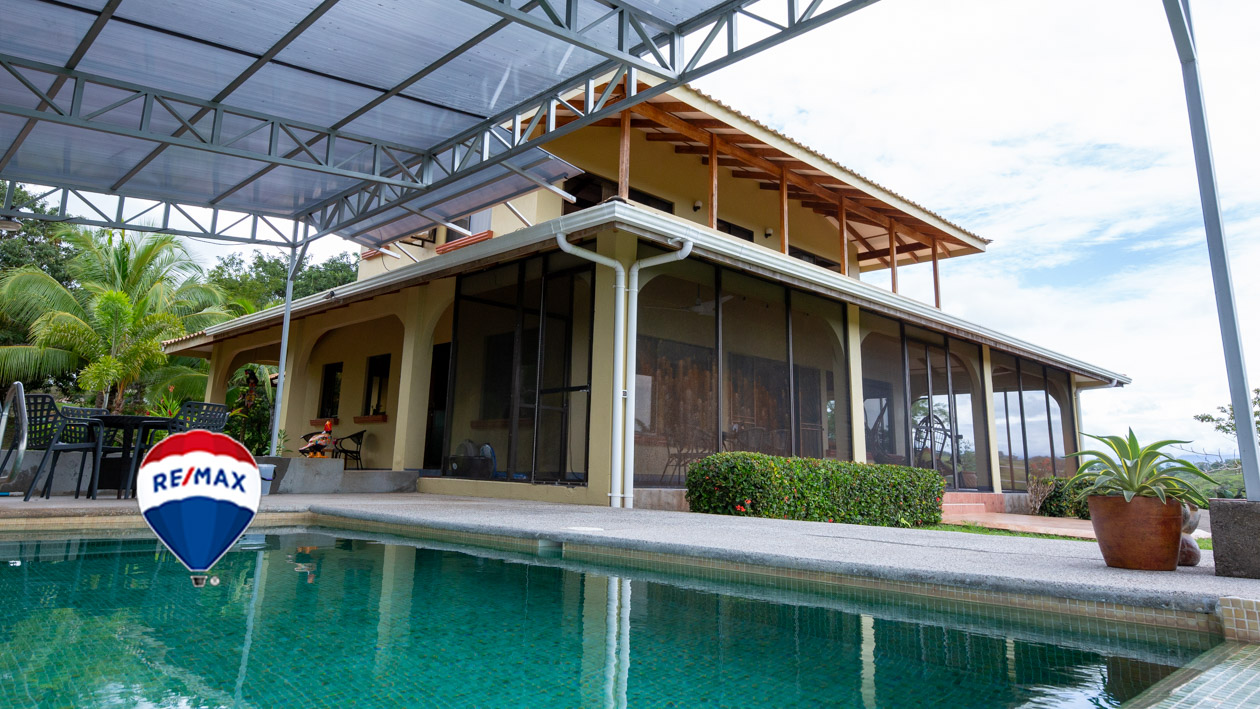 This spectacular furnished home is what Costa Rica is all about. Surrounded by lush nature on a hill overlooking the central Pacific coast of Costa Rica, this 4.49 acre property is close to the beach and between the popular tourist areas of Jaco and Manuel Antonio. The view is expansive, with a magnificent panorama of the Pacific ocean extending from Esterillos to Manuel Antonio.