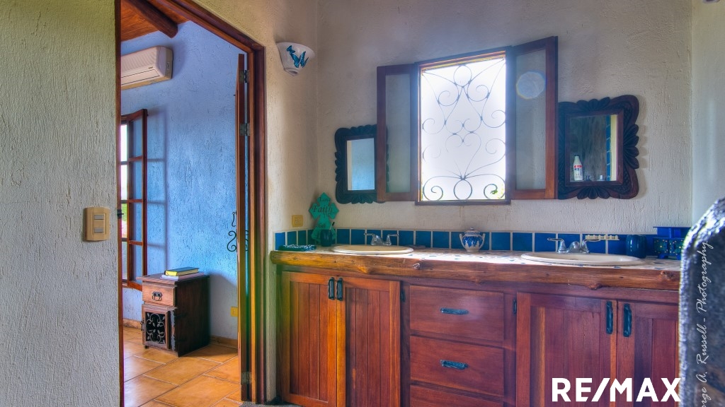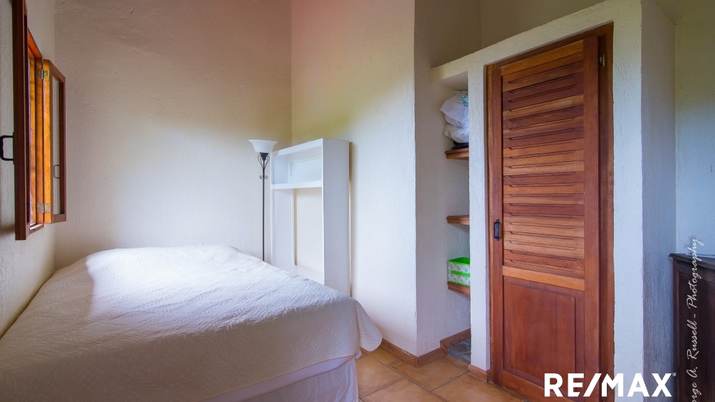 La casa principal tiene un espacioso living room y una cocina completamente equipada. El dormitorio principal tiene su propio baño privado con una ducha grande y un gran armario. Los otros dos dormitorios comparten un baño. La oficina es perfecta para trabajar desde casa o simplemente disfrutar de la paz y la tranquilidad de la selva. La oficina se puede convertir fácilmente en un cuarto dormitorio.