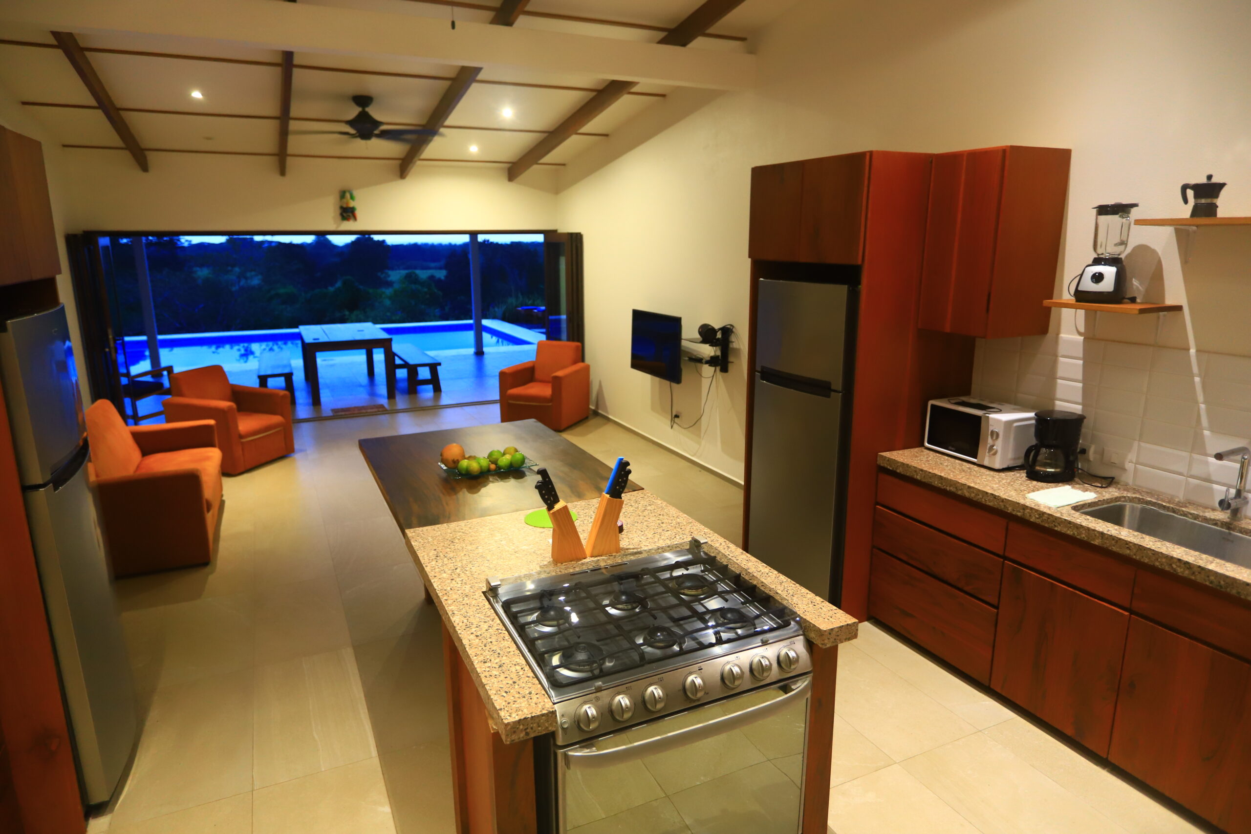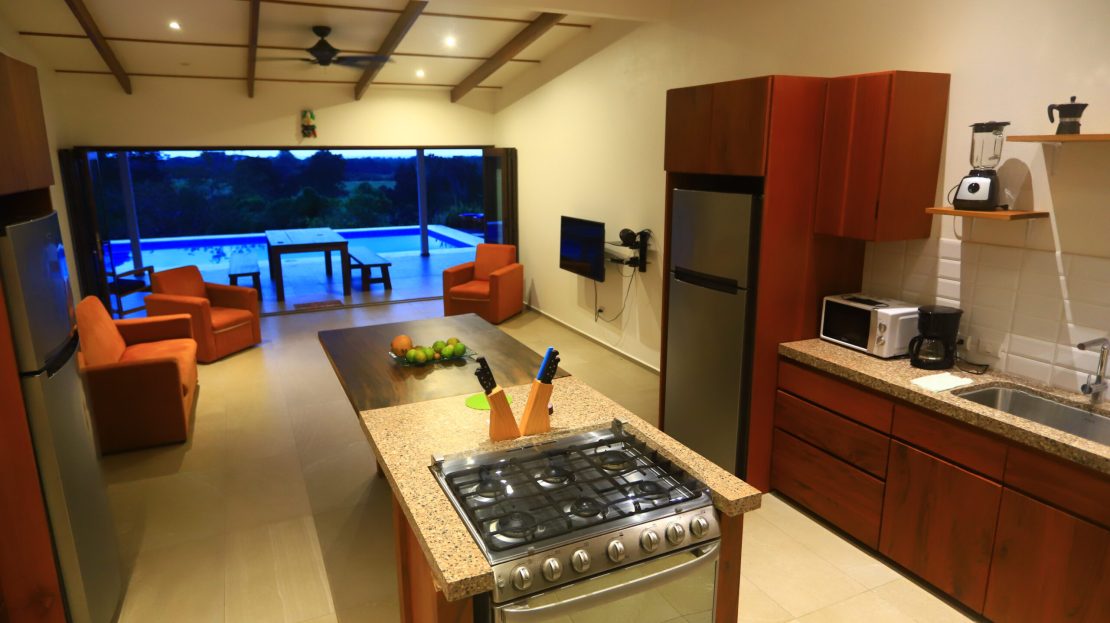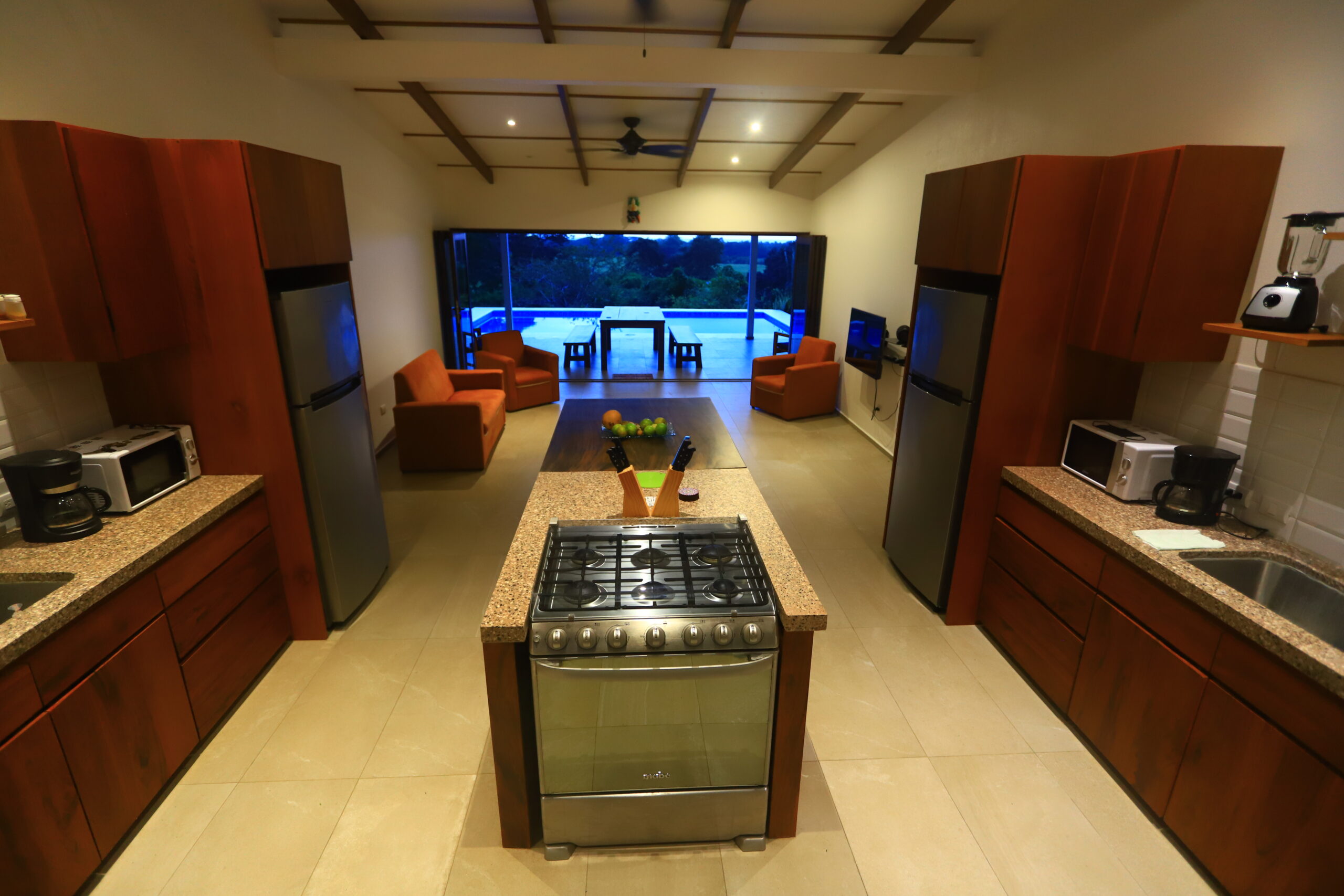 The functional kitchen offers an enjoyable cooking and entertaining experience, while the outdoor living space provides the perfect setting to relax, host guests, or enjoy Costa Rica’s tropical climate.