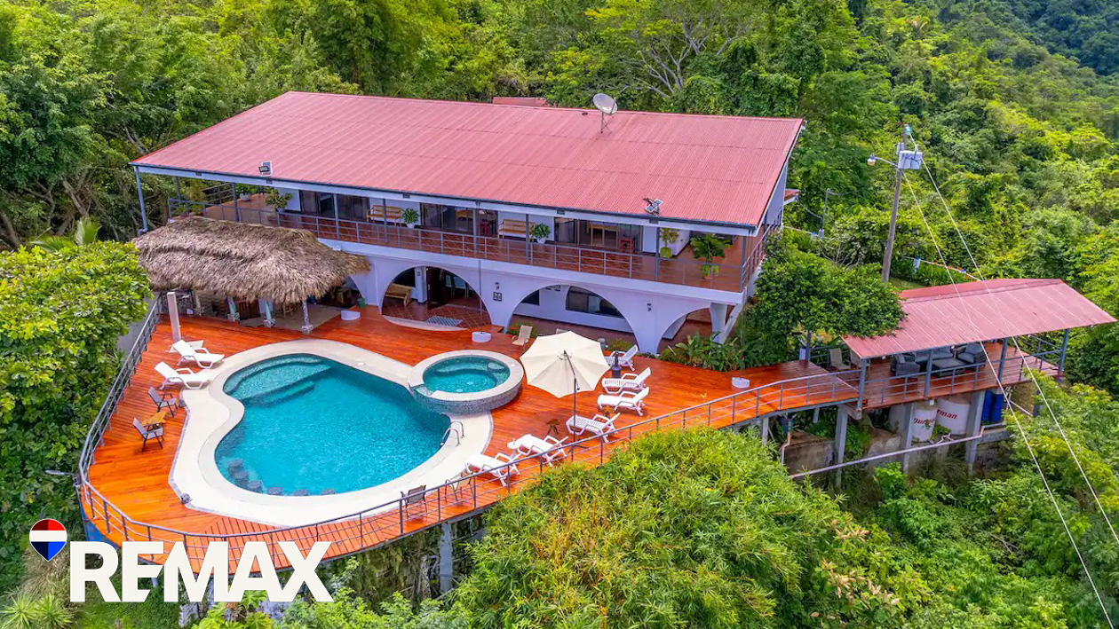 A Panoramic Coastal Sanctuary Above the Central Pacific Coast of Costa Rica. Discover Villa Cielo, a 6-bedroom, 6.5-bath villa perched atop nearly 6 acres of titled mountainside. A short 15-minute drive from Jacó Beach, this private estate offers the perfect blend of tranquility, ocean views, and luxury—ideal as a full-time residence, income-producing rental, or multi-home development site.