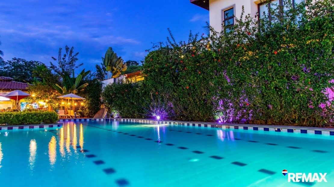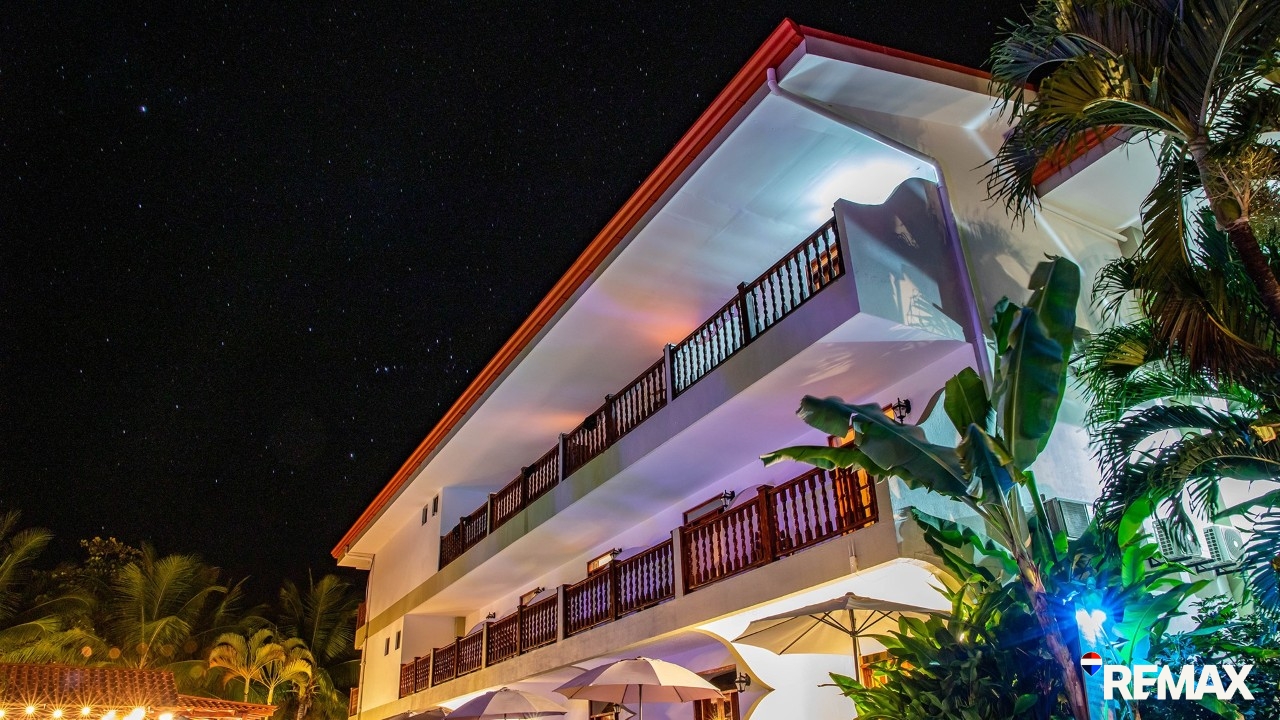 This established hotel is comprised of eighteen rentable units, designed to accommodate a variety of guest preferences. Twelve of the rooms are well-appointed standard suites that offer air conditioning, private bathrooms, and views of the pool and lush gardens. Four additional units are larger suites, ideal for families or longer-term travelers seeking more space and comfort. At the top of the property are two penthouse-style units, each featuring a kitchenette and private balcony—making them well-suited for luxury guests or as owner-occupied residences.