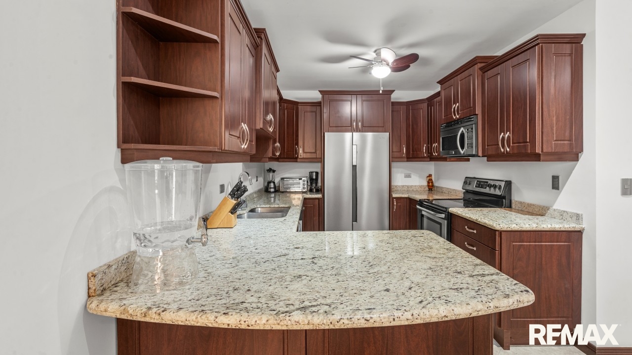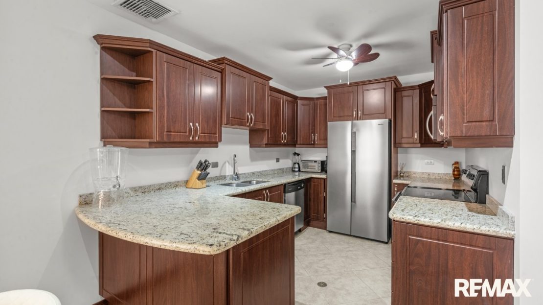 - Gourmet kitchen with granite countertops & stainless steel appliances