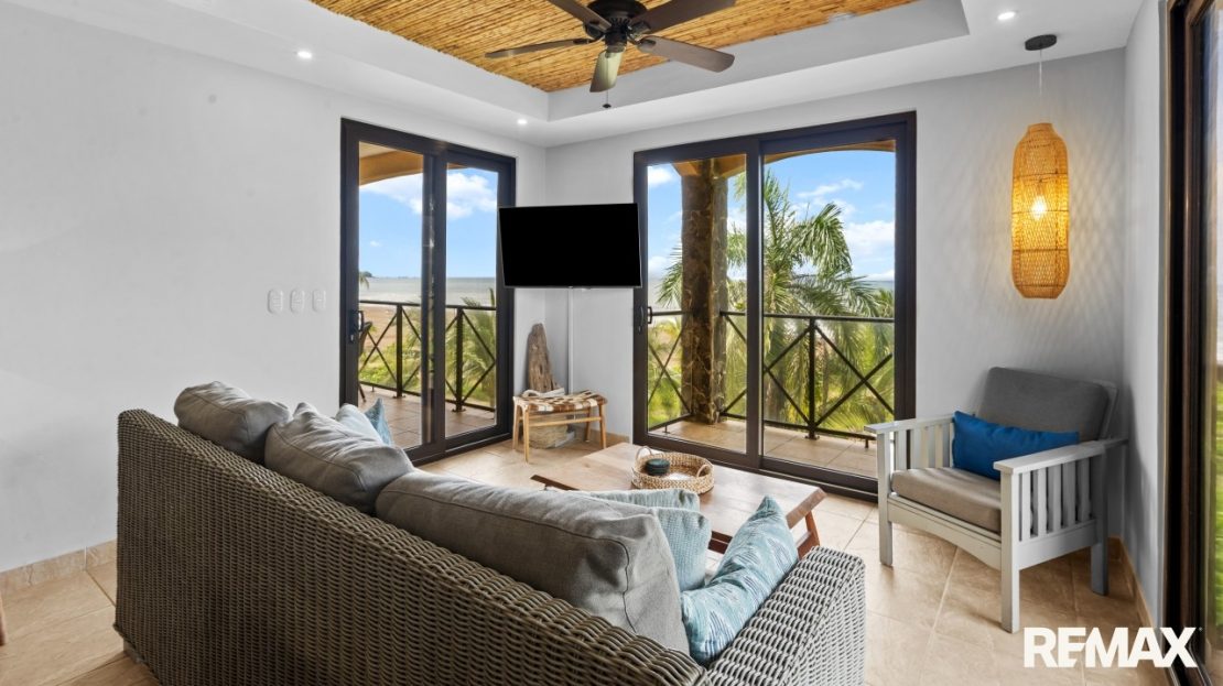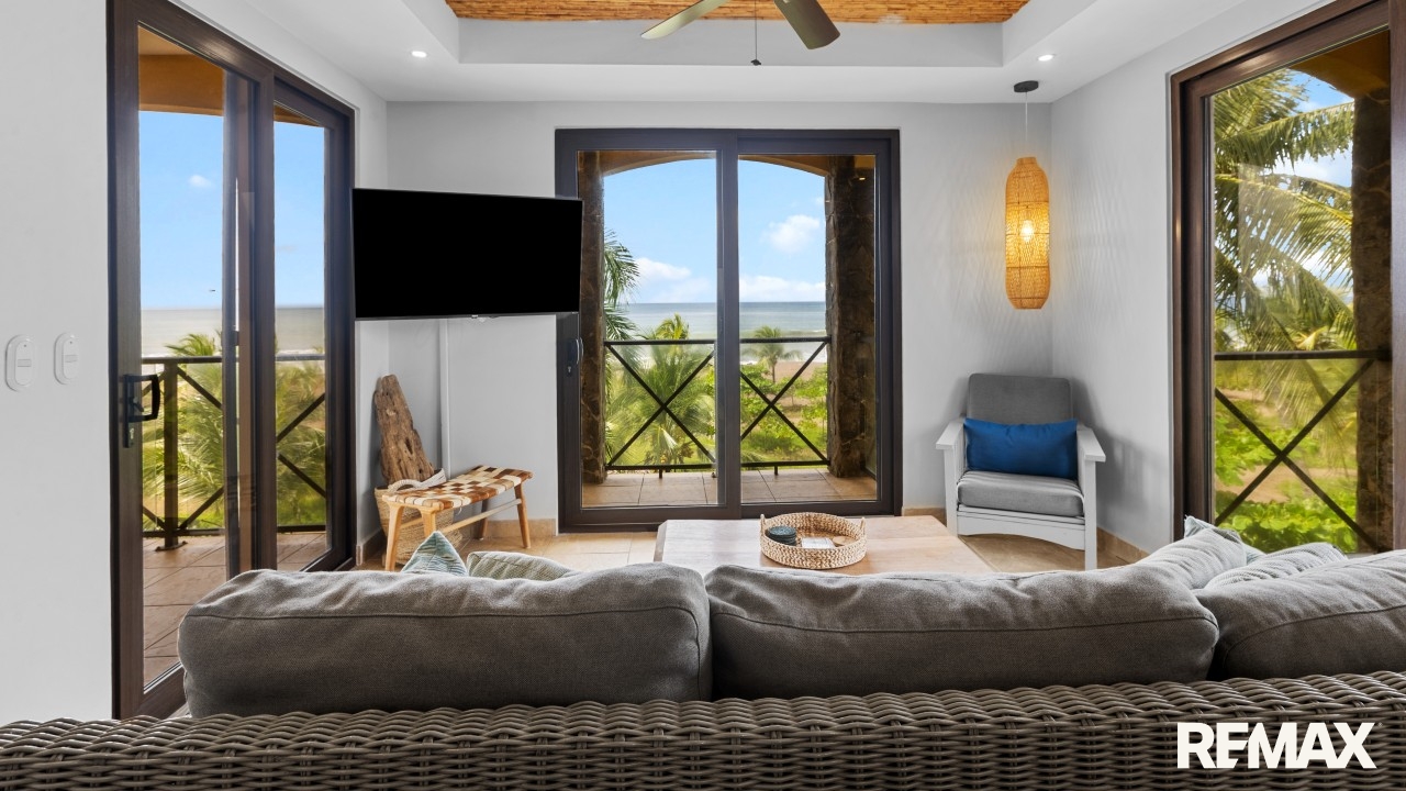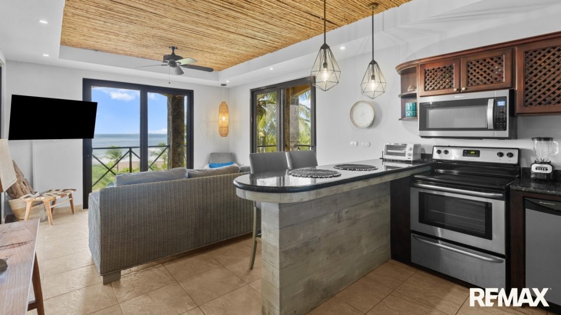 Oceanfront Penthouse with Private Rooftop Status : Exclusive | Costa Rica MLS number: 100710Wake up to the sound of waves and panoramic ocean views in this direct oceanfront penthouse at Bahia Encantada A3, located on the peaceful north end of Jaco Beach, Costa Rica. This exceptional 2-bedroom, 2-bathroom condo offers 1,055 sq. ft. of luxurious living space, including a rare private rooftop terrace—perfect for sunset cocktails and entertaining under the stars.