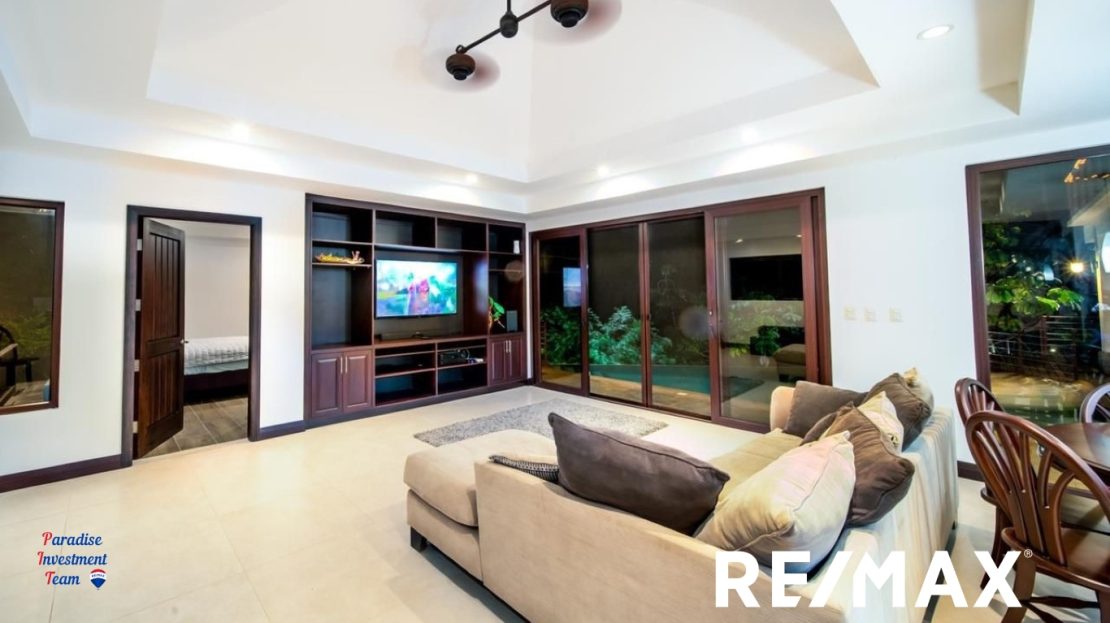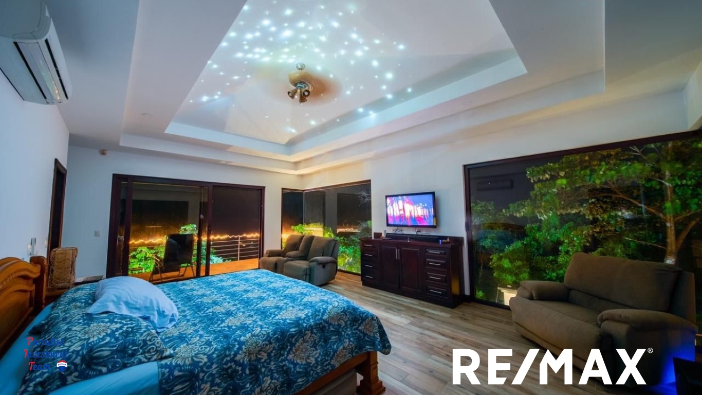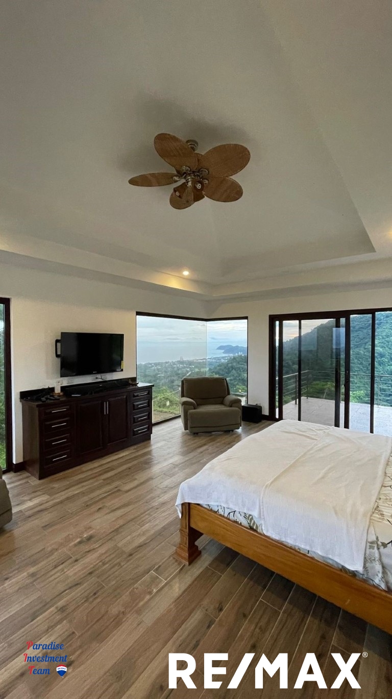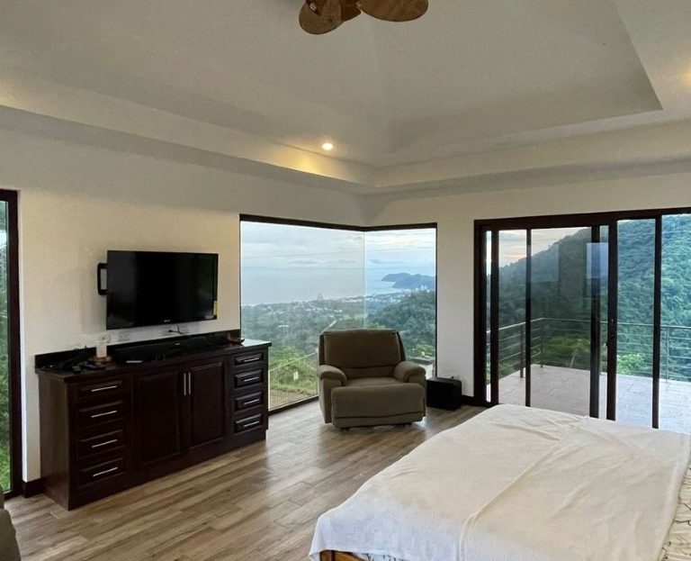 On the main level, you also have 2 bedrooms with en-suites, the kitchen, laundry room, pantry, and a large open-floor plan entertainment/living area. On the second floor, you will be wowed by the large master suite with 270-degree views of Jaco, Hermosa, and the mountains. If you are looking for a million-dollar view, look no further.