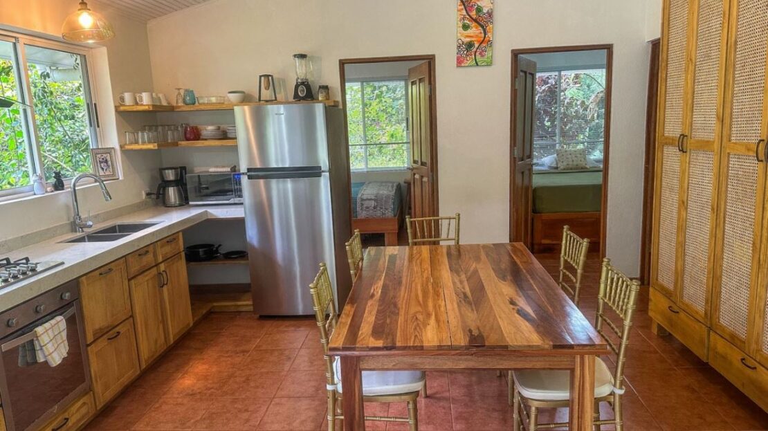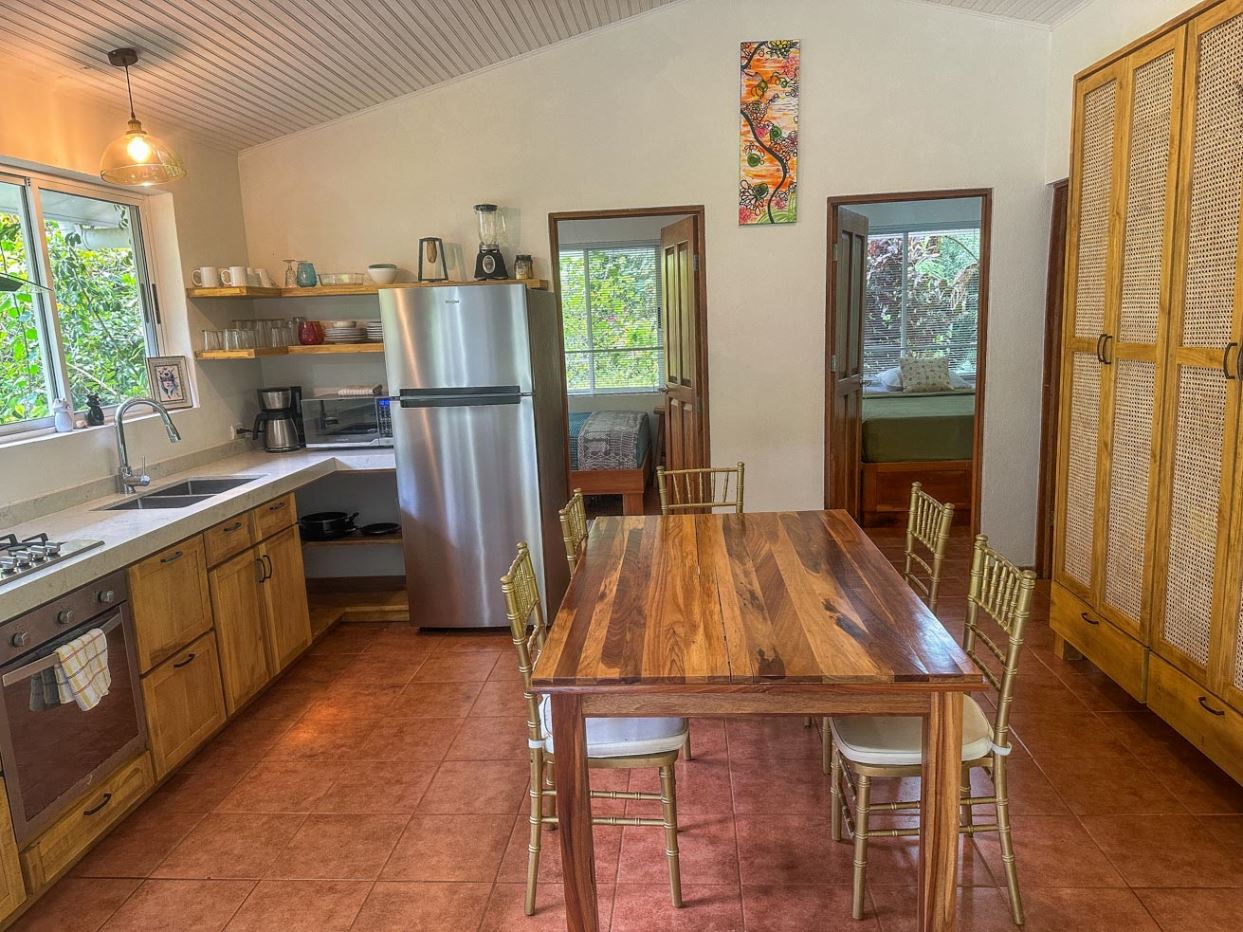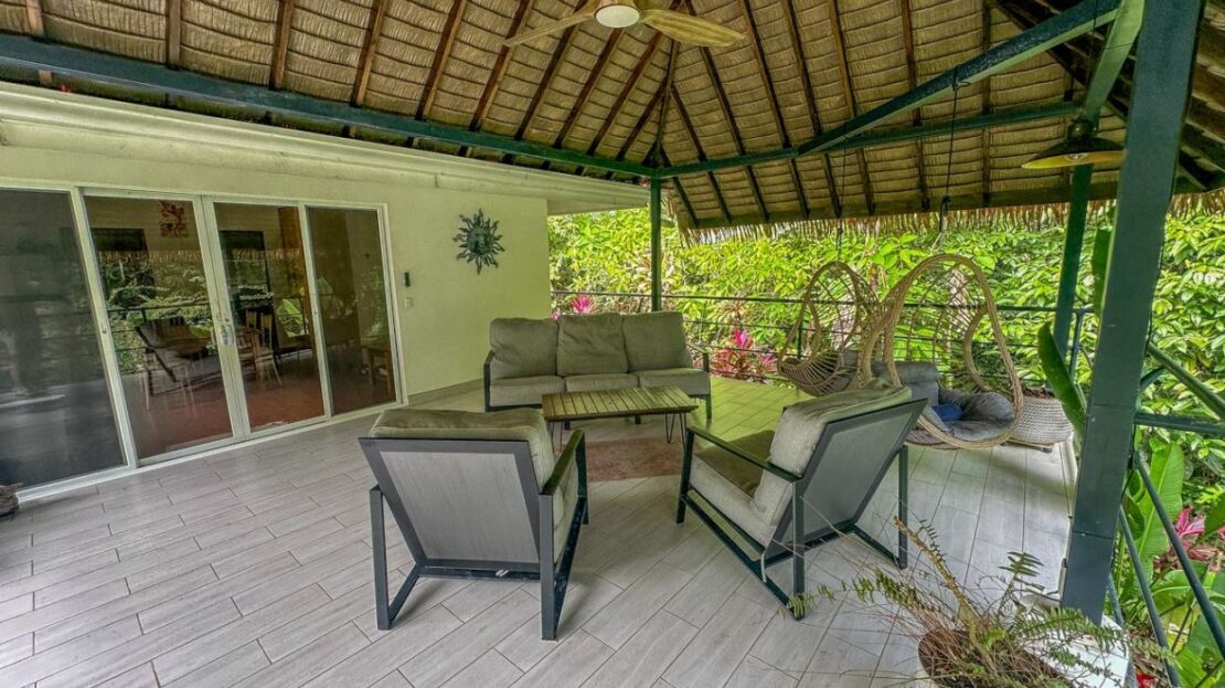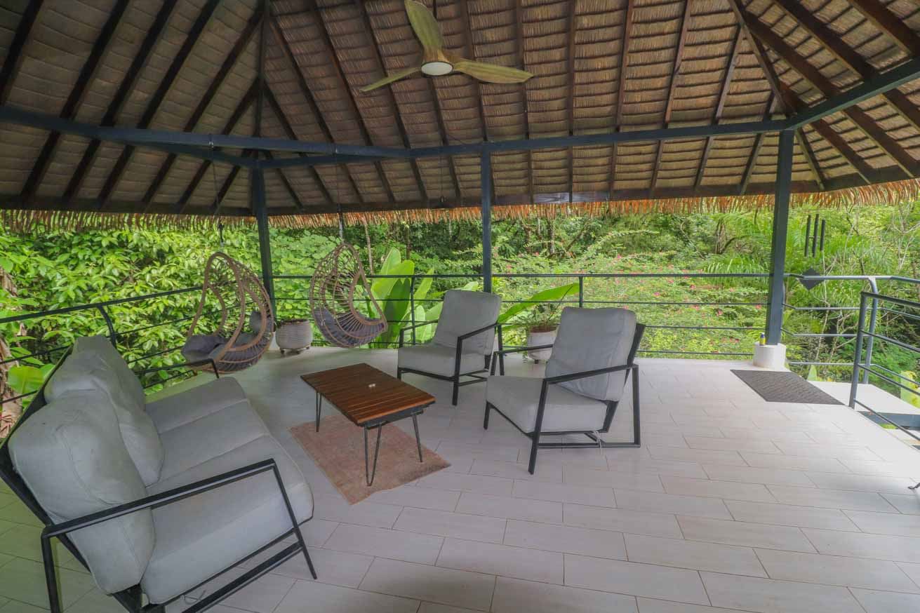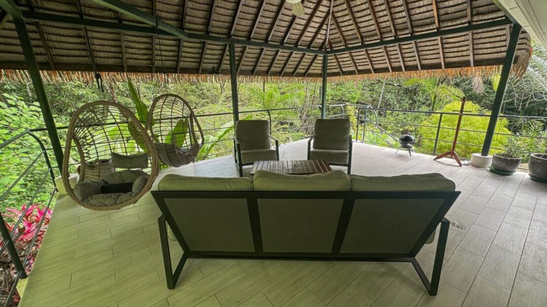 An Ojochal Jungle Retreat with a Mountain River, Rainforests, Beautiful Home & Two Income-Generating Casitas – Live in Paradise While Watching the Profits Rolllll In!*Owner Financing Available* Be the master of your own tropical rainforest domain – after parking in the covered carport you cross a beautiful arching footbridge, bordered by tropical lushness, to enter your elevated jungle-clad home. The large covered deck, attached to the side of this house, offers a panoramic view over your kingdom – sprawling jungles, mountain creek, a sunny pool, poolside cabana, and two beautiful & modern casitas which have no trouble generating plenty of income.ACCESSA secure electric gate welcomes you to the property as the winding driveway, bordered by landscaped gardens and exotic greenery, descends & meanders her way to the main house – setting the tone of TOTAL tranquility. The covered carport will keep you & your vehicle dry and shaded. And the entrance is quite grande – a beautiful, arching footbridge connects the carport to the main home. The home sits about 1.4km away from the Costanera highway. A prepared road leads over Ojochal’s new bridge and past some of the town’s finest restaurants & attractions as it twists towards the home.MAIN HOMECrossing the arching footbridge, you are met with a covered verandah which runs the length of the main house – straddling the back section of the home, this verandah leads straight to the opposite end with a huge thatched-roof patio decked out with a ceiling fan, coffee table, plentiful seating and two suspended deckchairs. Green, natural views extend in every direction. The main home features modern finishes, spacious living areas, and an open layout that flows seamlessly into the natural surroundings.The patio opens into the large kitchen / dining space – complete with a full-sized fridge, stove/oven, an extraction fan, and plenty of storage. A beautiful lumber table, lumber cabinets & lumber cupboards are complimented by warm tiles – a perfect match for the white walls and ceilings that keep the home bright & airy. The first bedroom offers bountiful glazing that looks at the greenery outside. It holds plenty of storage, shelving, and a workdesk. The second bedroom is equally rich in glazing & views – in addition to plenty of storage areas. Downstairs, the large Master Bedroom & ensuite opens directly, via large sliding patio doors, to the path which leads to the sunny pool. All rooms & areas of the home are air-conditioned.CASITASTwo modern, fully-equipped and air-conditioned casitas work tirelessly to provide your kingdom with income. The one-bedroom cabins (more like guest homes, actually) offer large covered decks, a spacious kitchen / living / dining area, a large bedroom and an expansive bathroom. The kitchen holds a full-sized fridge, stove & oven. Self-sustained, your guests will have a second home away from home – surrounded by towering jungle trees, privacy and relaxation are guaranteed.POOL & AMENITIESThe sunken pool & cabana offer total tranquility – insulated from the outside hustle and bustle, the sunny deck and refreshing waters are always inviting. The attached cabana includes water & electric connections, thatched roof and a ceiling fan – a perfect place for poolside drinks, afternoon gossip or an evening BBQ. The swimming pool hosts three sunken seats – a thoughtful addition and a great place for sipping cocktails while catching the tropical sun. This wonderful pool area is surrounded by greenery from every direction, and as it sits on a decent slope, you are looking straight into the canopies of the nearby trees.JUNGLES, CREEK, & SURROUNDSA year-round mountain creek meanders her way through the property’s beautiful rainforest surrounds. A short stroll from the homes, this creek will bless with its peace and soft burbles. A perfect hangout on a hot day, I am sure no time will be wasted in constructing a cool, natural, refreshing swim hole! Animals such as macaws, monkeys, toucans, blue-morpho butterflies, sloths, and many others reside in the encircling forests. And all around, exotic trees, shrubs, plants, flowers and orchids abound – a true paradise!LOCAL AREACafes, fine restaurants, supermarkets, hairdressers, tennis & pickle-ball, gyms & yoga studios, and many other businesses are located all around the property – many close enough for a quick stroll. 3.3km away, the famous Plaza Ventanas is tenanted by a mélange of businesses – gas station, restaurants, cafes, shops, grocers, legal & real estate offices, medical & dental clinics, tourist shops and even a small water-park! You will recognize the plaza by the giant dinosaur statues.Another few minutes and you are standing in the warm Pacific waters of Playa Ventanas with her thundering sea-caves…or in the natural, untouched Playa Tortuga where sea turtles lay their eggs. And I am mentioning just a fraction of what you can find within a 1–10 minute car trip!A small presentation of local services & attractions with approximate distances from the property:National Highway: Costanera Highway (Ruta Nacional 34) – 1.4kmBeach: Playa Tortuga – 2.3kmShopping: Plaza Ventanas – 3.3kmBeach: Playa Ventanas – 5kmTown/Shopping: Uvita – 14kmPark/Tourist Activities: Marino Ballena National Park – 16kmHospital: Tomas Casas Hospital – 17kmTown/Shopping: Palmar – 27km Property Highlights:Prime location with easy road accessModern main home with high-end finishesTwo fully furnished rental casitasLush landscaped gardens and mature jungle surroundingsRiver access and abundant wildlifeExceptional privacy and tranquilityIdeal for private living, rental income, or eco-retreat This is your chance to own a slice of paradise in one of Costa Rica’s most sought-after communities. The wonderful property is surrounded by pristine forest and bordered by a serene river, providing a peaceful and private atmosphere that feels worlds away—yet still close to th