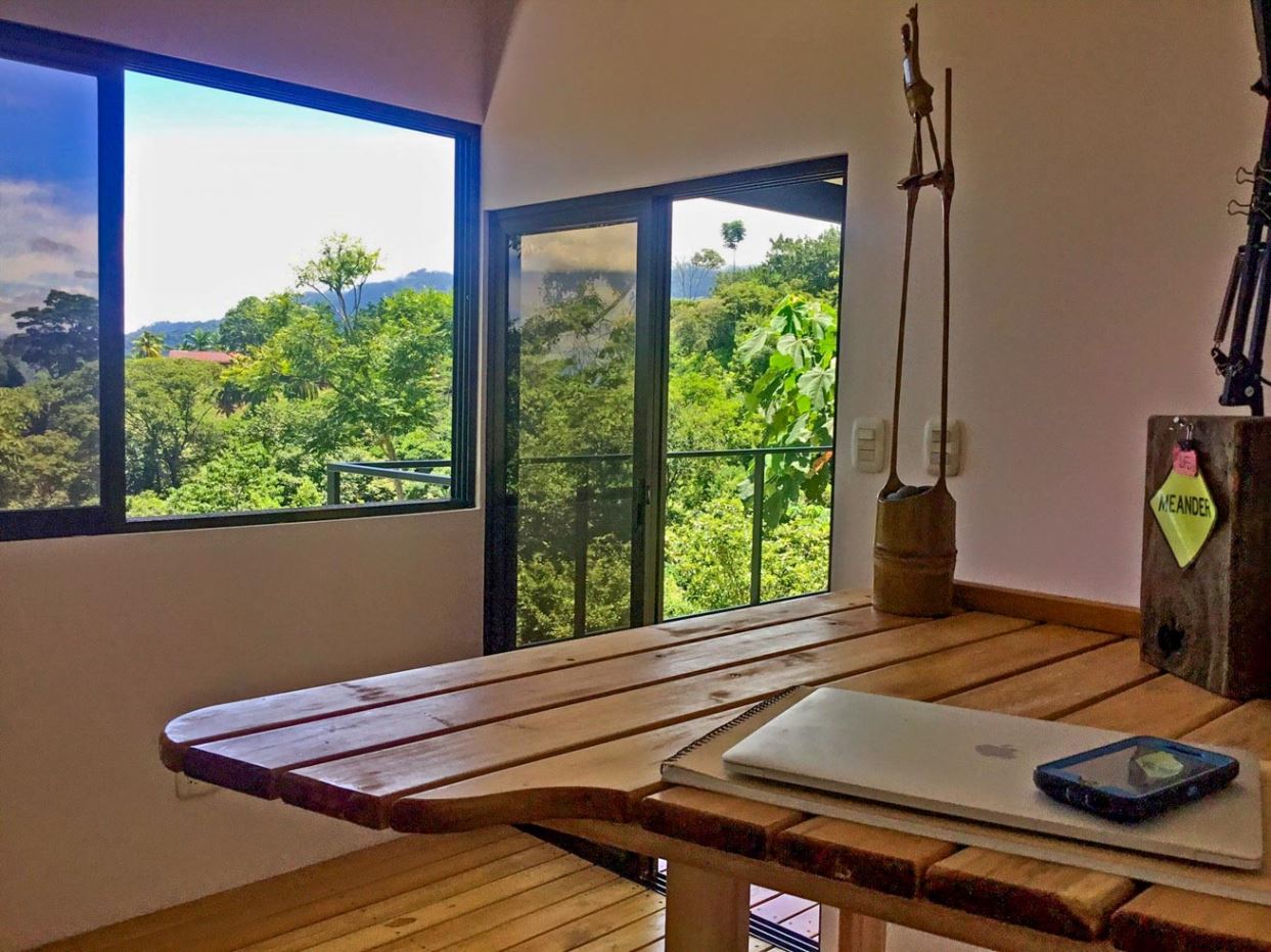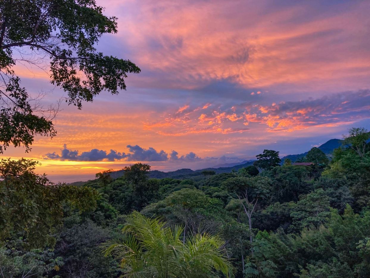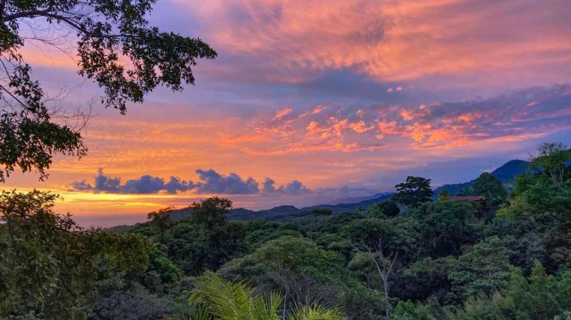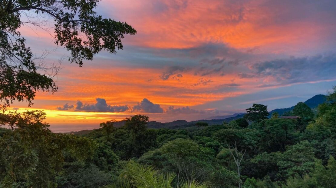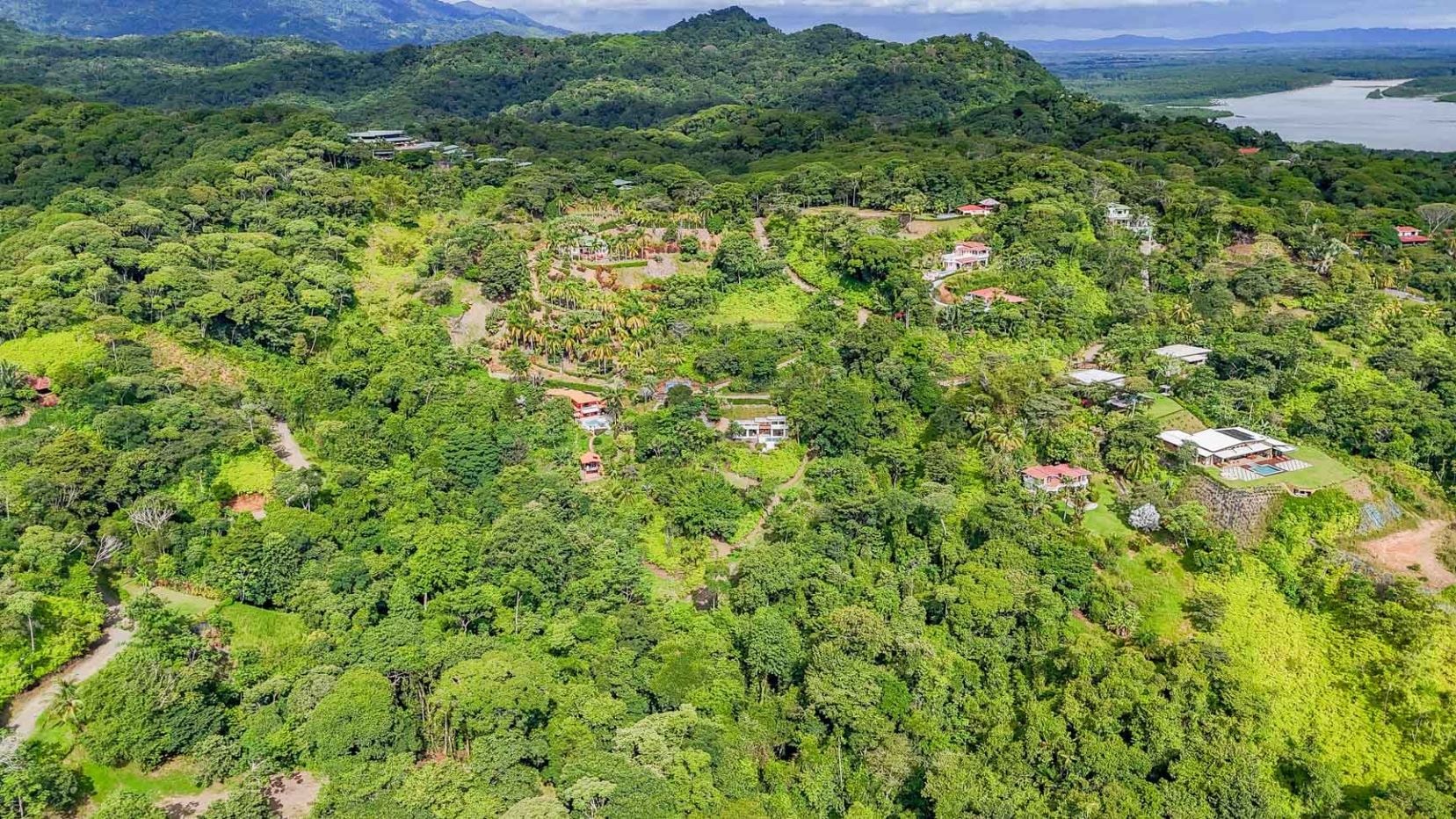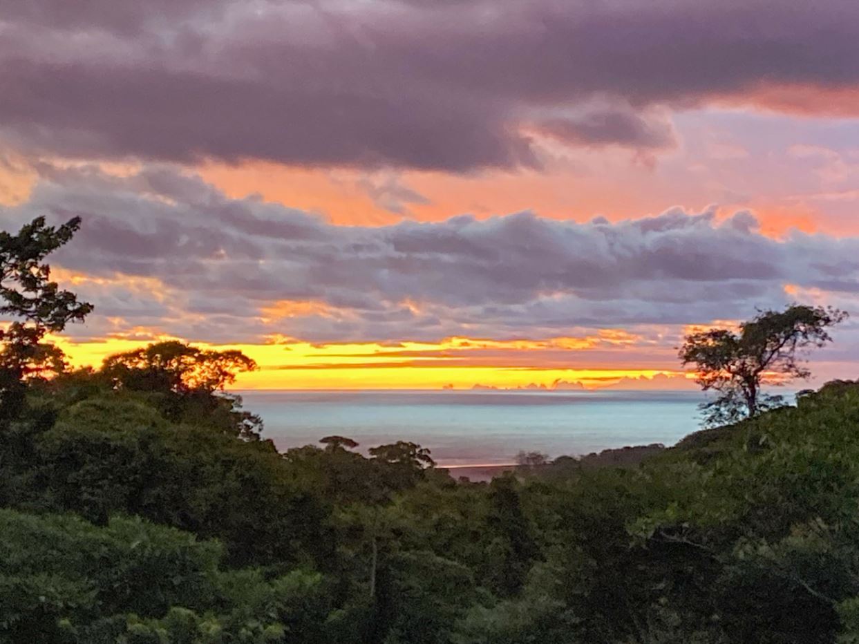Mountain views behind you, Pacific Ocean views in front, and all around the lush greenery of lowland tropical rainforests. The coastal mountains climb to over 1,000 meters above sea level and, during the green season, their nearly vertical slopes are covered in numerous waterfalls. Some of the waterfalls fall hundreds of meters and later feed the local rivers including the one gracing the property. As your gaze shifts to the left, you glimpse these mountains descend towards the Pacific Ocean, the cloud-forest covered peaks giving way to rolling jungle hills and finally the ocean waters. All around are the green and thriving canopies of Costa Rican rainforests.