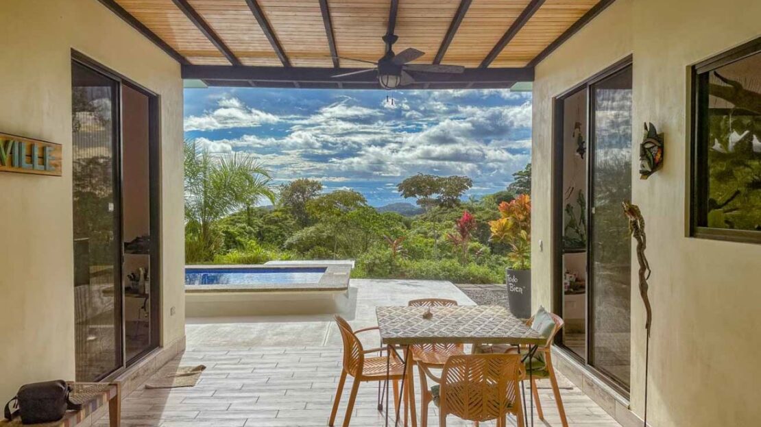 A Bright & Airy Ocean + Mountain View 2-Bedroom Gem in Ojochal’s Perezoso Road –with a Pool, Private River & Several Building Sites!