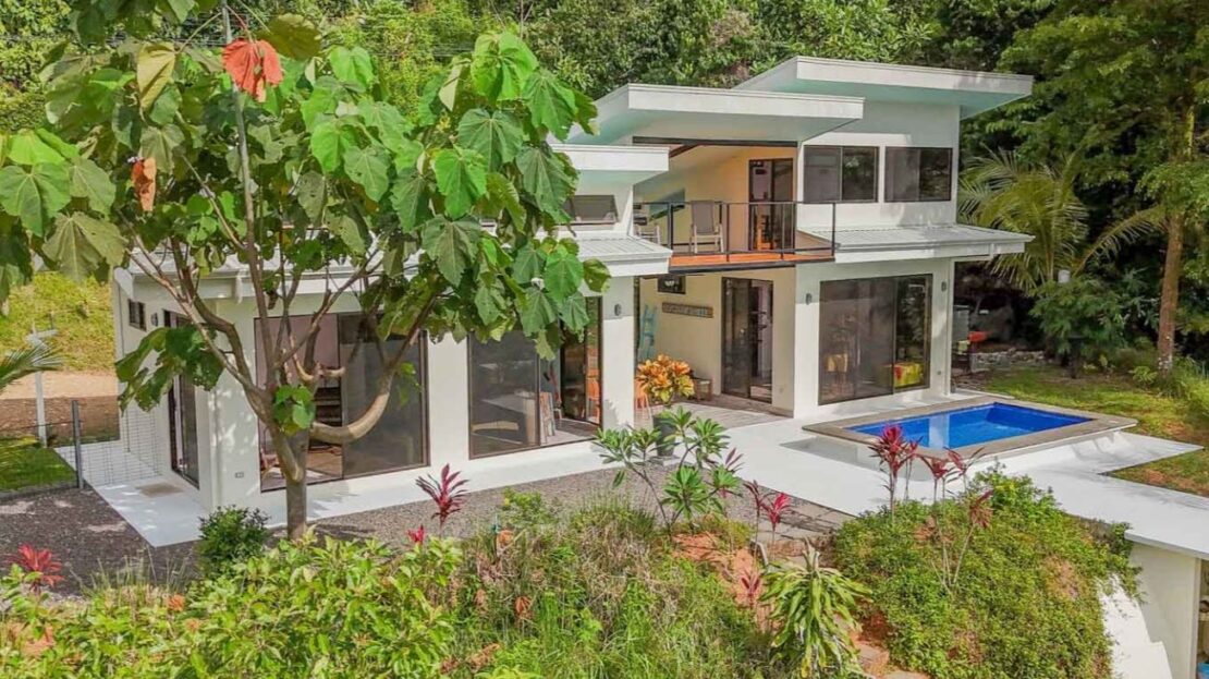 Built in 2022, this modern house offers seamless outdoor living with breathtaking ocean, sunset, and mountain views. Relax in the outdoor lounge or by the swimming pool as you soak in the warm Pacific breezes and watch the sun dip behind the horizon – the howler monkeys and toucans noisily sending off another beautiful tropical day.