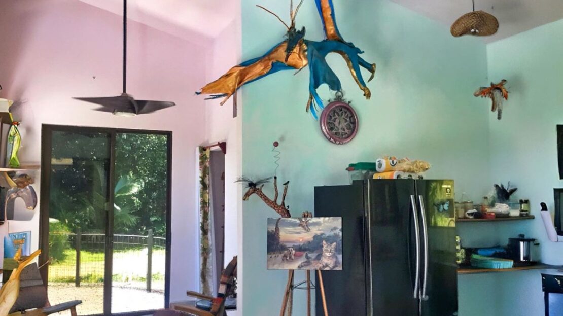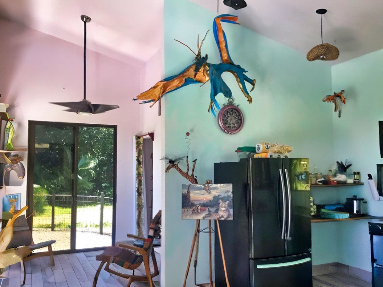 The entire house is decorated with original, beautiful & unique artwork, creating a surreal vibe that fits perfectly with the untamed wilds of the surrounding rainforests and tropical nature. It is like a living museum, with the natural and piercing sounds of the topical jungles giving life to the creature creations of the home’s interior.