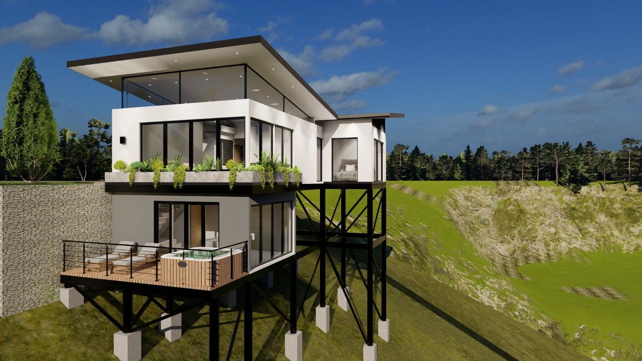 One of the last lots left in Hacienda Atenas is being sold along with the following modern designed home renderings. The setting is in one of Atenas’ most exclusive commiunities in the canopy of primary forest located less than 10 minutes from Atenas Center.