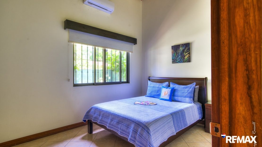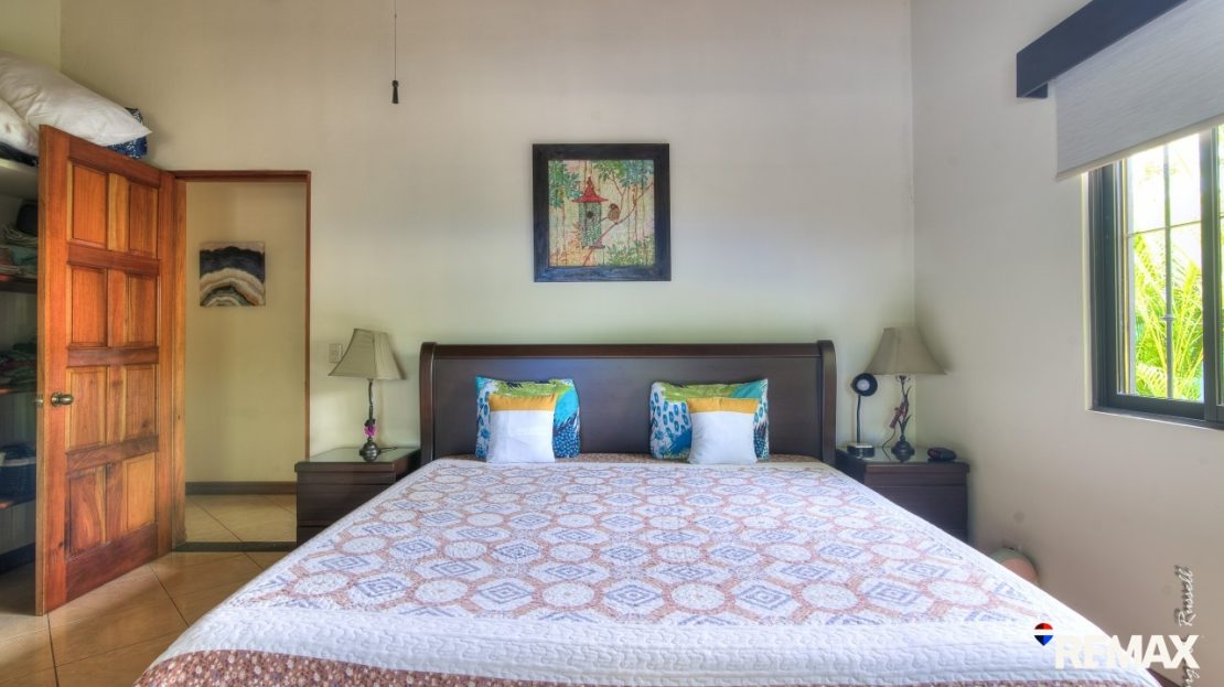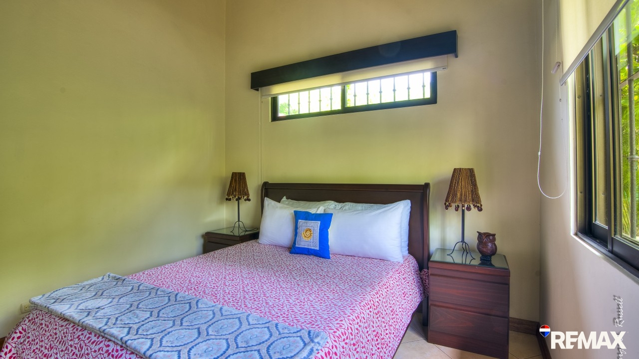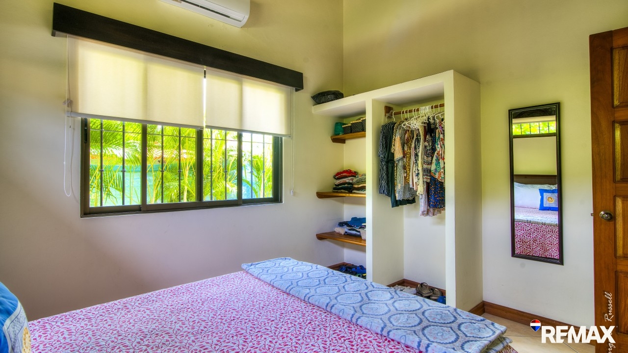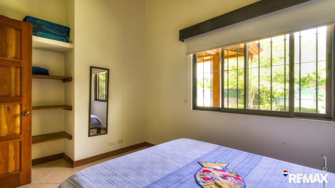Située sur un terrain spacieux, la propriété dispose d’un **grand jardin arrière avec piscine**, une **douche extérieure et une salle de bain près de la piscine**, ainsi qu’un **patio verdoyant idéal pour recevoir ou se détendre sous le soleil tropical**. Les **plafonds hauts**, les **poutres apparentes** et les finitions en **teck rainuré** apportent une ambiance à la fois ouverte, chaleureuse et élégante, imprégnée du charme costaricien.