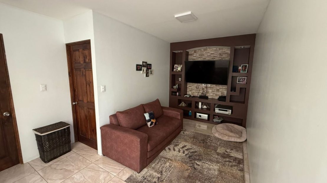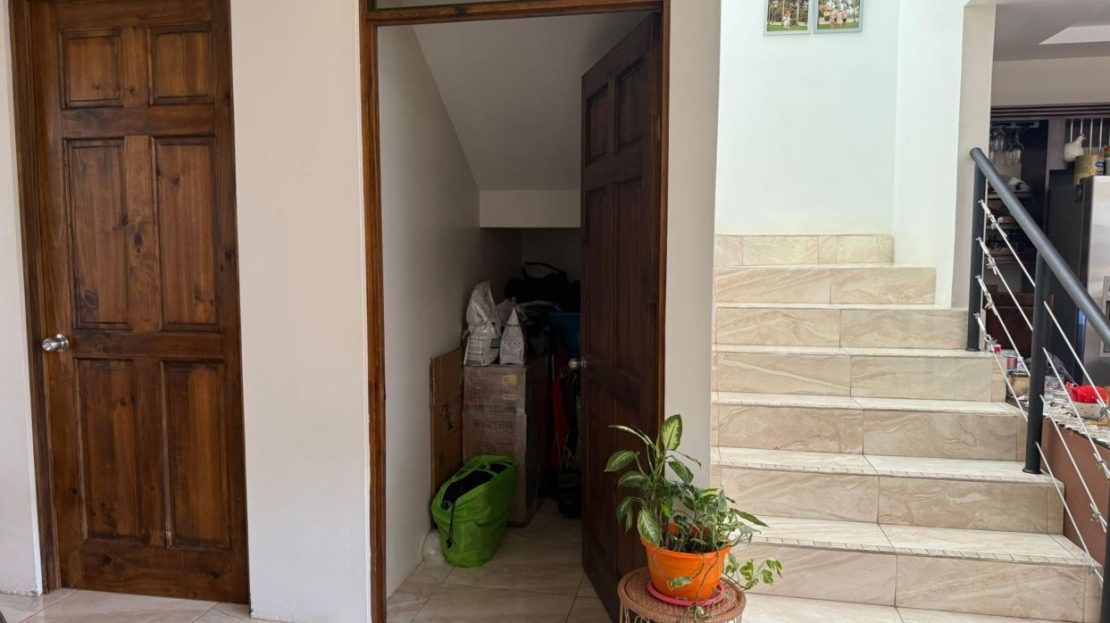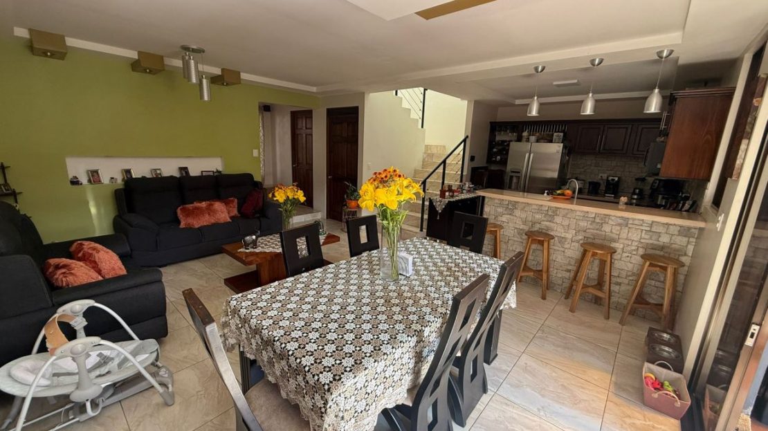 En la planta baja tienen, sala, comedor, y cocina integrada, con 2 pequeñas bodegas debajo de las gradas, medio baño, cuarto de pilas, una habitación y una terraza.