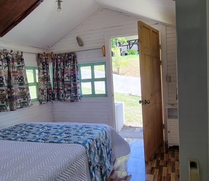 Construcción en concreto, con 6 camarotes de pino tratado (individuales), baño, sanitario y aire acondicionado.Tamaño: 5.78 m x 3.97 m = 22.95 m²