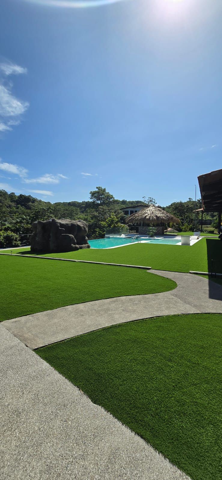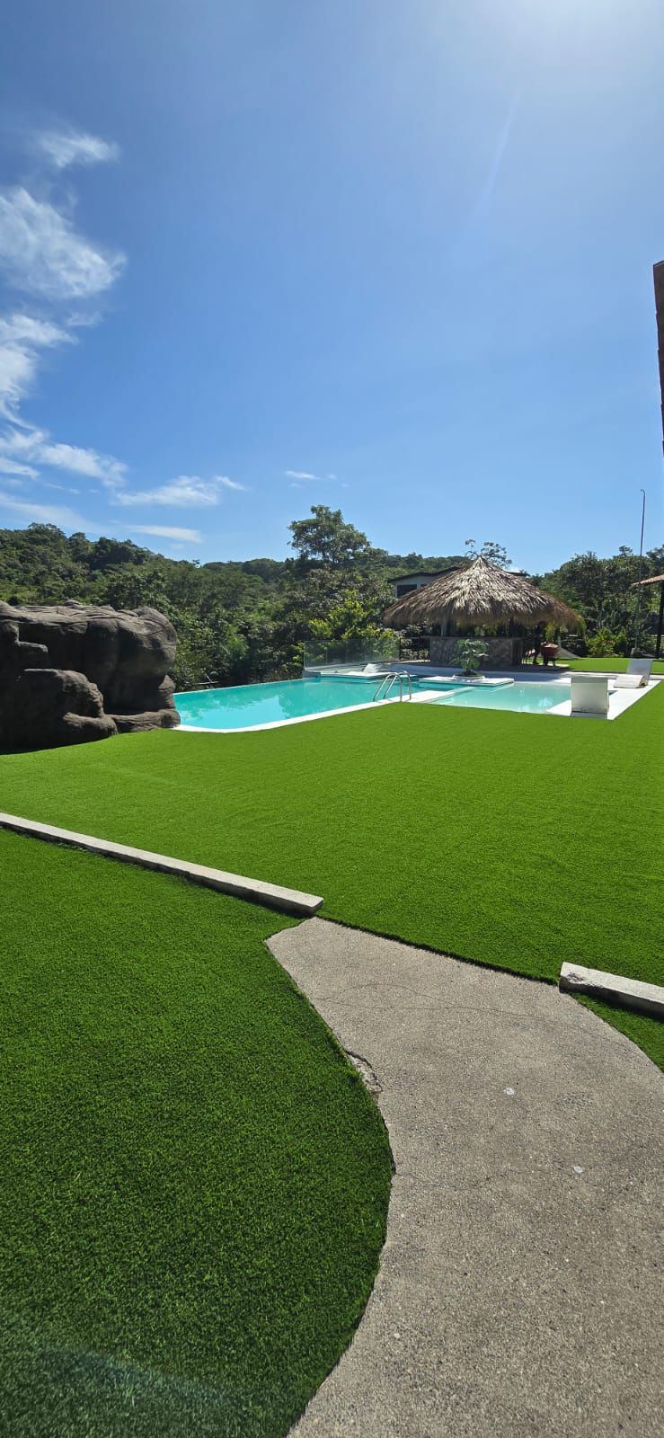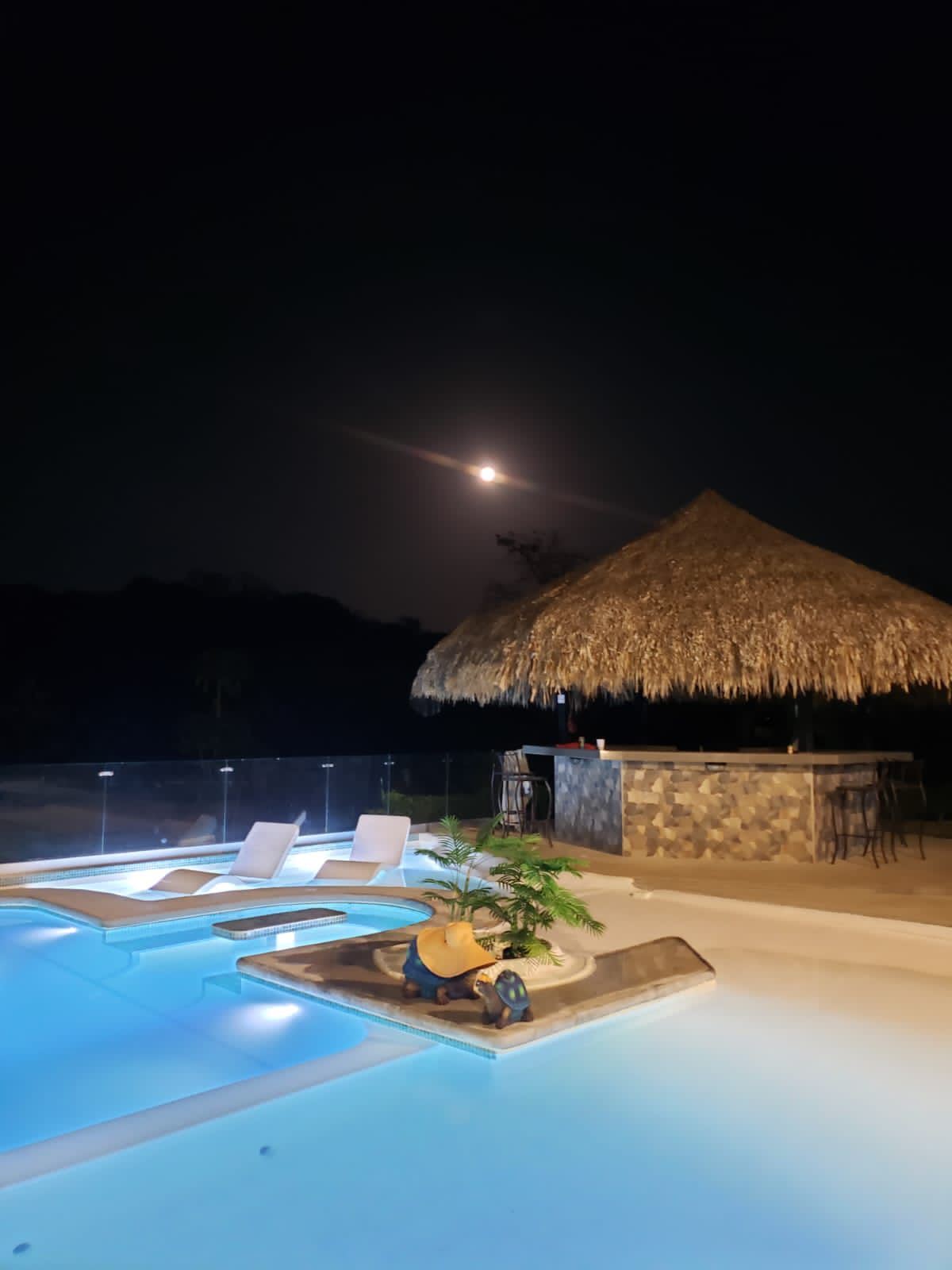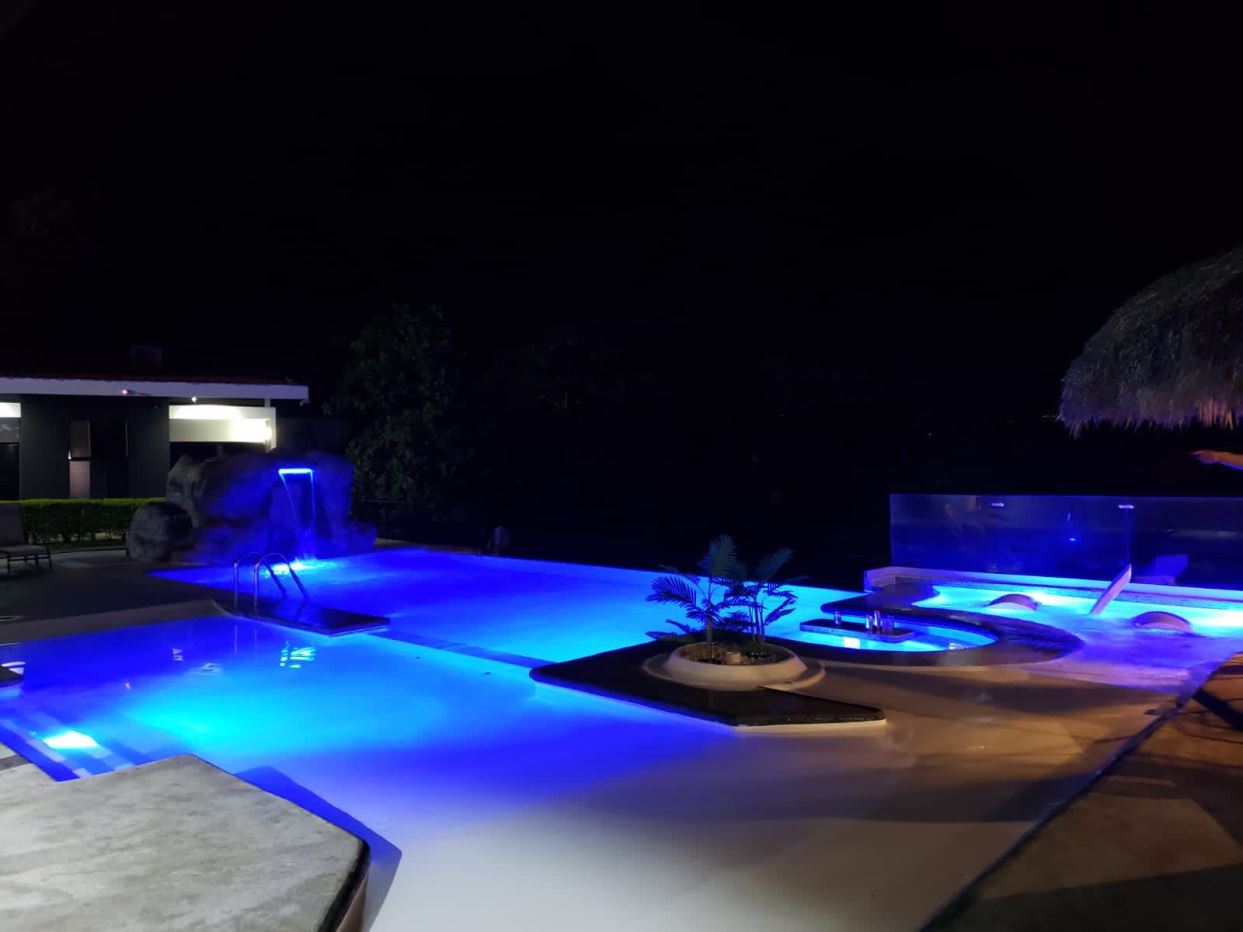 Capacidad de 45,000 litros, estructura en concreto, vidrio blindado de 2” para soportar presión de agua, cascada de piedra, puente de concreto.El proyecto está al 80% completado. Diseñado para mantener peces.