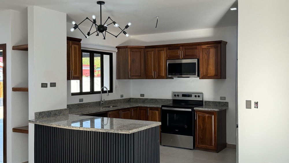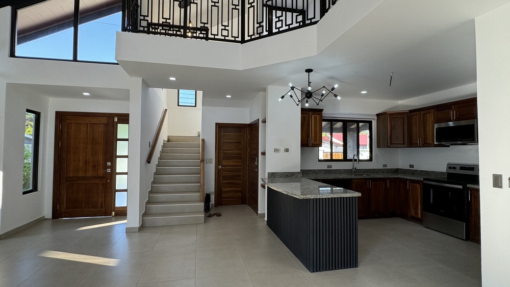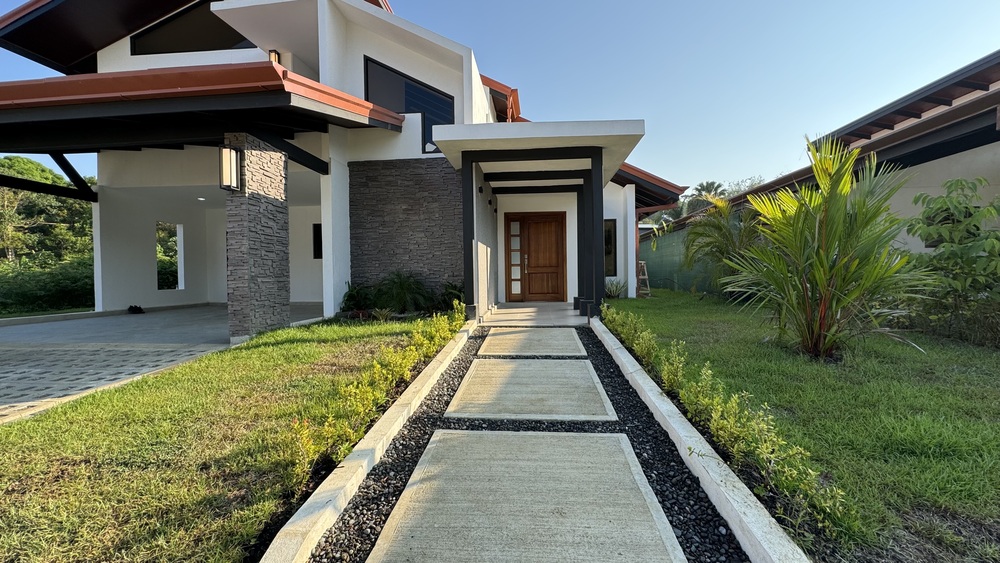 I would like to show you this wonderful opportunity located in Bahia, less than 1 kilometer from Uvita and with access to all necessary amenities. It features a modern two-story design with 3 bedrooms, 3 bathrooms, and a pool, as well as parking for 2 cars under cover. This home is in its final construction phase with finishing touches being made to the pool and garden. It is offered fully furnished, boasting high ceilings, lovely pendant lights, a spacious kitchen with high-end appliances, local wood cabinets, and granite countertops, all ready for your family dinners and celebrations.