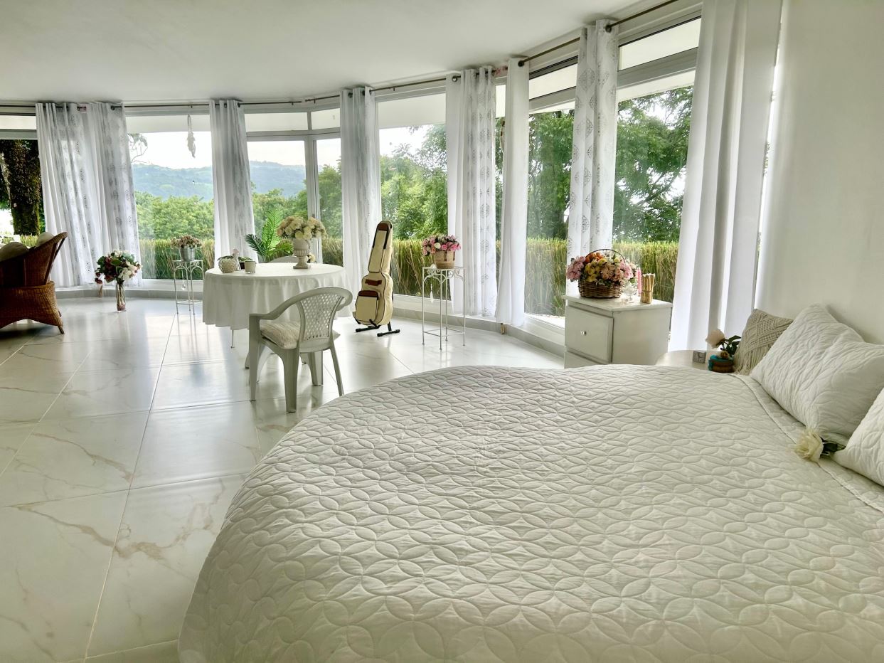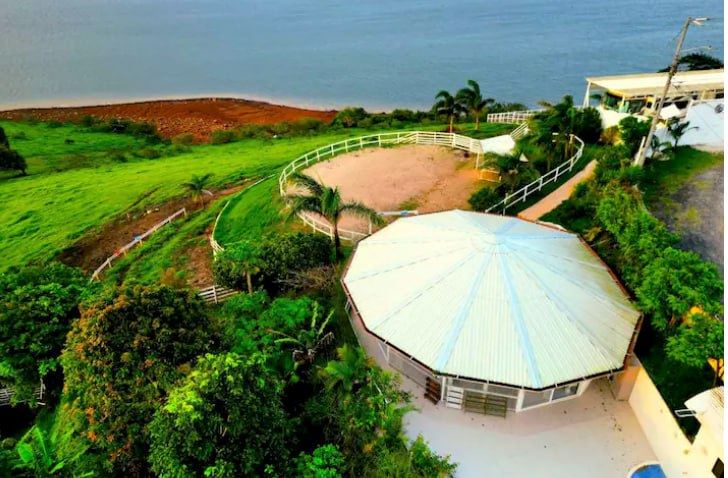 Paradise Island Ranch offers world-class equestrian facilities alongside exceptional event spaces. A riding/training arena, and rolling pastures provide the perfect setting for keeping your own horses or enjoying guided rides accross the property’s breathtaking landscape. The property’s round glass event hall (50 guests), elevated viewing platform (70 guests), and outdoor terrace (15 guests) create an unforgettable setting for weddings, retreats, and private celebrations, all with panoramic views of the lake and volcanoes.