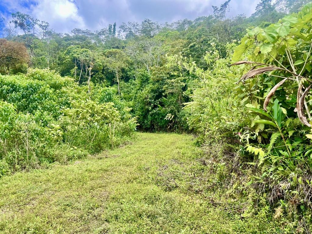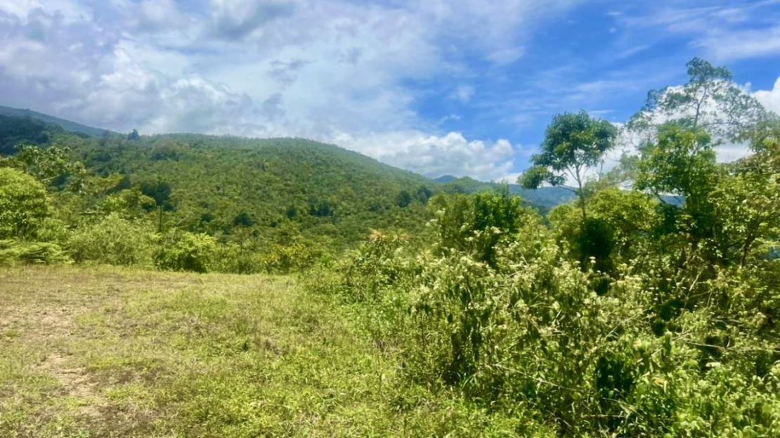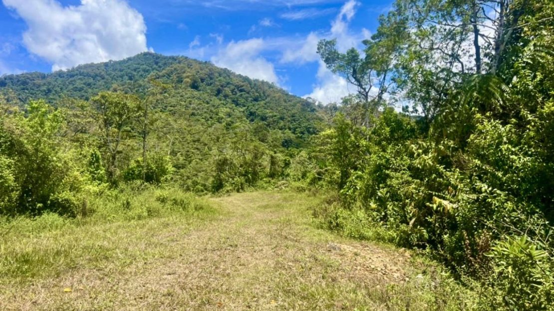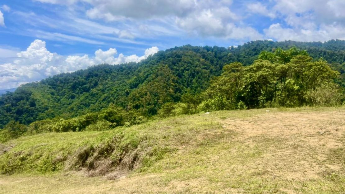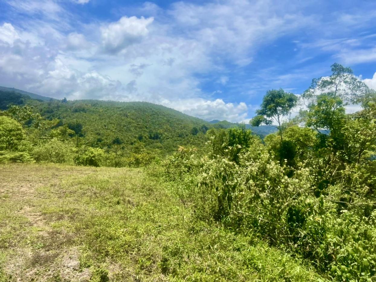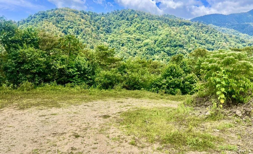 Propiedad mayormente plana rodeada de montañas y bosque nuboso.