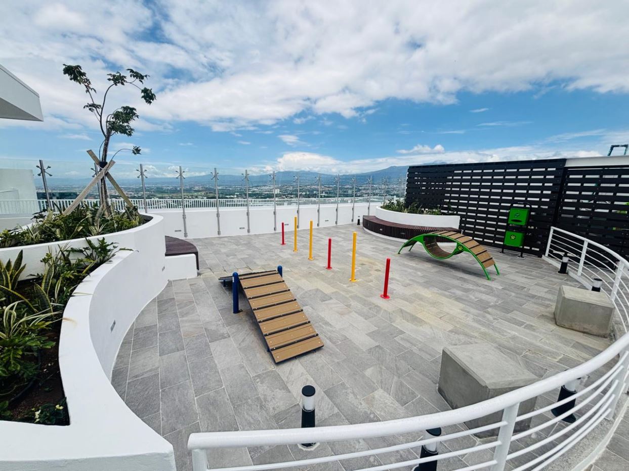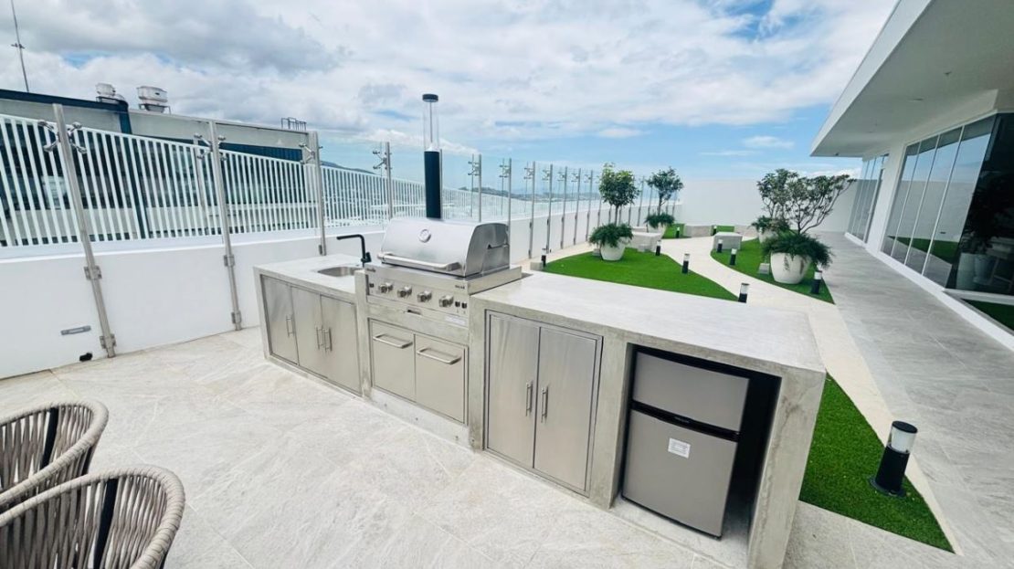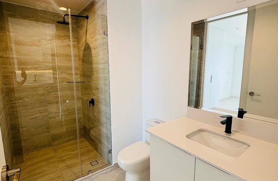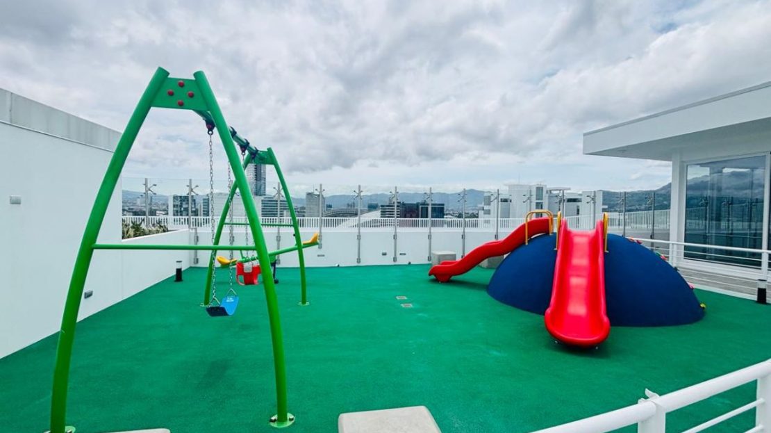 Amenidades del condominio: gimnasio, spa, cine, coworking, salas de reuniones, rooftop con vista panorámica, fire pit, sky bar, áreas BBQ, juegos infantiles, parque y dog wash para mascotas, lavandería común.