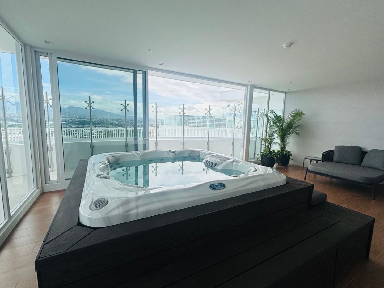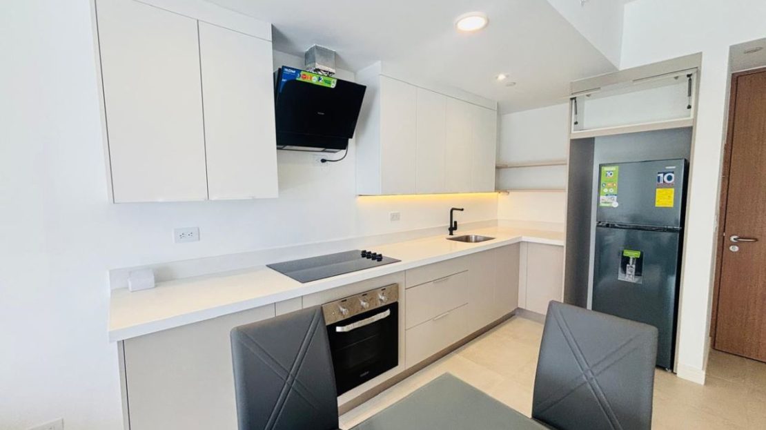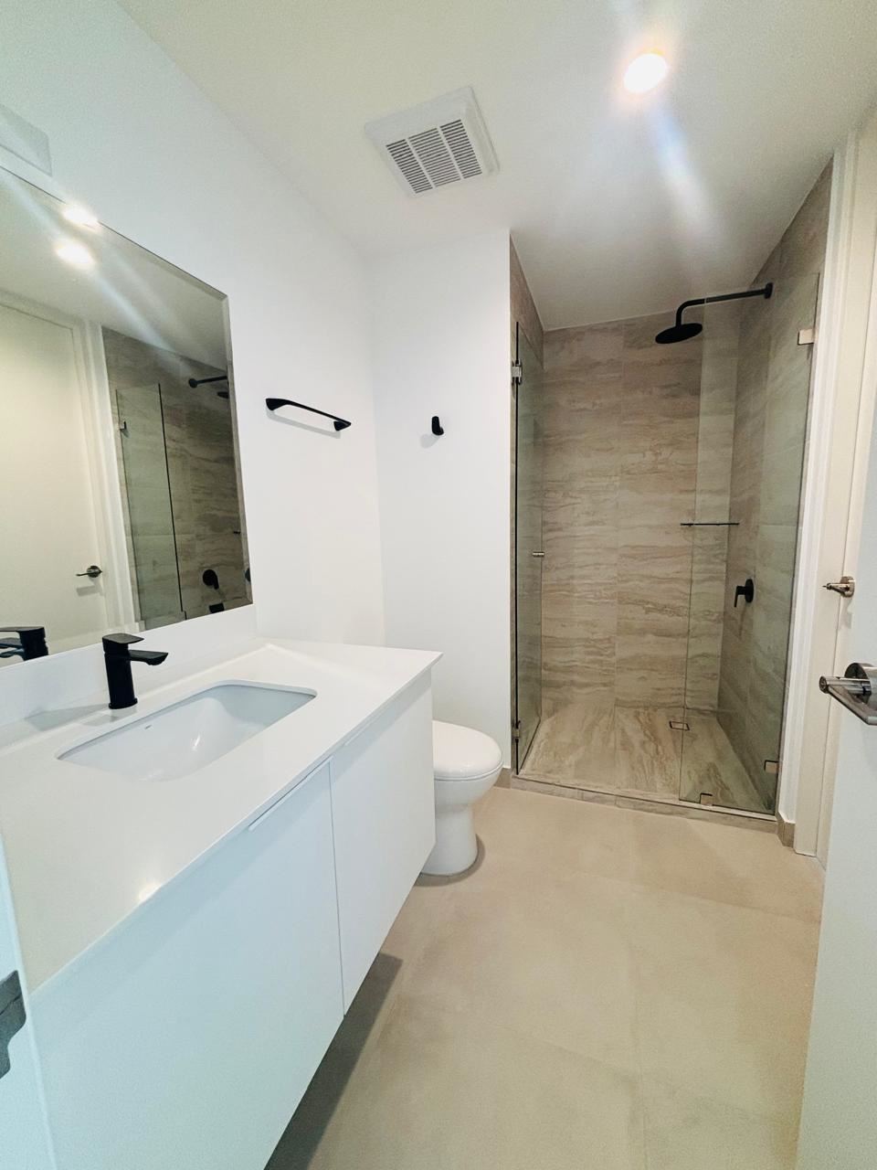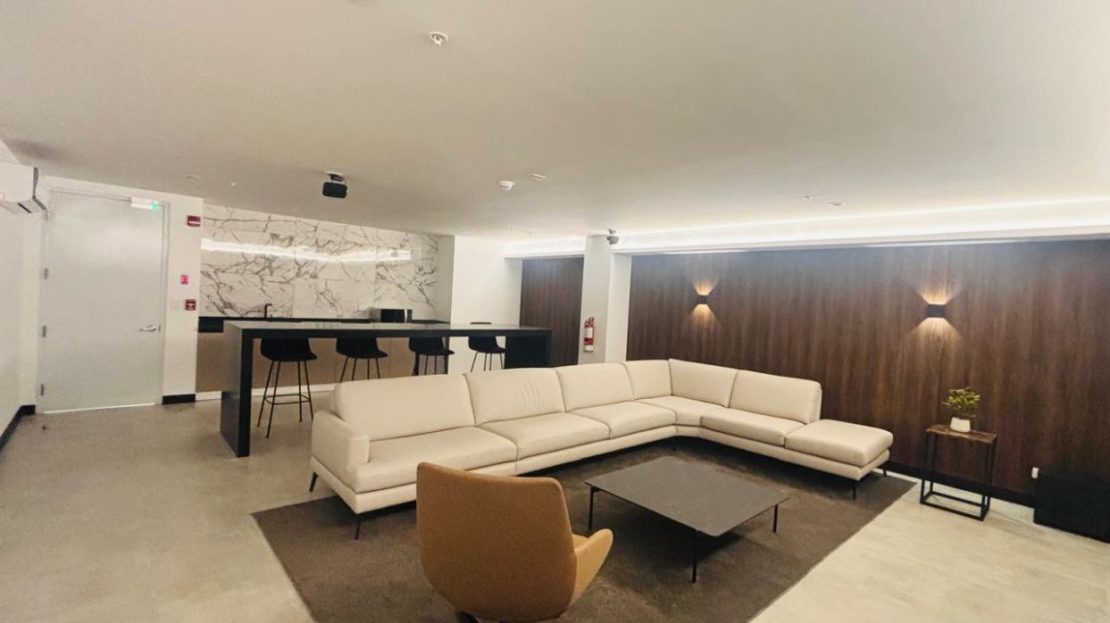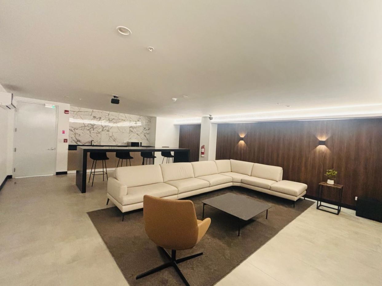 Amenidades del condominio: gimnasio, spa, cine, coworking, salas de reuniones, rooftop con vista panorámica, fire pit, sky bar, áreas BBQ, juegos infantiles, parque y dog wash para mascotas, lavandería común.