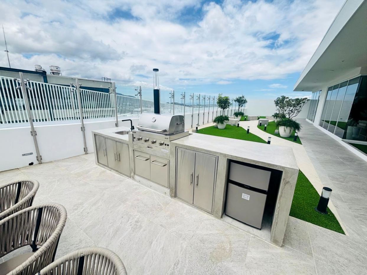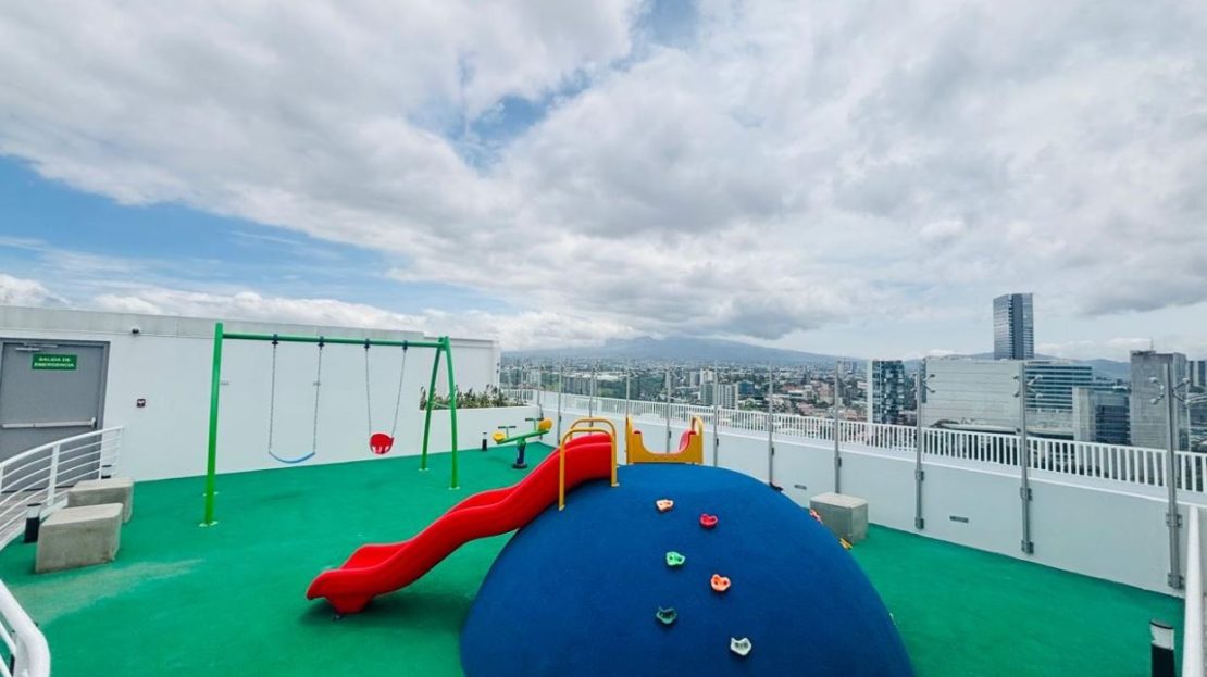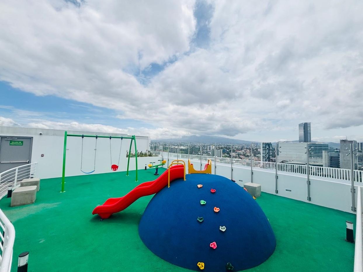 Amenidades de lujo:Gimnasio, spa, cine, coworking, salas de reuniones, rooftop con vista panorámica, sky bar, fire pit, áreas BBQ, parque infantil, dog wash, áreas verdes y lavandería común.
