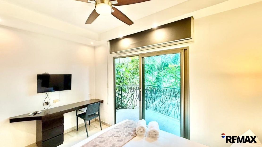 Peaceful & Private Condo in Jaco Beach – Experience comfort, privacy, and effortless ownership in this beautiful 1-bedroom, ground-level condo at Oceano Boutique Hotel & Gallery, located just three blocks from the beach in the heart of Jacó. This residence is tucked away in one of the most private corners of the community, offering peaceful views toward an undeveloped lot—giving you a quiet and intimate atmosphere while still enjoying full access to Oceano’s premium amenities.