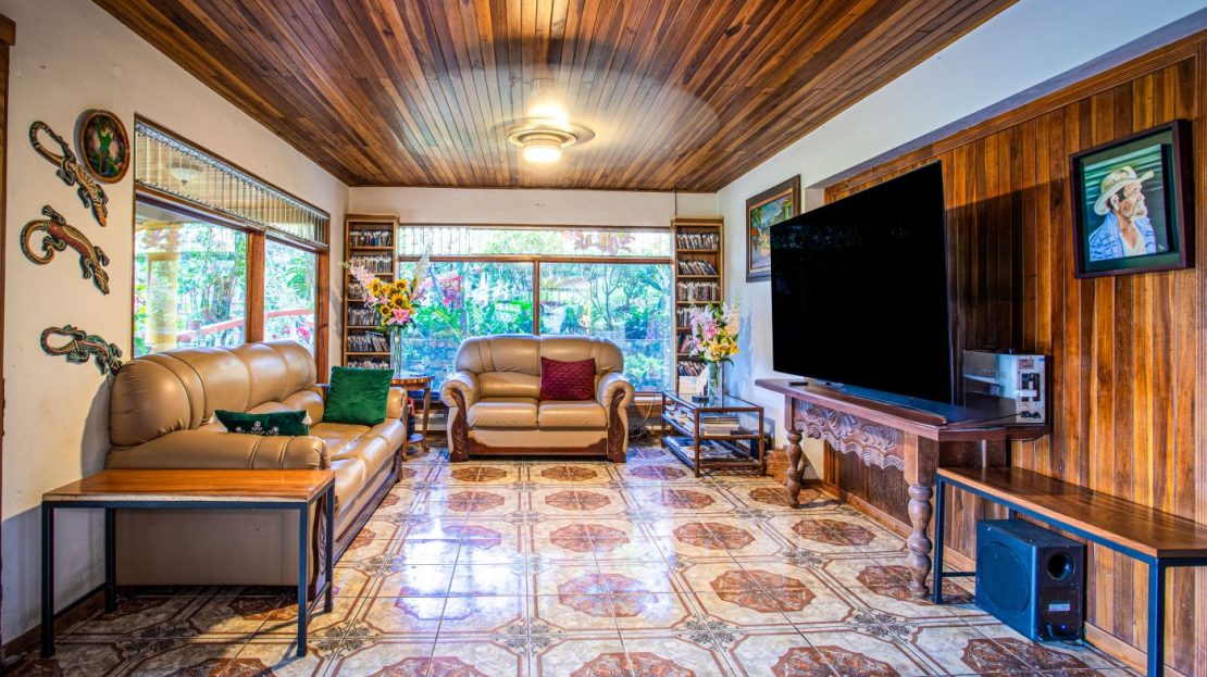 Casa de 2 niveles con 6 habitaciones, 5.5 baños y oficina en un hermoso entorno de 1 acre de terreno con piscina, cocina al aire libre, áreas de almacenamiento, hermosas vistas y cientos de plantas y flores. Totalmente cercada con cámara de seguridad, además de controles de video y audio en la puerta principal. Fibra óptica de 300 MBS para Internet rápido, miles de canales de televisión, incluidos todos los canales de EE. UU.