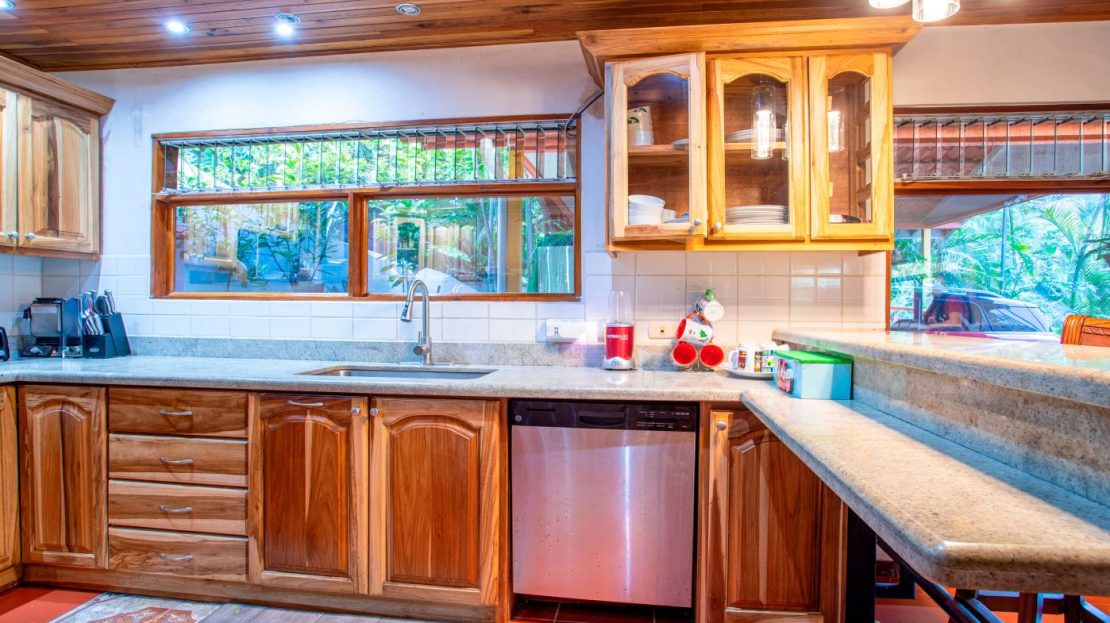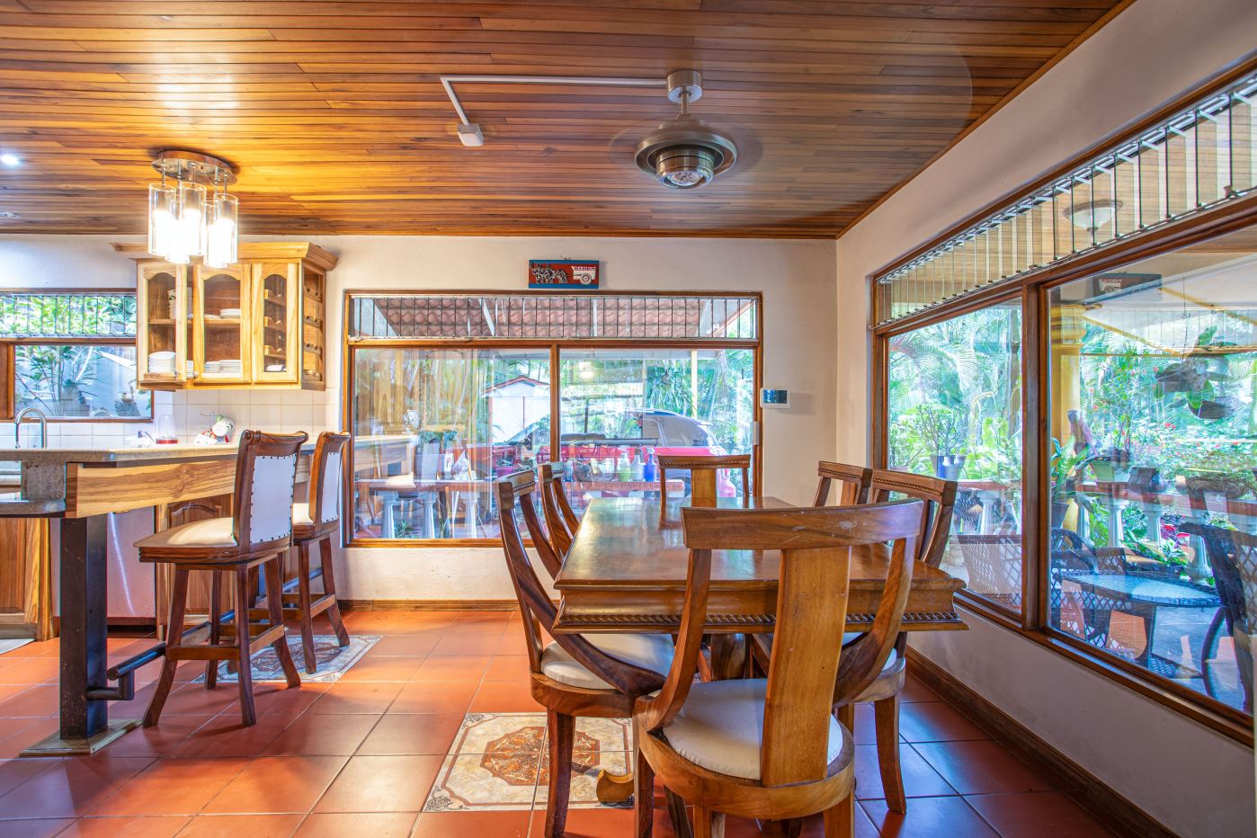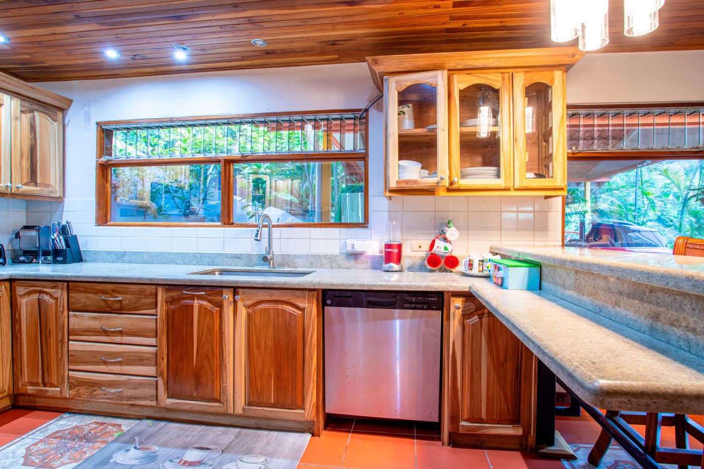 El piso principal tiene la sala de estar, el dormitorio n. ° 1 con baño completo privado, el lavadero, el comedor formal, una gran cocina remodelada con acabado de madera artesanal y cuenta con 2 despensas. La cocina tiene hermosos gabinetes hechos de madera de laurel, mucho espacio con lavavajillas, triturador de basura, estufa y horno a gas, refrigerador grande. Hay un baño de visitas en el pasillo. La sala de estar tiene un televisor grande, estanterías y hermosas vistas. El amplio y acogedor porche delantero tiene agradables brisas suaves y excelentes vistas. Los jardines tienen muchos árboles frutales, flores y plantas en toda la propiedad. Hay un cobertizo adicional y mucho espacio para estacionar.La secadora, la estufa, el horno y el agua caliente son de propano.