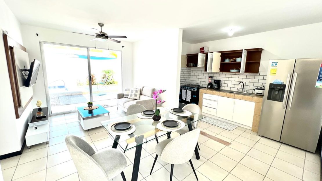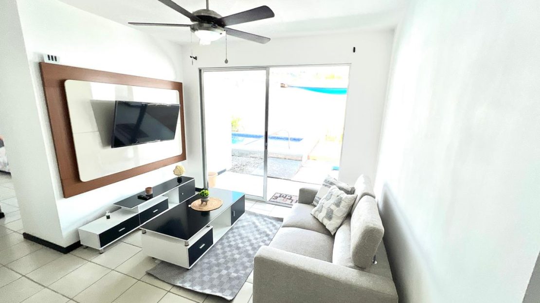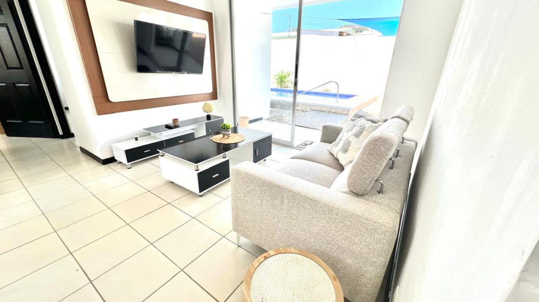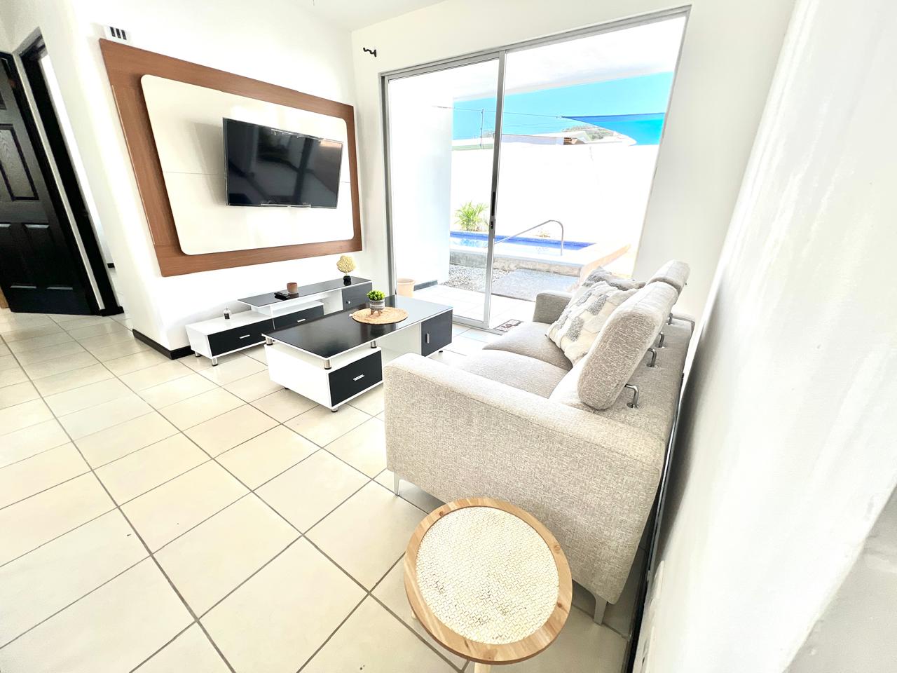 Esta propiedad cuenta con tres amplias habitaciones, dos baños, piscina privada y parqueo para dos vehículos, está lista para ser disfrutada de inmediato.