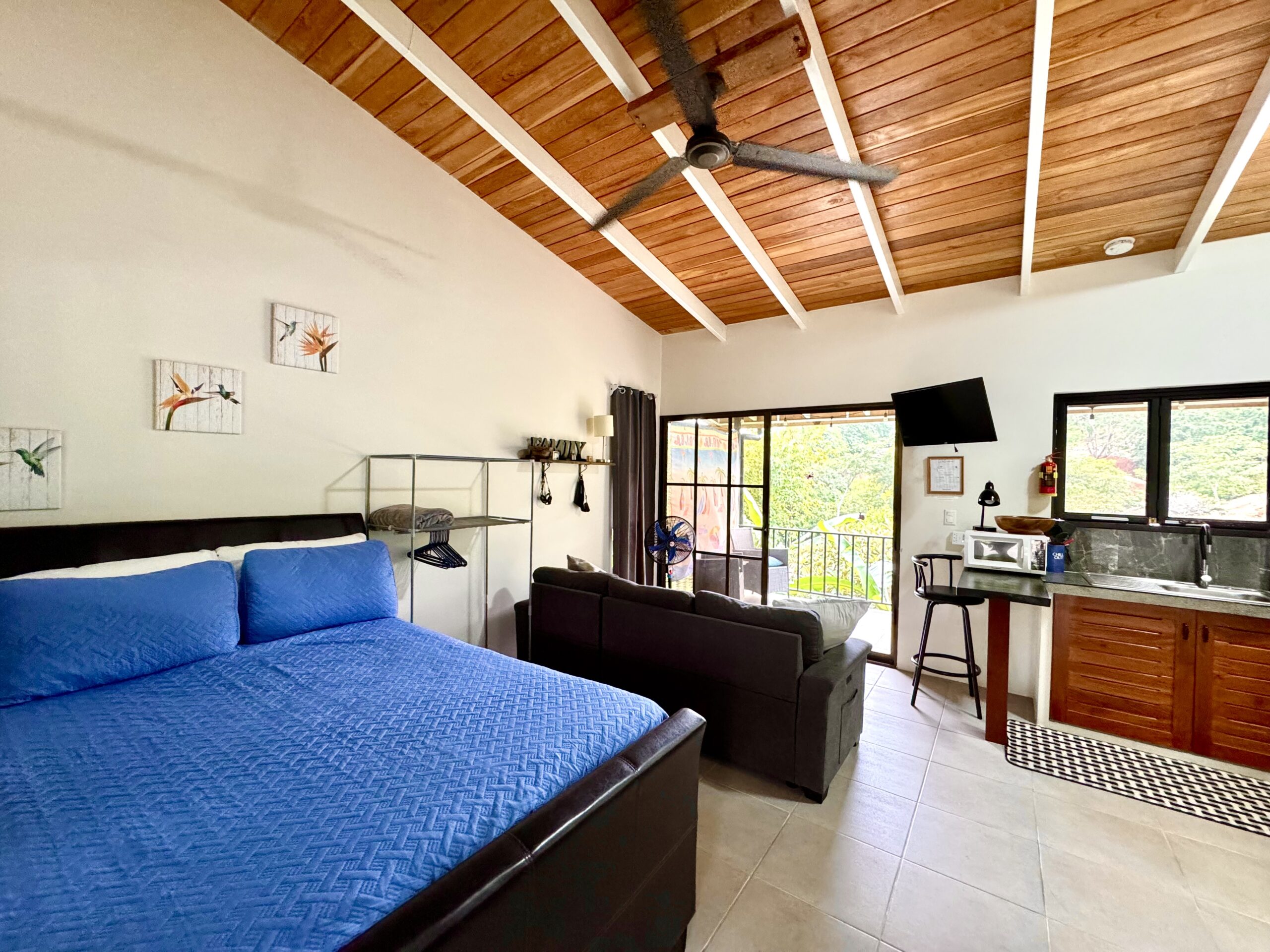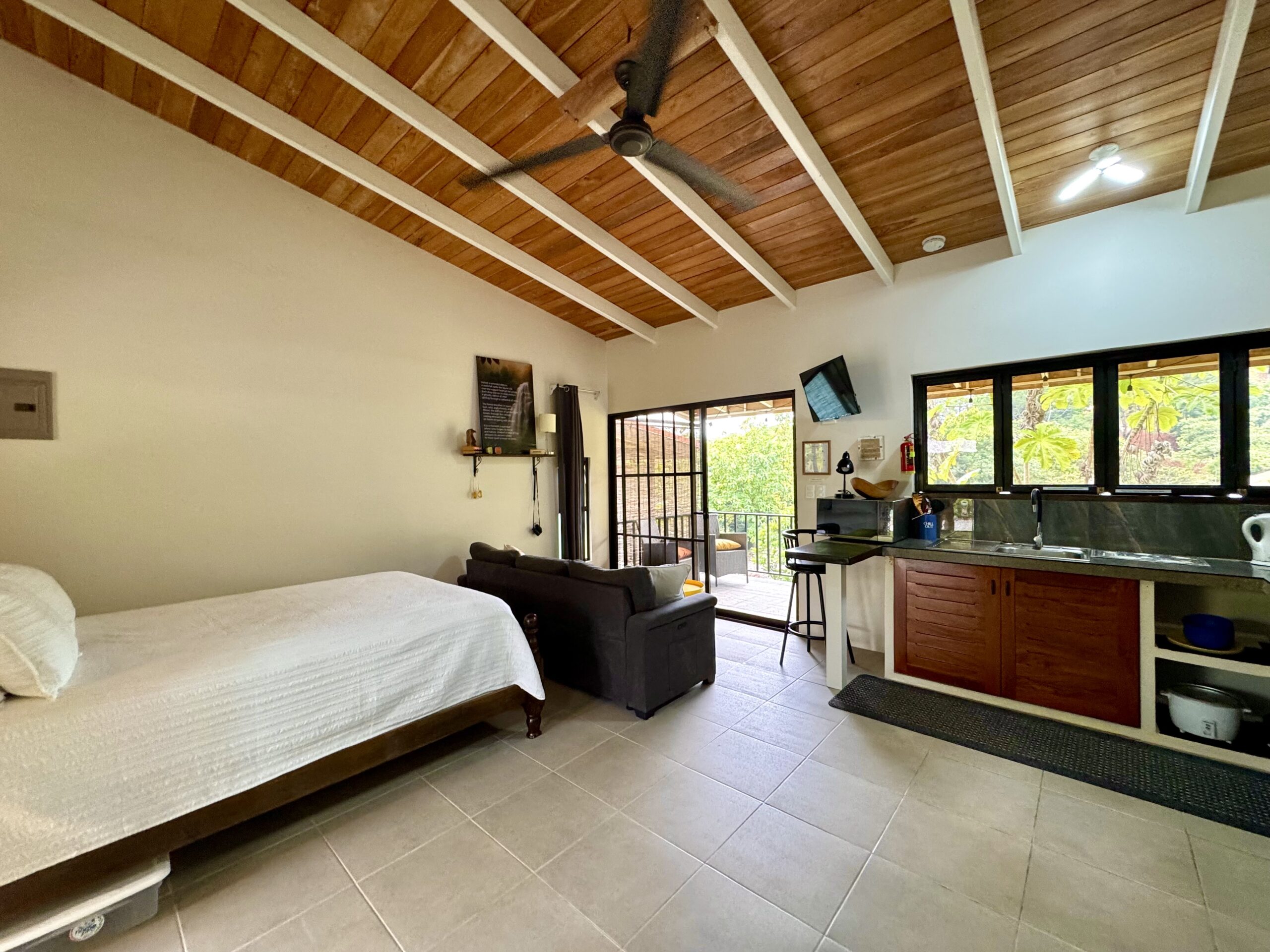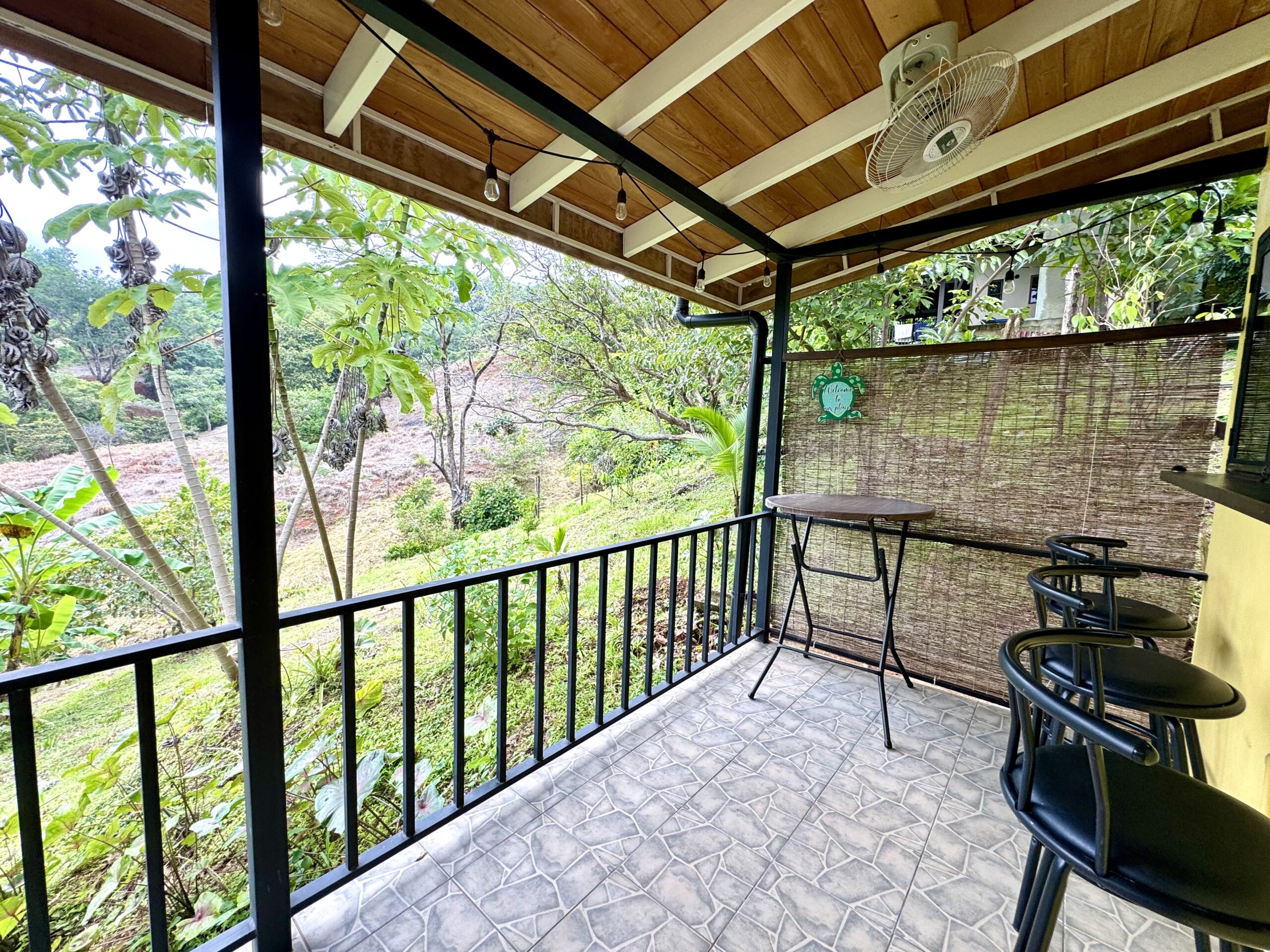 • Private Outdoor Spaces: Covered terrace and balcony, often visited by hummingbirds, butterflies, and even scarlet macaws.