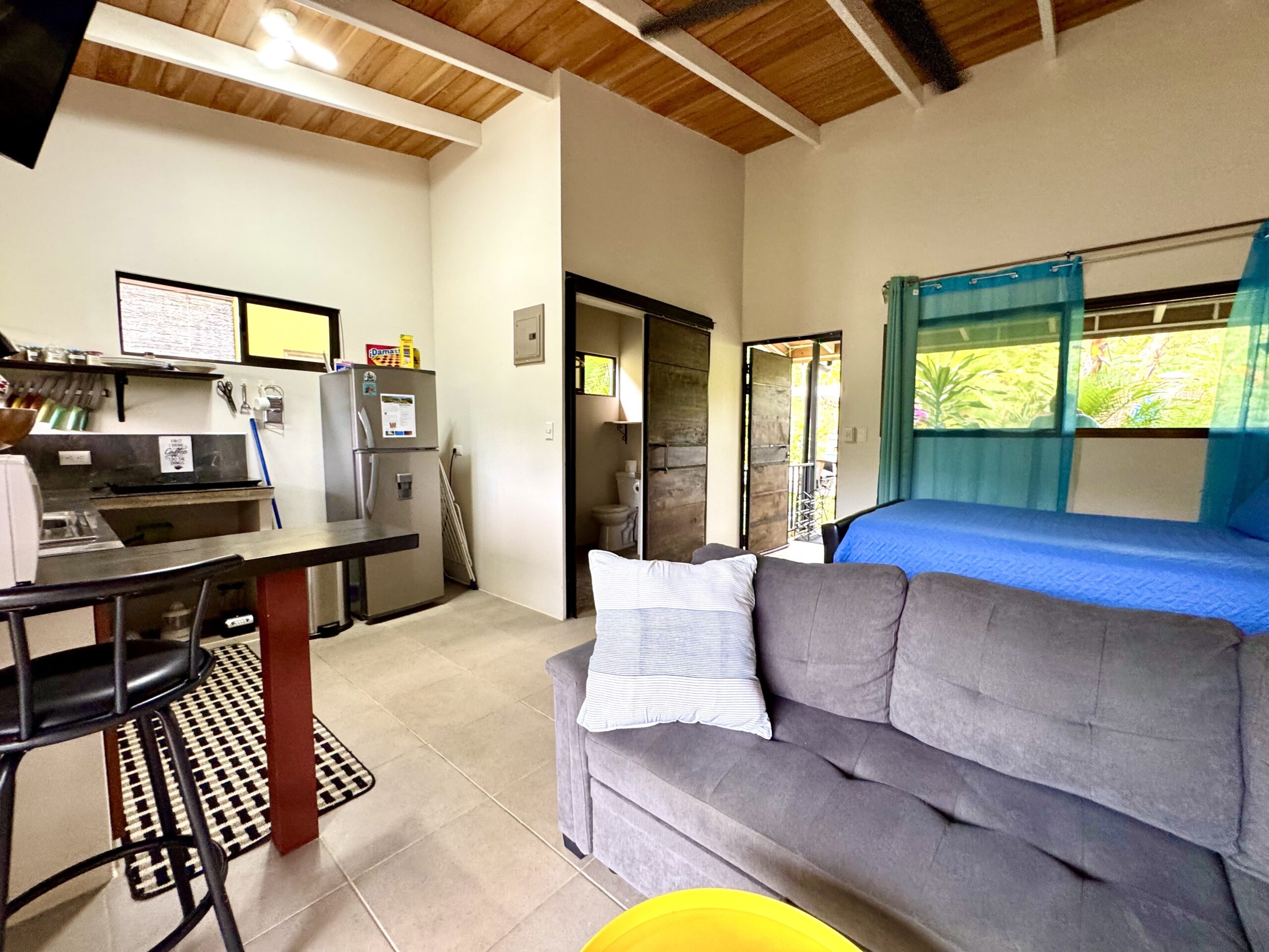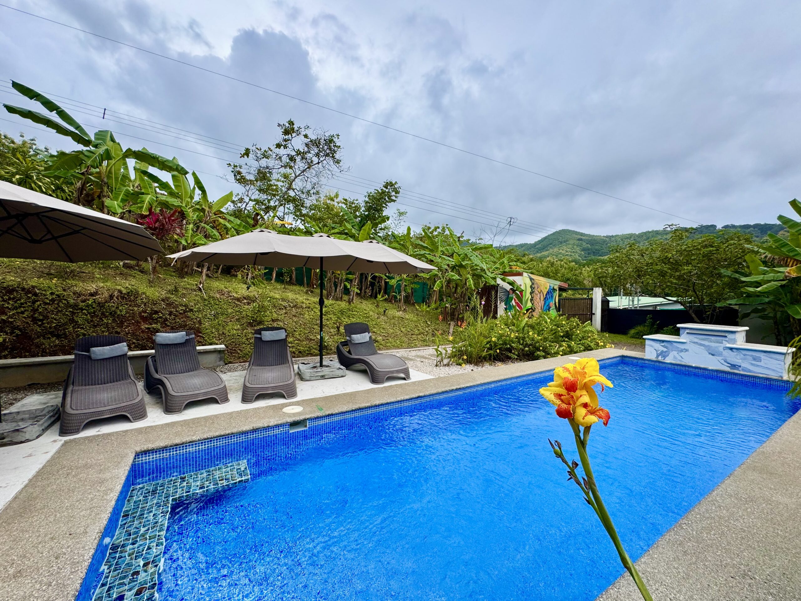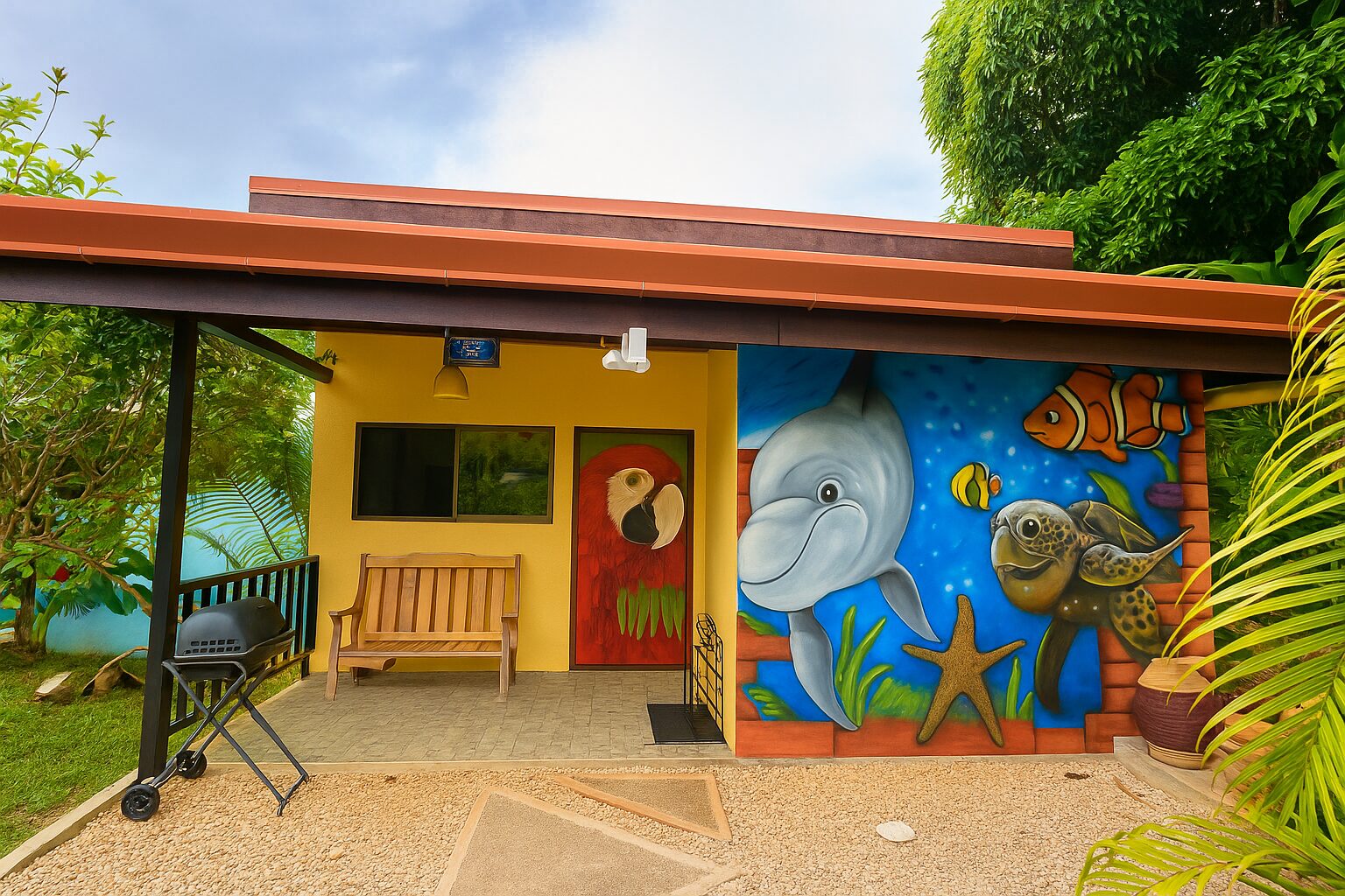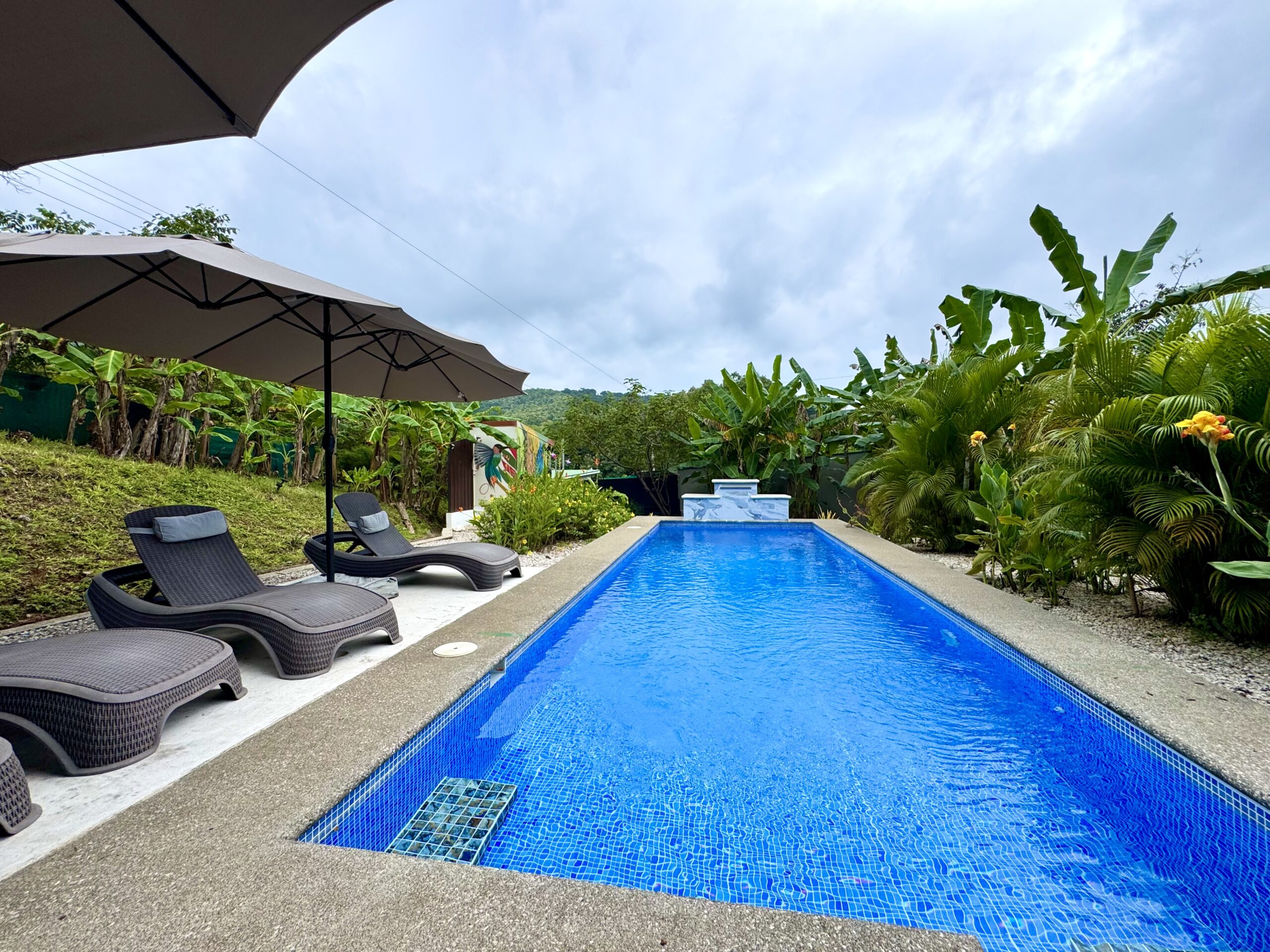 • Private Outdoor Spaces: Covered terrace and balcony, often visited by hummingbirds, butterflies, and even scarlet macaws.
