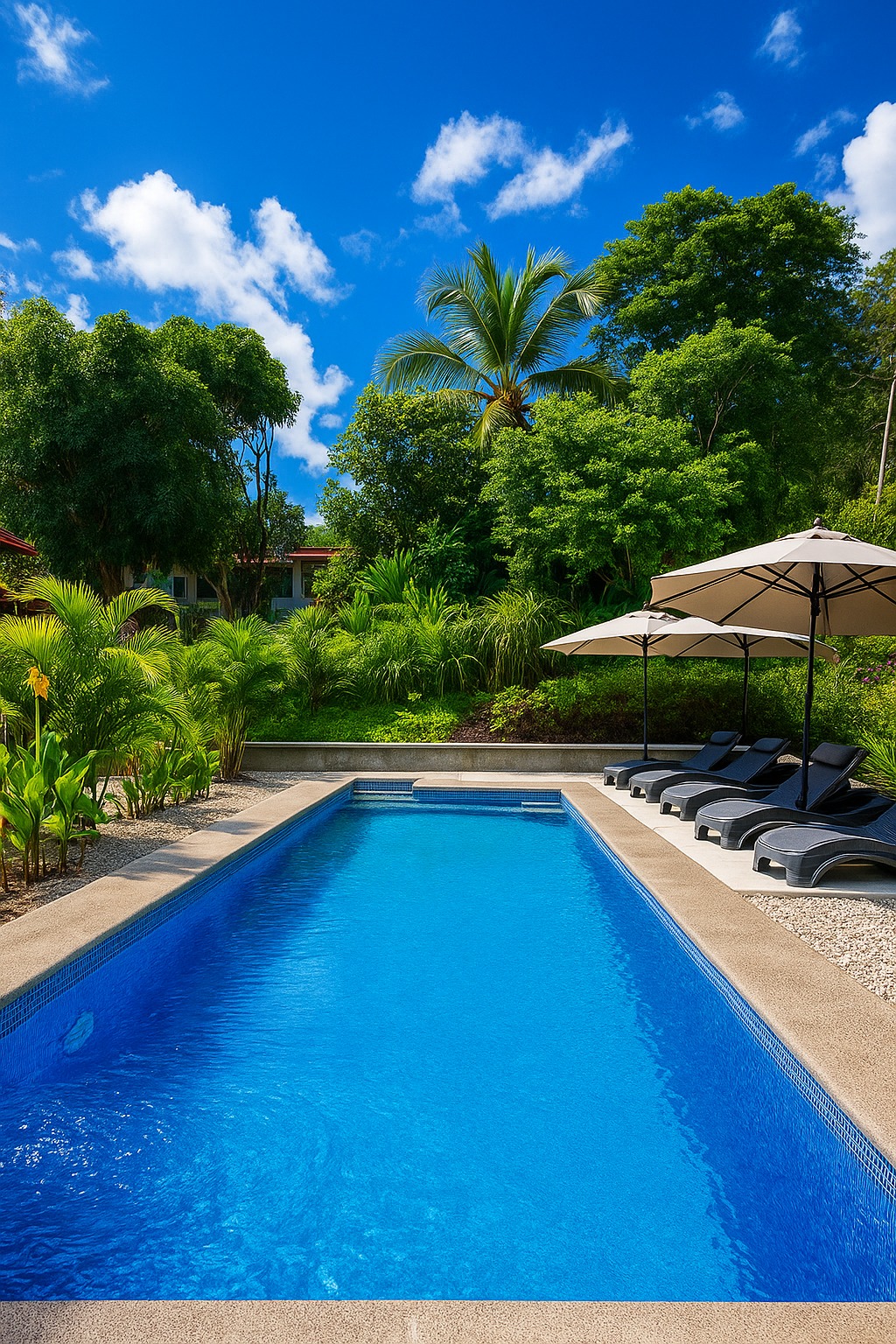 Cette propriété combine harmonieusement tranquillité et accessibilité — à seulement 10 minutes des plages de Sámara et Carrillo, deux joyaux de la côte Pacifique.
