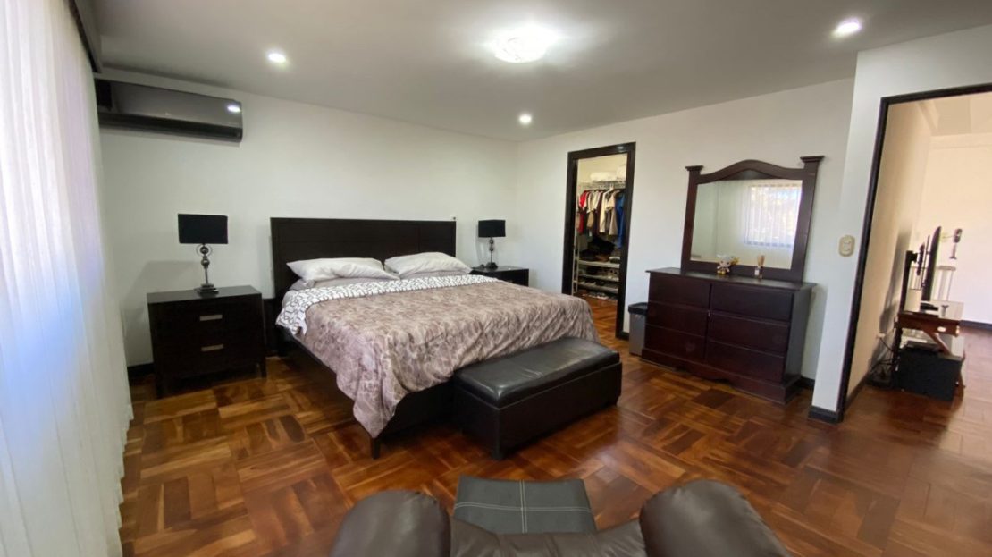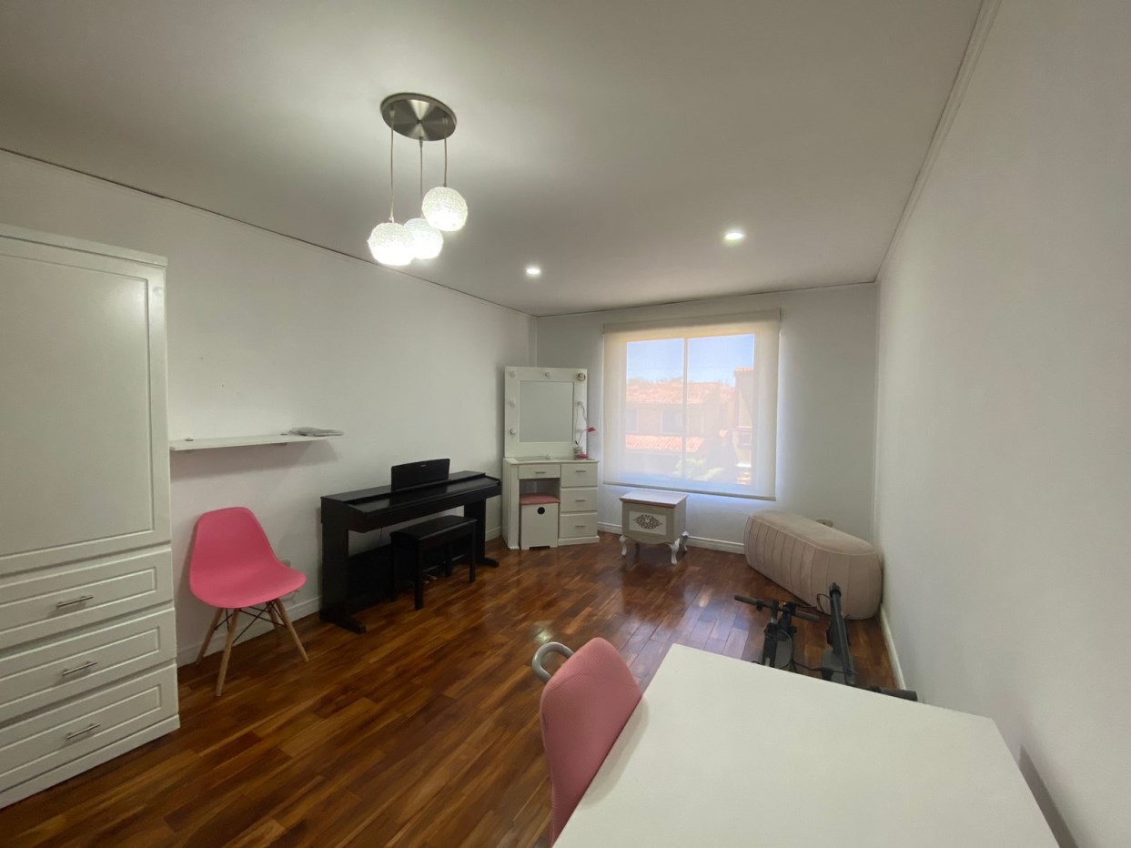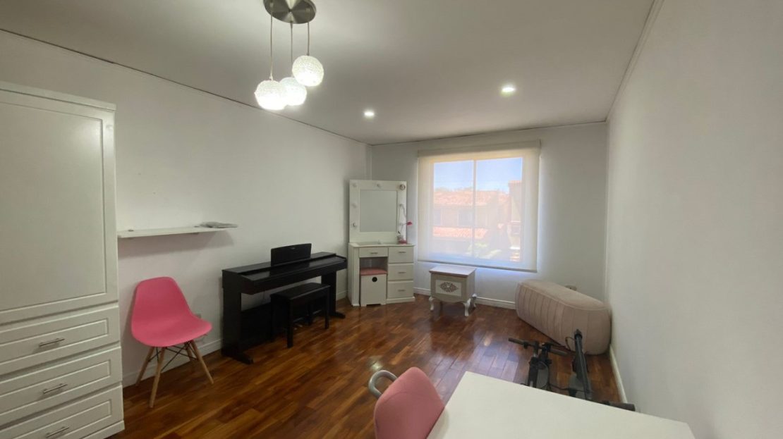 En el piso superior, se encuentran tres amplias habitaciones, que comparten un baño completo y armarios empotrados. La suite principal ofrece un refugio con un baño muy cómodo y amplio, proporcionando un oasis de relajación después de un largo día. Ademas tiene un gran espacio de W.C.