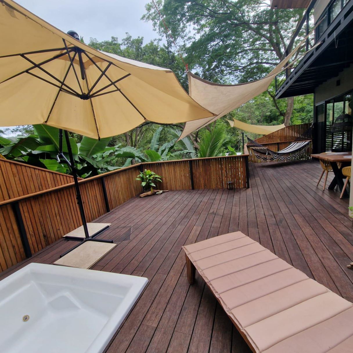 Jardín Privado con Árboles Maduros – Rodeado de exuberante vegetación, creando un refugio tranquilo y con sombra.