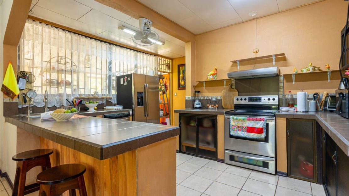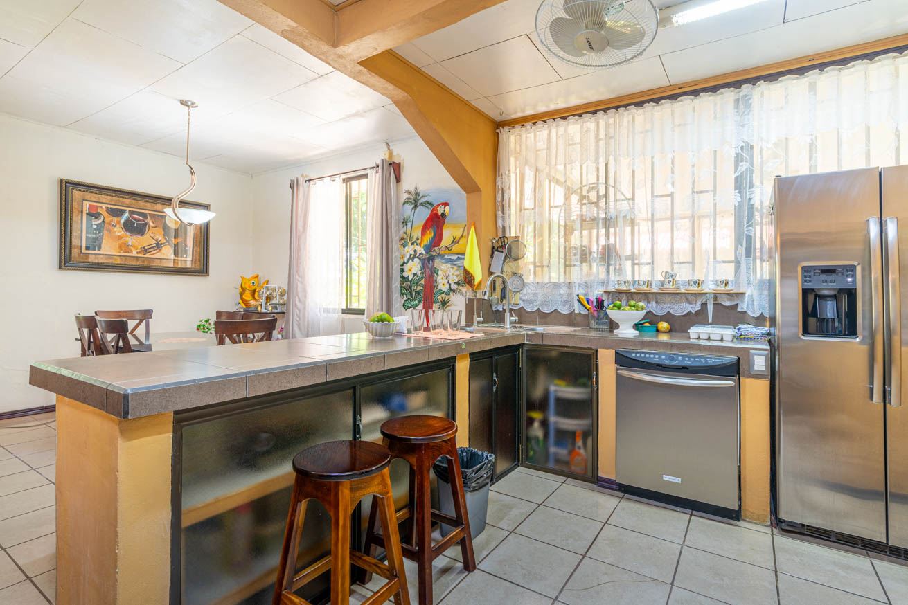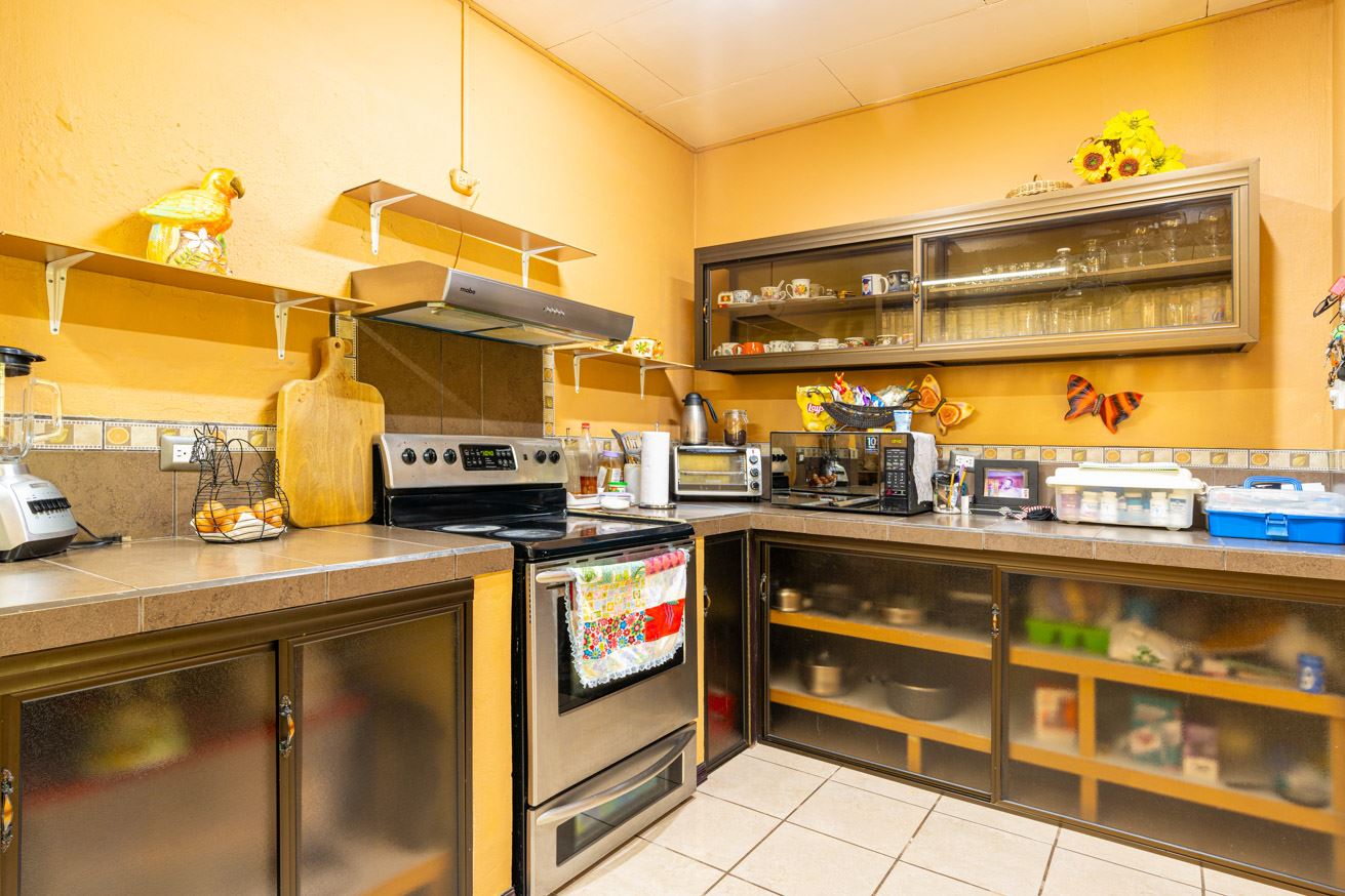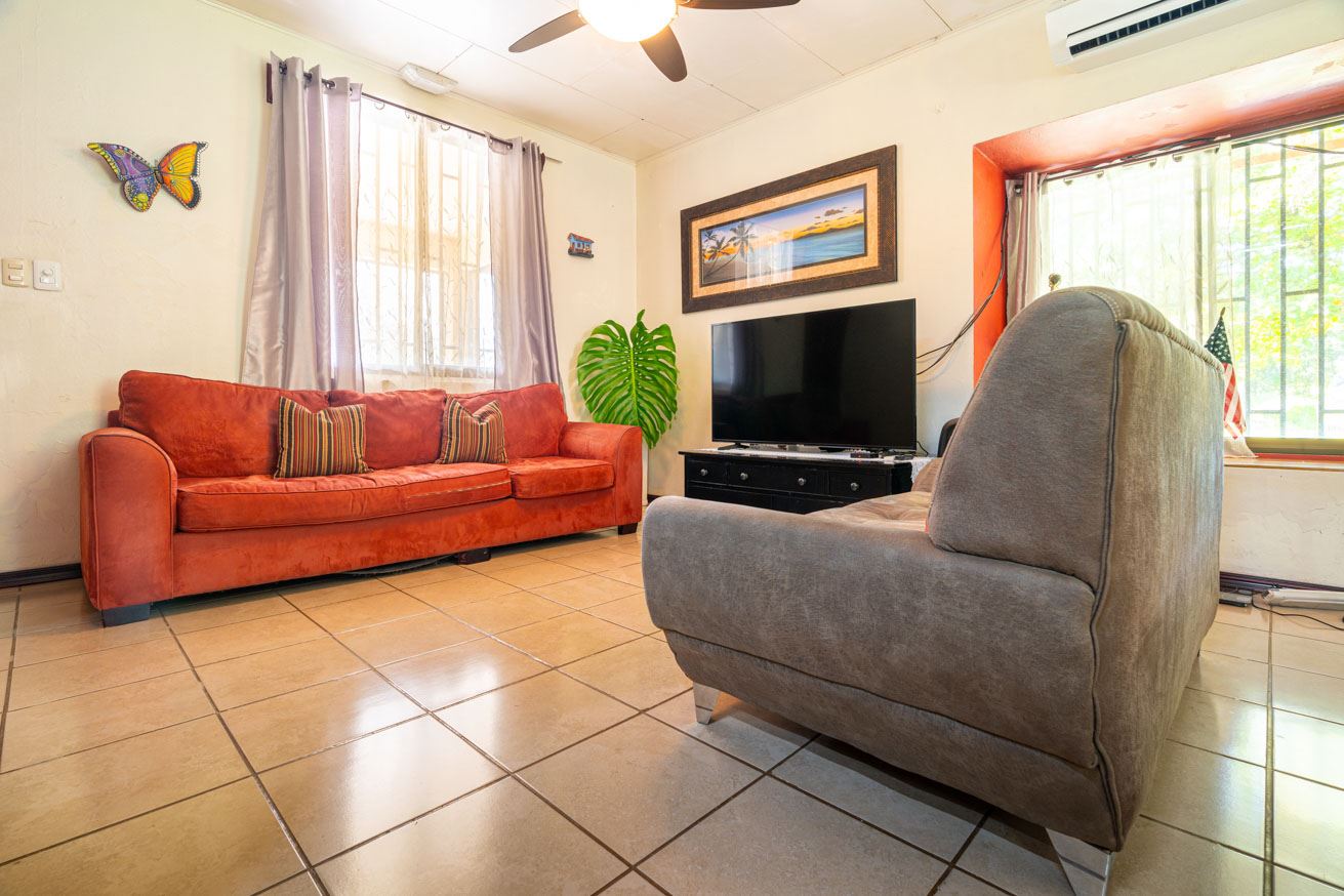 The bright, sunny-yellow main house welcomes with a large covered front patio. The bright walls, yellow accents and beautiful nature artwork add a strong touch of happiness & airiness. A large living room with plentiful sofa seating and a dining table for six shares the main open space with the big & fully equipped kitchen. The kitchen boasts miles of counter space while plentiful storage with innovative see-thru cabinets lets you know exactly what is where! Three bedrooms, with lumber beds and flooring, are complimented by two bathrooms. Air conditioning, beautiful artwork and stunning wall murals permeate this welcoming and bright home. A covered gazebo, accessible a short distance from the home via a covered outside walkway, holds a hammock, bar and plenty of seating – it will surely host many brunches, dinners, lively drink sessions, sunset cocktails and lazy afternoon naps.