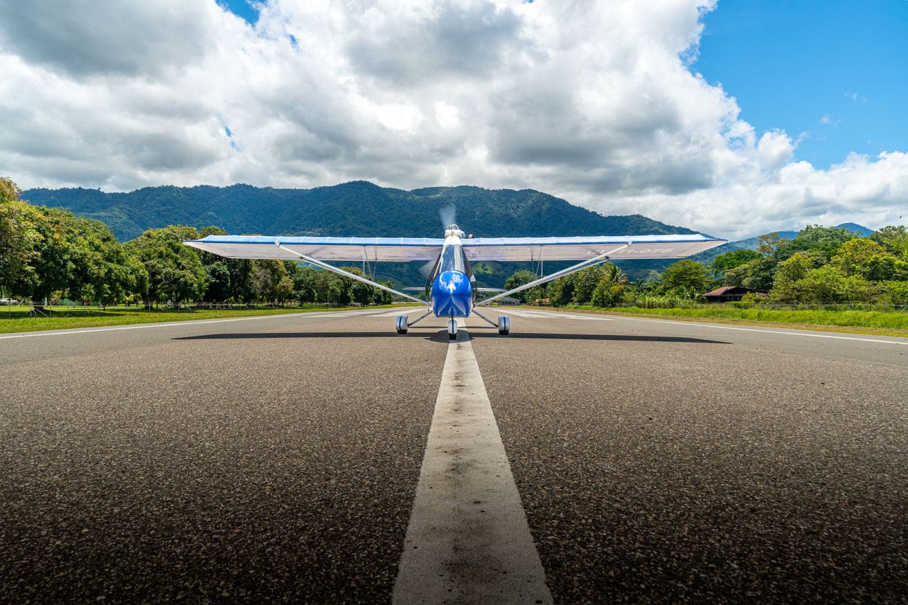 The long 13.4 acre lot, fully & securely fenced along its entire length, borders 562 meters along the western length of Palmar Sur Airport’s property and holds civil aviation permits for direct aircraft access to the airport’s runway. The property sits opposite the terminal building and airport structures which are visible across the field. This airport services general aviation including private activities, business jets, and medevac, and supports daily 35-minute flights to the capital city, San Jose, via Sansa Airlines. The 4,600 foot (1,400 meter) long and 60 foot (18.5 meter) wide asphalt runway caters to aircraft up to regional turboprop size like ATR 42 or Dash-8, as well as many types of common business jets such as Cessna Citation or ERJ-145. In 2019, major renovations were completed – construction of a brand-new terminal building, runway lengthening & widening, and the installation of 24-hour LED runway lighting.