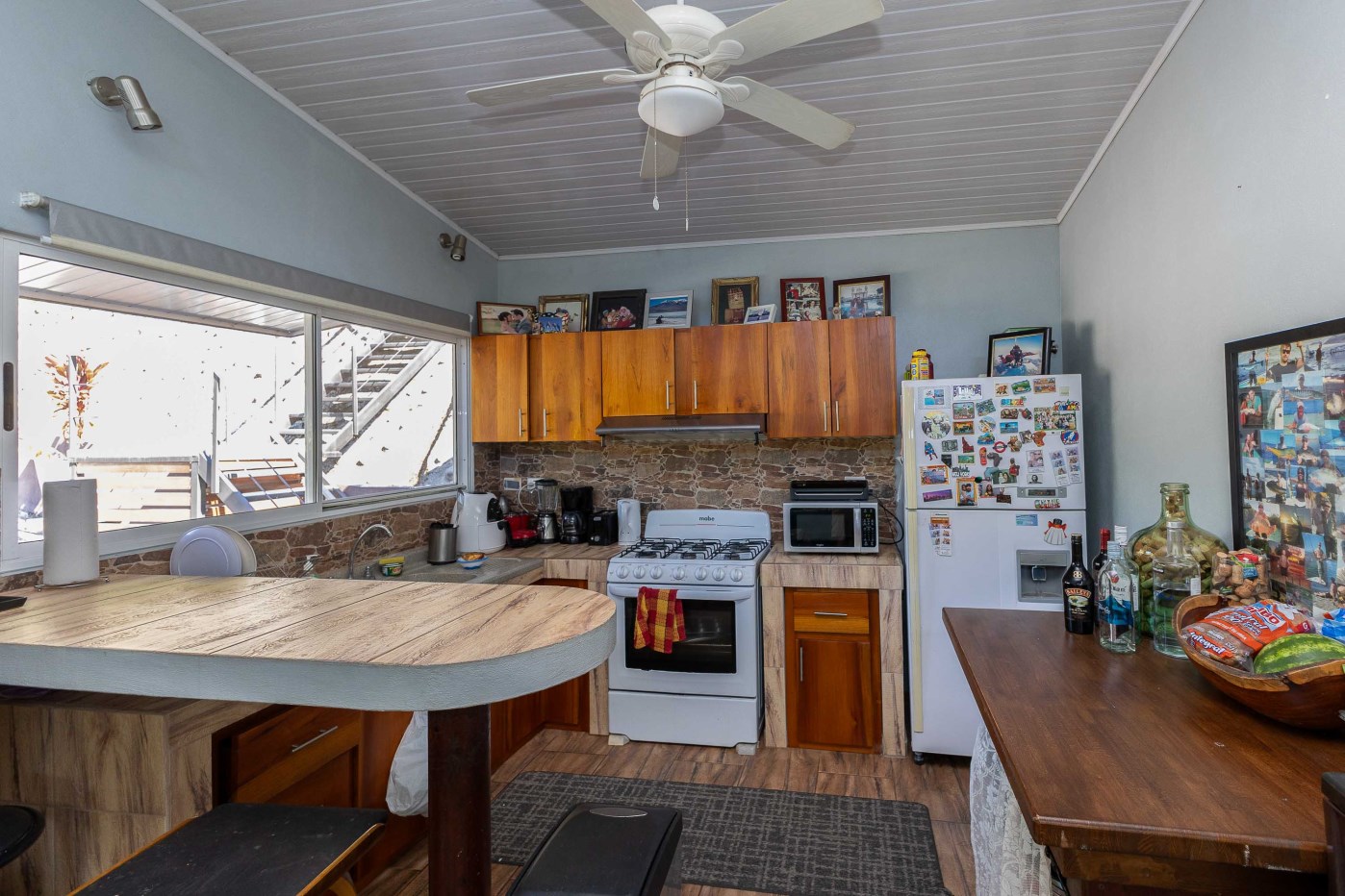 Ubicado al final de un camino privado, esta propiedad cuenta con tres casas muy bien cuidadas, cada una con acceso independiente y privacidad. Las casas, construidas y mantenidas por propietarios europeos, incluyen dos residencias de 2 dormitorios y 2 baños y una residencia de 2 dormitorios y 1 baño, todas con terrazas cubiertas y elegantes acabados. Disfrute de vistas panorámicas del bosque y las montañas, jardines maduros y espacio adicional para posibles construcciones.