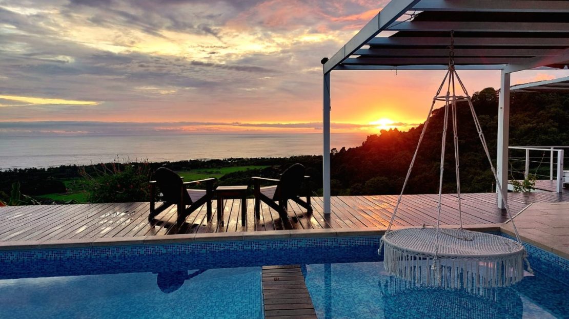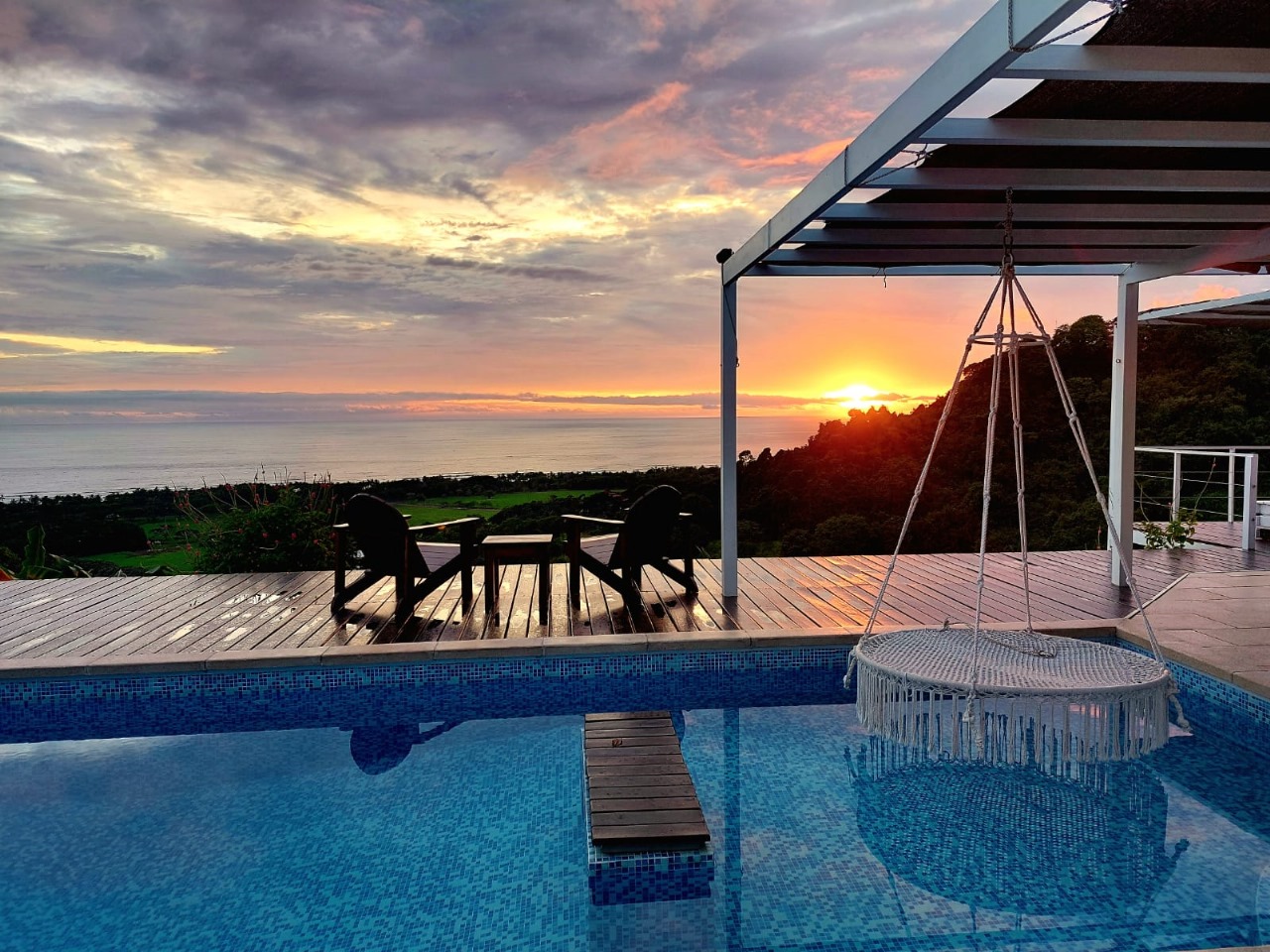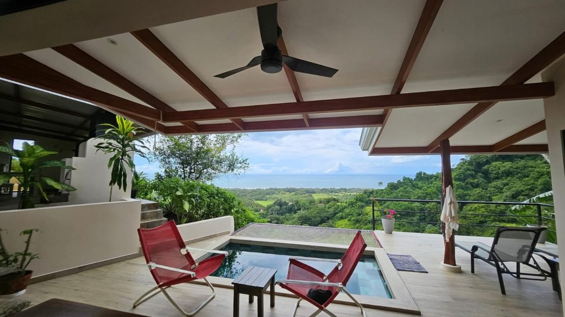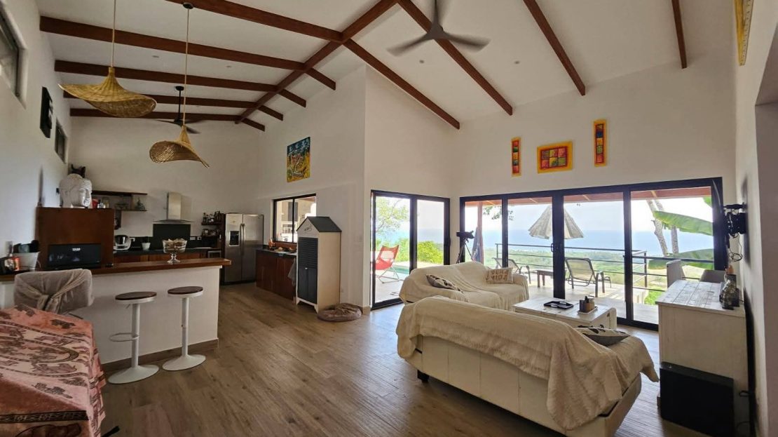 This elegant four-bedroom, three-bathroom villa features a bright open-concept living area, a fully equipped kitchen, and seamless indoor-outdoor flow. The 13.5 x 3.2-meter swimming pool stretches toward the horizon, framing spectacular views of the Pacific coastline and lush jungle canopy.
